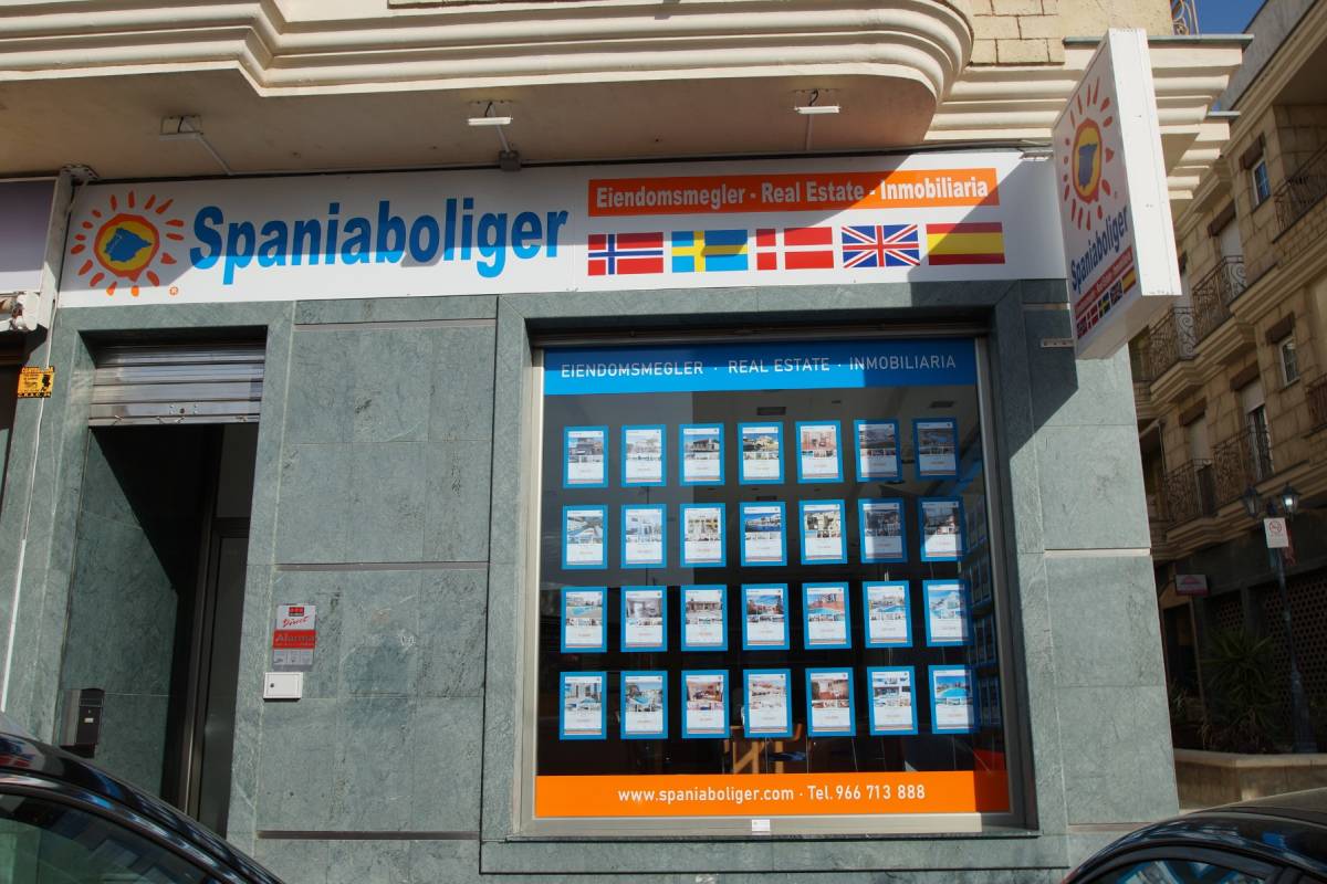Spaniaboliger has renewed the window exhibition at the office in Benjófar (Avda Federico Garcia Lorca No 43, 03178 BENIJÓFAR (Alicante)). Now you find a total of 124 homes on display in the windows in our office. Take a trip beyond, or visit our website www.spaniaboliger.com, with over 900 homes for sale.
