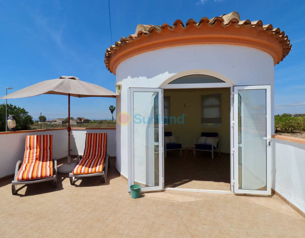 Wat een voorrecht om deze uitstekend onderhouden, levenslange villa exclusief aan te bieden via ProCare Estates in het populaire El Raso, Guardamar. Deze charmante woning heeft een eigen toegangspoort met directe toegang tot het prachtige mediterrane zwembad. De villa is tot in de puntjes onderhouden en instapklaar – u hoeft alleen uw koffers mee te nemen! Indeling & Kenmerken: Alle leefruimtes bevinden zich op de begane grond, waardoor deze villa ideaal is voor comfortabel en toekomstbestendig wonen. De lichte en gezellige woonkamer biedt toegang tot een aparte, ruime keuken die is voorzien van gloednieuwe apparatuur. Dankzij de praktische indeling geniet u in alle leefruimtes van zowel privacy als comfort. Er zijn drie slaapkamers en twee moderne badkamers, waarvan één ensuite. Daarnaast is er een aparte ruimte voor een wasmachine en bergruimte. Op de bovenverdieping bevindt zich een ruim solarium met een multifunctionele torenkamer. Deze ruimte is ideaal als thuiskantoor, hobbykamer, gastenverblijf, bibliotheek of buitenkeuken. Vanuit het solarium geniet u van een prachtig panoramisch uitzicht over de zoutmeren. Extra's: Centrale airconditioning en aparte units voor optimaal comfort en efficiënt energieverbruik Onlangs professioneel geschilderd exterieur met speciale verf, inclusief garantie en noodzakelijke controles Ruime tuin met vrij uitzicht over de citroenvelden Overdekt verandaterras en parkeergelegenheid op eigen terrein Privépoort naar het gemeenschappelijke zwembad: het gemak van een privézwembad zonder onderhoud! Gelegen in een rustige, goed onderhouden gemeenschap Deze villa is een unieke kans in een zeer gewilde buurt. Dit soort panden komen zelden op de markt en zijn snel verkocht. Wacht dus niet te lang! Over El Raso – Guardamar del Segura El Raso is een populaire en rustige woonwijk aan de rand van Guardamar del Segura, aan de prachtige Costa Blanca. Deze wijk staat bekend om zijn brede lanen, verzorgde uitstraling en internationale sfeer. El Raso biedt het beste van twee werelden: een groene, ruime omgeving met veel privacy en comfort, en de nabijheid van alle voorzieningen. Voordelen van wonen in El Raso: Rustige, veilige gemeenschap met veel permanente bewoners en internationale buren. Uitstekende bereikbaarheid : El Raso ligt op slechts 10 minuten rijden van de uitgestrekte zandstranden van Guardamar, bekend om zijn natuurlijke duinen en kristalheldere water. Dicht bij de natuur en recreatie : Direct naast het natuurpark Laguna de La Mata, ideaal om te wandelen, fietsen en vogels te spotten. Voorzieningen in de omgeving : In de buurt zelf vindt u restaurants, bars, een kleine supermarkt en diverse sportfaciliteiten. Het centrum van Guardamar met winkels, markten en alle andere voorzieningen is gemakkelijk te bereiken. Goede verbindingen : de luchthaven van Alicante ligt op ongeveer 35 minuten rijden, waardoor El Raso gemakkelijk bereikbaar is voor internationale reizigers en vakantiegangers. Golfbanen in de omgeving : Binnen 10-15 minuten rijden vindt u diverse bekende golfbanen, zoals La Marquesa Golf en La Finca Golf. Kortom, El Raso is de ideale locatie voor wie op zoek is naar rust, comfort en een centrale ligging aan de Costa Blanca, met alle faciliteiten binnen handbereik en het strand dichtbij. Geïnteresseerd of wilt u een bezichtiging inplannen?