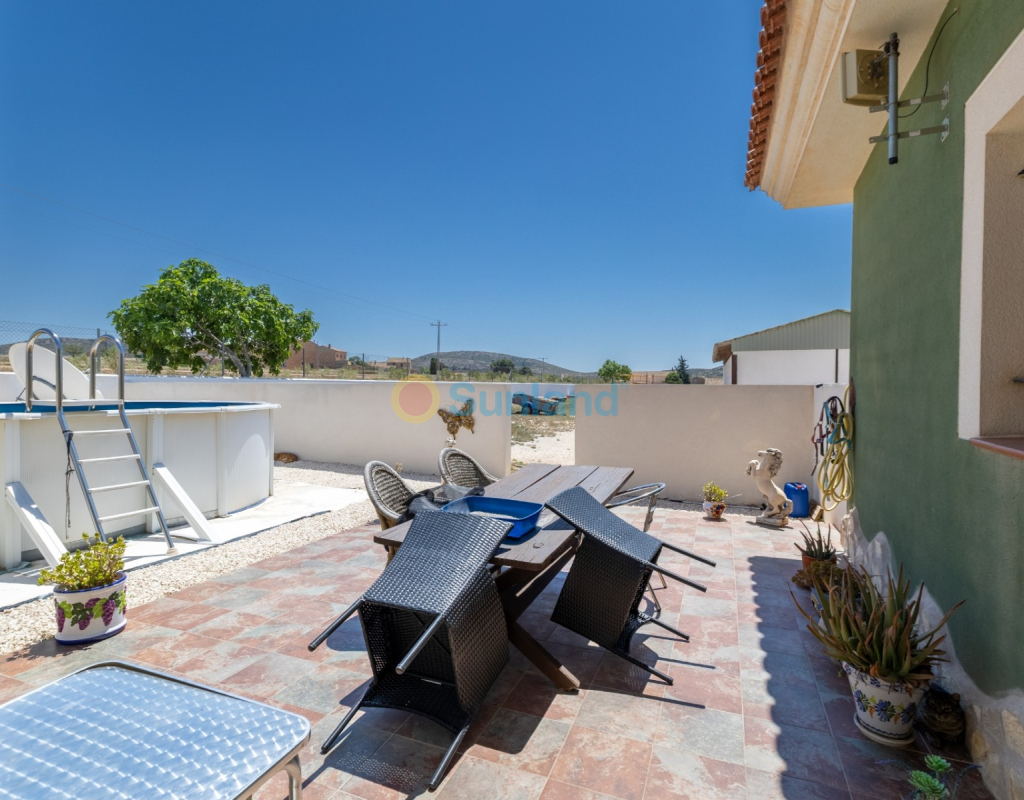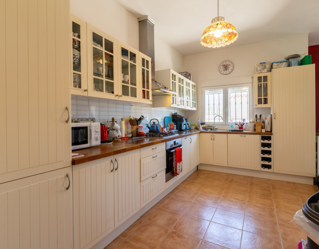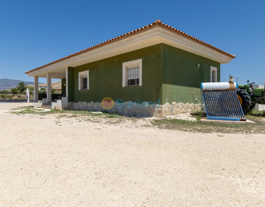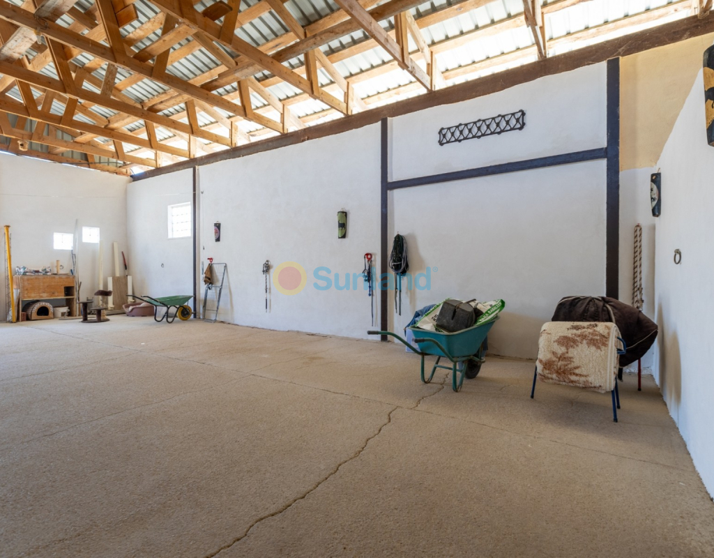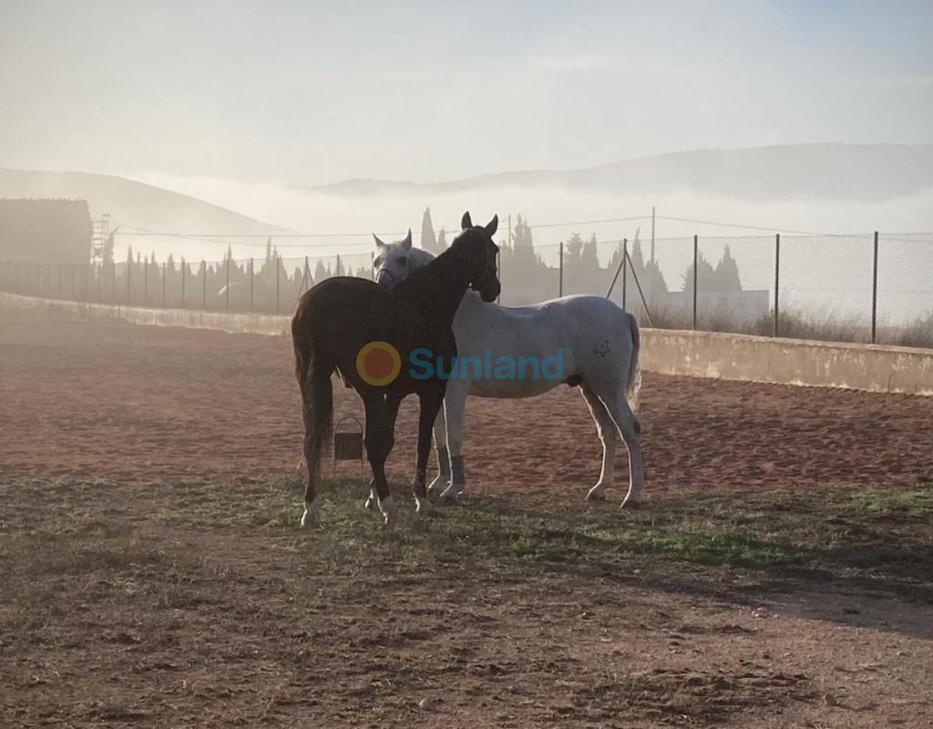 Unieke paardenliefhebbers-villa met multifunctionele Amerikaanse stallen en panoramisch bergzicht – Torre del Rico (Murcia) Zoekt u een landelijk gelegen woning met volop ruimte, rust én de mogelijkheid om paarden te houden of een bedrijf aan huis te starten? Deze charmante, gelijkvloerse villa met drie slaapkamers ligt op een volledig omheind perceel van maar liefst 7.944 m², omringd door een adembenemend uitzicht op de bergen. Gelegen in het rustige dorpje Torre del Rico, op slechts 8 minuten rijden van het gezellige Pinoso en op loopafstand van een lokale bar, combineert deze woning het beste van landelijke rust met goede bereikbaarheid en dagelijkse voorzieningen. De villa De woning is volledig gelijkvloers en biedt een comfortabele en praktische indeling. U beschikt over: Drie ruime slaapkamers Twee badkamers Een royale woonkamer met gezellige houtkachel – perfect voor de koelere maanden Een olieverwarmingssysteem dat tevens warm water verzorgt Dubbel glas en thermisch geïsoleerde muren voor optimaal wooncomfort, het hele jaar door Voor- en achterterrassen om in alle rust te genieten van de natuurlijke omgeving Achter de woning bevindt zich een aparte casita, waarin de verwarmingsketel en olietank zijn ondergebracht – praktisch en discreet. De multifunctionele Amerikaanse barn – eindeloze mogelijkheden Een absoluut hoogtepunt van dit object is de indrukwekkende 200 m² grote, volledig afgesloten American-style barn, die oorspronkelijk ontworpen is als paardenstal. Deze solide, multifunctionele ruimte beschikt momenteel over: Vier ruime paardenboxen, waaronder één voor merrie met veulen Voeder- en voorbereidingsruimten Een zadelkamer Voldoende extra ruimte voor het bijplaatsen van meerdere boxen Maar deze barn biedt méér dan alleen stalruimte. Dankzij de betonnen vloer, grote interne oppervlakte en afgesloten structuur is het gebouw uitermate geschikt voor diverse doeleinden. Denk aan een werkplaats, opslagruimte, vintage voertuigstalling, of een kleinschalige commerciële activiteit aan huis. De mogelijkheden zijn eindeloos – wat u ook zoekt in een grote, multifunctionele ruimte, hier kunt u alle kanten op. Buitenruimte en terrein Het volledige perceel is omheind met een combinatie van muren en hekwerk, wat optimale veiligheid en privacy biedt – ideaal voor dieren of materieel. Er zijn twee brede toegangspoorten van 8 meter breed, wat zorgt voor uitstekende toegankelijkheid voor trailers, vrachtwagens of servicevoertuigen. Locatie en voorzieningen Deze villa bevindt zich in Torre del Rico, in de provincie Murcia – een regio die bekendstaat om zijn rust, natuur en goede bereikbaarheid. Slechts 8 minuten van Pinoso met supermarkten, winkels en restaurants Goede verbindingen via landelijke wegen Water en elektriciteit via het openbare net Bent u op zoek naar een unieke paardenaccommodatie met een multifunctionele barn, geschikt voor zowel privégebruik als commerciële toepassingen? Dan is deze villa in Torre del Rico absoluut een bezichtiging waard. Neem vandaag nog contact met ons op voor meer informatie of een bezichtiging.