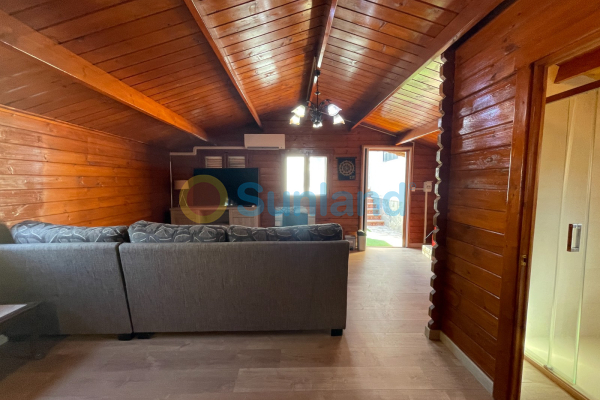 Op het perceel staat ook een gezellig houten gastenhuis van 45 m² met 1 slaapkamer, badkamer, keuken en woonkamer — ideaal voor gasten of een familielid dat zijn eigen ruimte wil hebben.
