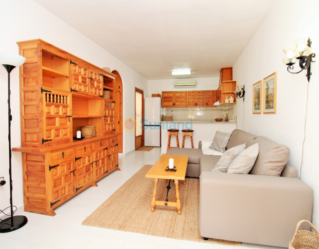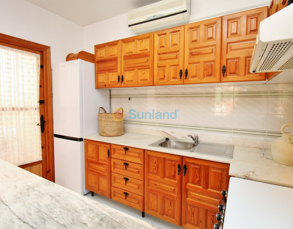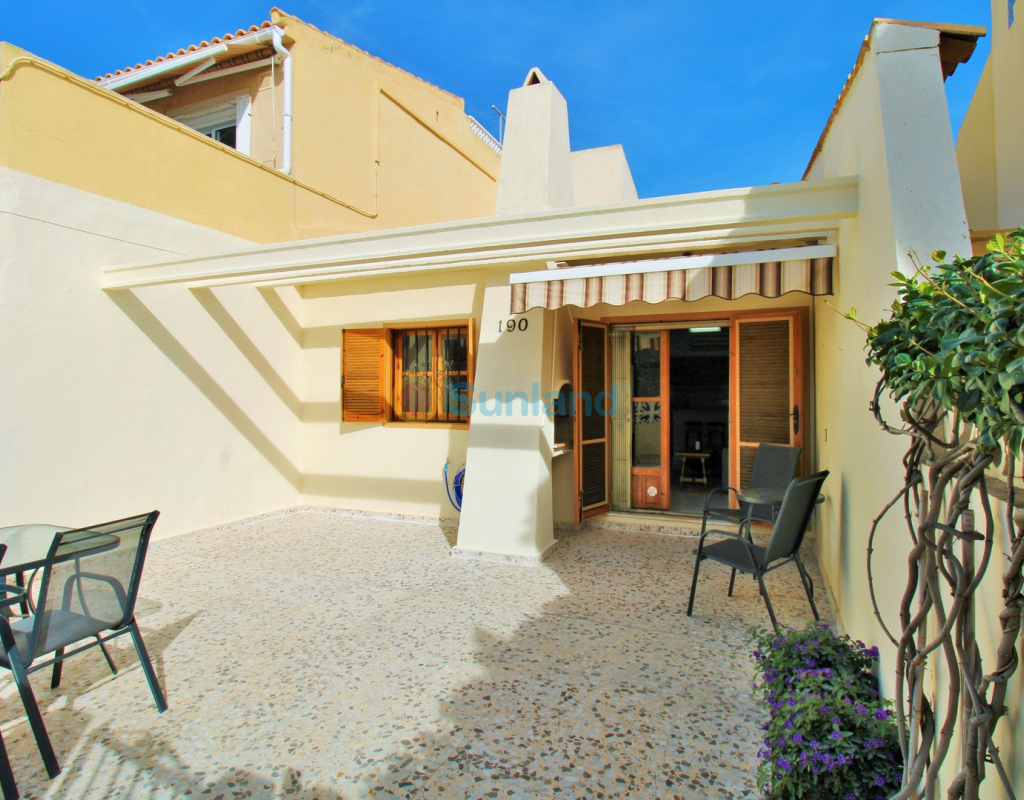 Vistacasas presenteert deze uitstekende hoekbungalow met een geweldige prijs-kwaliteitverhouding in de beveiligde gemeenschap Manzana 7 in La Chismosa (Playa Flamenca). Dankzij de zuidwestelijke oriëntatie geniet de woning de hele dag van de zon en beschikt deze over een ruim voorterras met ingebouwde BBQ en uitklapbare zonneschermen. Bewoners hebben ook toegang tot prachtig onderhouden gemeenschappelijke groene zones. Alle woonruimte bevindt zich op één niveau en omvat een lichte woonkamer met open haard, een open volledig ingerichte keuken met buitenwasruimte, een lichte tweepersoonsslaapkamer met inbouwkasten en een badkamer met inloopdouche. Wordt gemeubileerd verkocht inclusief airconditioning. Gelegen op loopafstand van de bars en restaurants van La Chismosa en La Florida, en op korte rijafstand van blauwe-vlag stranden, Zenia Boulevard en diverse golfbanen. Een fantastische kans — bezichtigingen worden sterk aanbevolen!