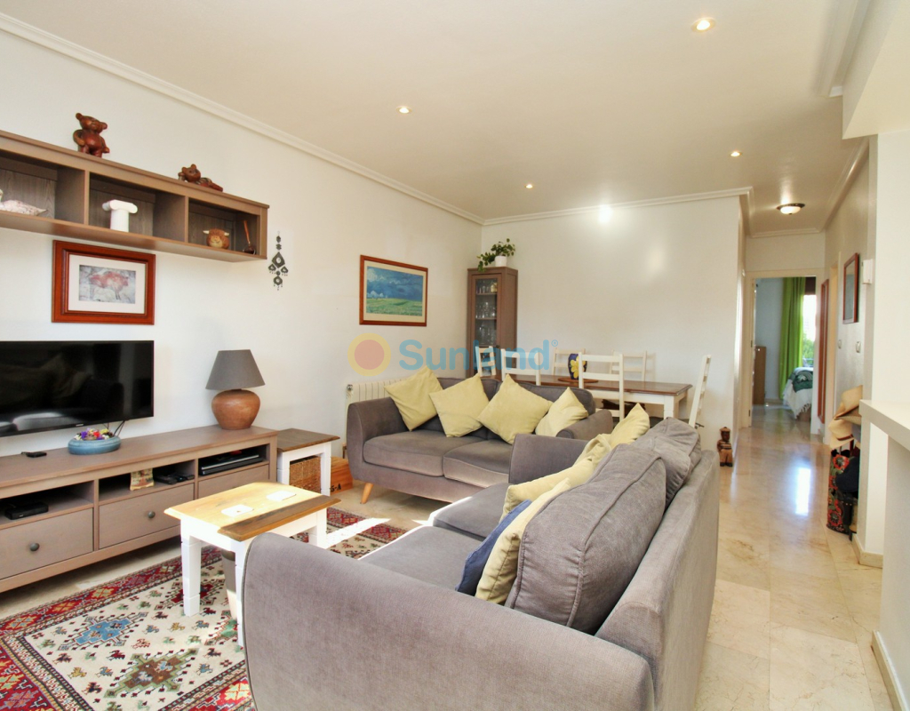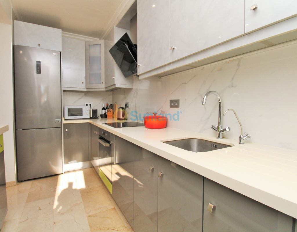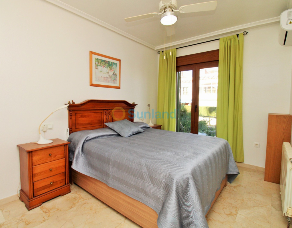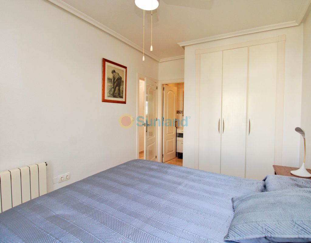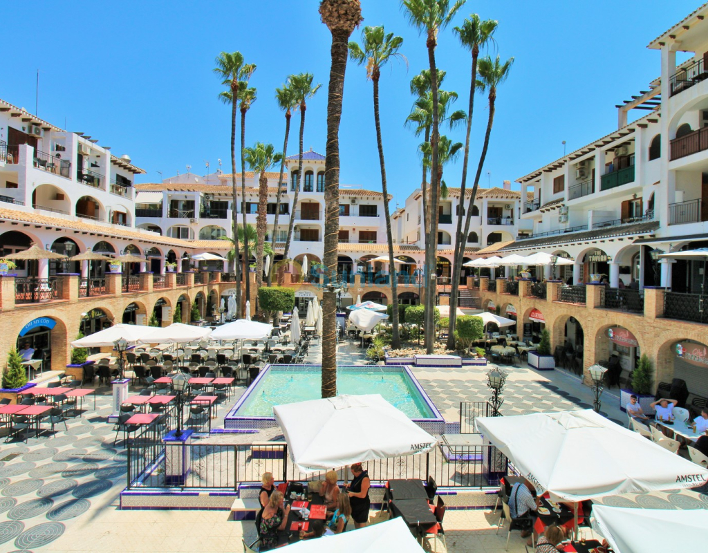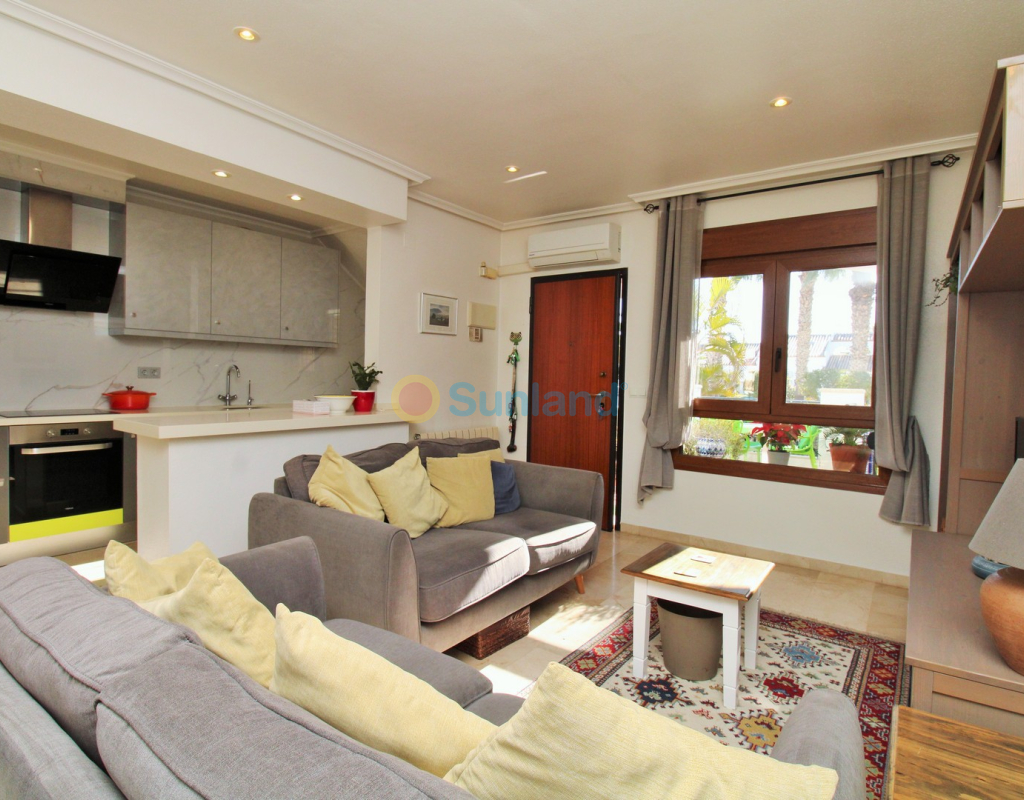 Verbeterde bungalow in Lola-stijl te koop in de zeer gewilde, afgesloten residentie R9 in Pau 8, Villamartin. Zorgvuldig onderhouden door dezelfde eigenaar sinds nieuw, met een toplocatie op slechts 10 minuten lopen van Villamartin Plaza en de Villamartin golfbaan, omgeven door restaurants, bars en voorzieningen. De gemeenschap is goed onderhouden met een gemeenschappelijk zwembad, gemeenschappelijke parkeerplaatsen, en zal volledig opnieuw worden geschilderd vóór eind Q2 2026. De woning beschikt over een voor- en achtertuin, plus een vergroot verhoogd voorterras met uitzicht op het groen. Binnen bevindt zich een lichte woon-/eetkamer, een gerenoveerde volledig uitgeruste keuken, en twee tweepersoonsslaapkamers met inbouwkasten. De master bedroom heeft een en-suite badkamer met inloopdouche en directe toegang tot de achtertuin. De tweede slaapkamer is verbeterd met openslaande terrasdeuren naar een Juliet-stijl terrasje met trap naar de achtertuin en extra bergruimte eronder. Externe trappen leiden naar het privé dakterras, waar een extra gastenannex is toegevoegd met slaapkamer en en-suite badkamer. Wordt verkocht gemeubileerd, inclusief apparatuur, airconditioning, centrale verwarming en aardgas. Een fantastische kans — vroeg bezichtigen aanbevolen.