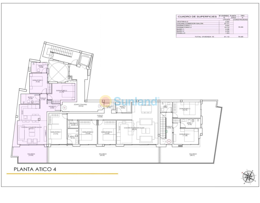 NYBYGD BOLIG I TORREVIEJA Nybygget bolig bare 5 minutters gange fra Los Locos-stranden, i sentrum av Torrevieja. Denne boligen har 16 leiligheter med 1, 2 eller 3 soverom og 1 og 2 bad, alle med terrasser fra 7m2 til 55m2, vendt mot sør eller vest, med felles solarium, boblebad, chillaut-område og badstue. En underjordisk parkeringsplass mot en ekstra kostnad. Torrevieja er en spansk by i Alicante-provinsen på Costa Blanca. Den er kjent for sitt typiske middelhavsklima og sin kystlinje. Byen har strandpromenader med feriesteder langs sandstrendene. Det lille hav- og saltmuseet har utstillinger om byens fiske- og salthistorie. Inne i byen ligger naturparken Lagunas de La Mata-Torrevieja med stier og to salte laguner, den ene rosa og den andre grønn. Alicante flyplass ligger 40 minutter unna og Murcia flyplass ca. 1 time unna.