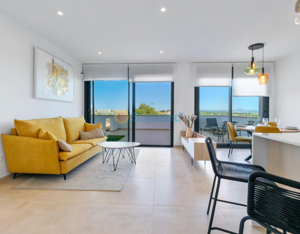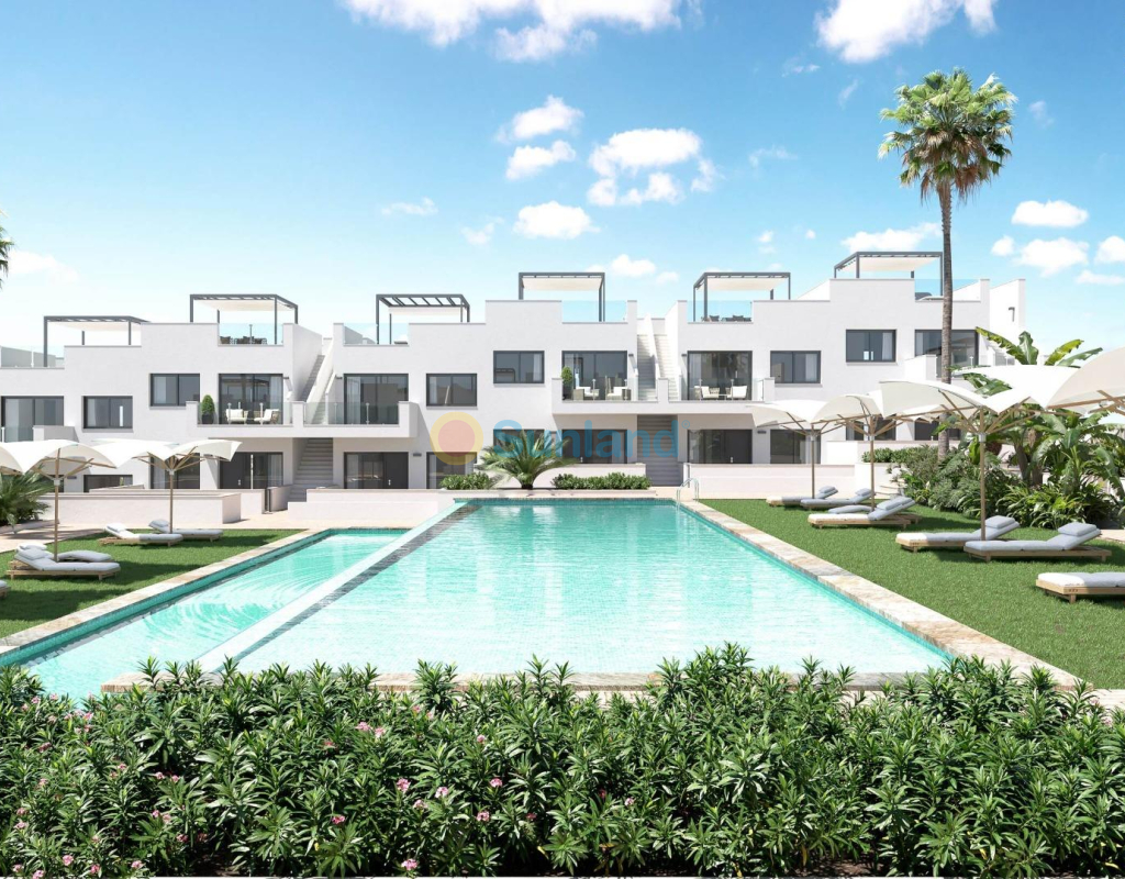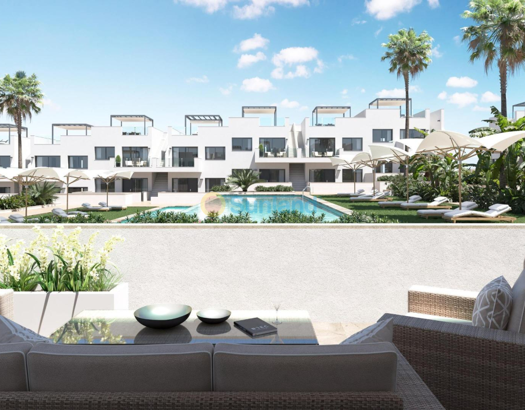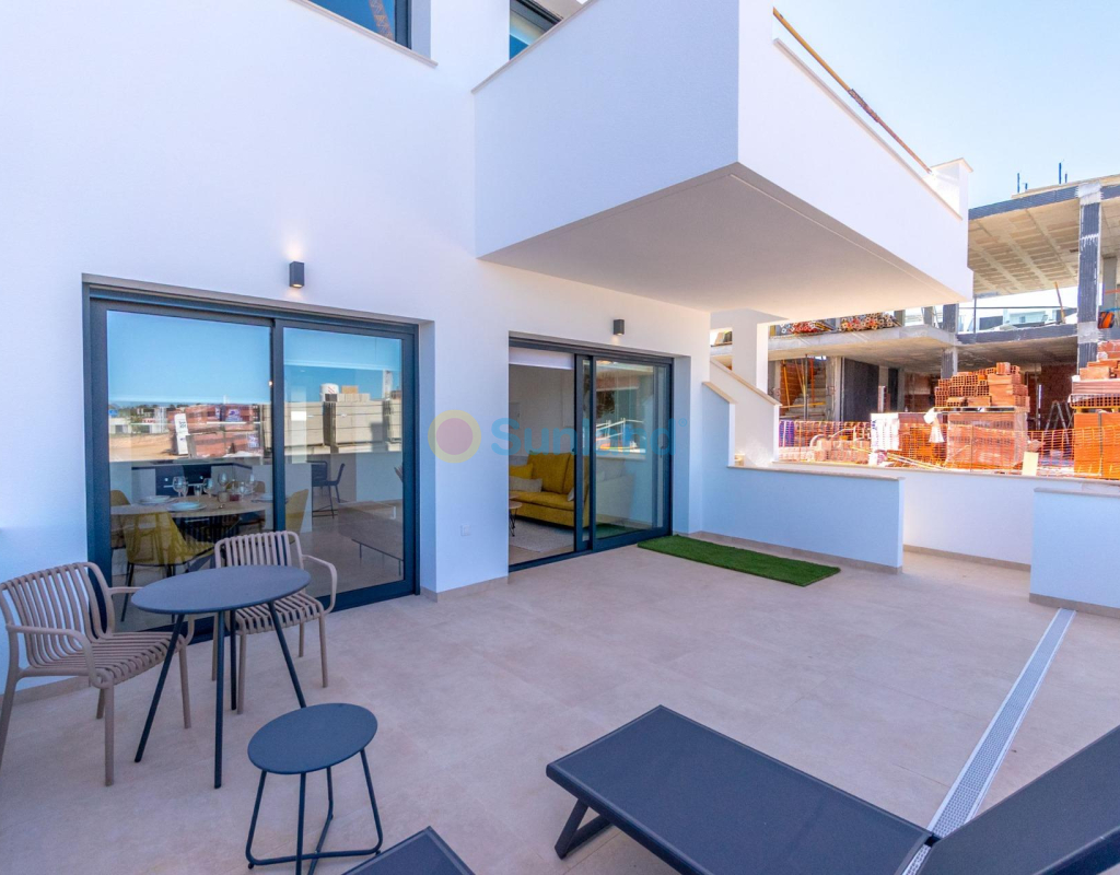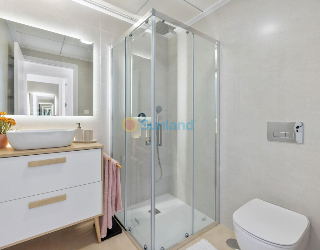 NYBYGG MED BUNGALOWLEILIGHETER I LOS BALCONES Oppdag den perfekte harmonien mellom luksus og komfort i leilighetene i første etasje med hage eller i andre etasje med balkong og solarium. Boligene består av 2 soverom og 2 bad, med mulighet for et tredje soverom etter behov. Alle leilighetene har spektakulær utsikt over Torreviejas rosa lagune, noe som skaper en unik opplevelse der naturen blir en integrert del av hverdagen. Fellesområdene er en forlengelse av din egen private oase. Fordyp deg i evighetsbassenget mens du nyter panoramautsikten over den rosa lagunen, lek med de minste på lekeplassen eller rusle gjennom de grønne områdene. Den strategiske beliggenheten gjør at du bare er noen minutter unna Torreviejas strender, det travle kjøpesenteret Zenia Boulevard og en rekke fasiliteter som supermarkeder, apotek og restauranter. Nærheten til golfbaner og motorveiavkjørselen til Alicante lufthavn sikrer enkel tilgang til alt du elsker. Disse eiendommene er mer enn et hjem; det er en livsstil som omfavner naturlig skjønnhet, moderne komfort og bekvemmelighet. Eksepsjonelle boliger er det perfekte stedet å leve det livet du alltid har drømt om. Velkommen til nye boliger, der hver dag er et mesterverk av luksus og ro!