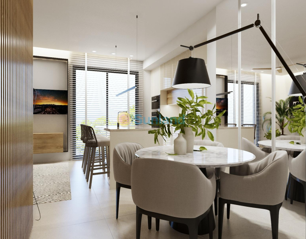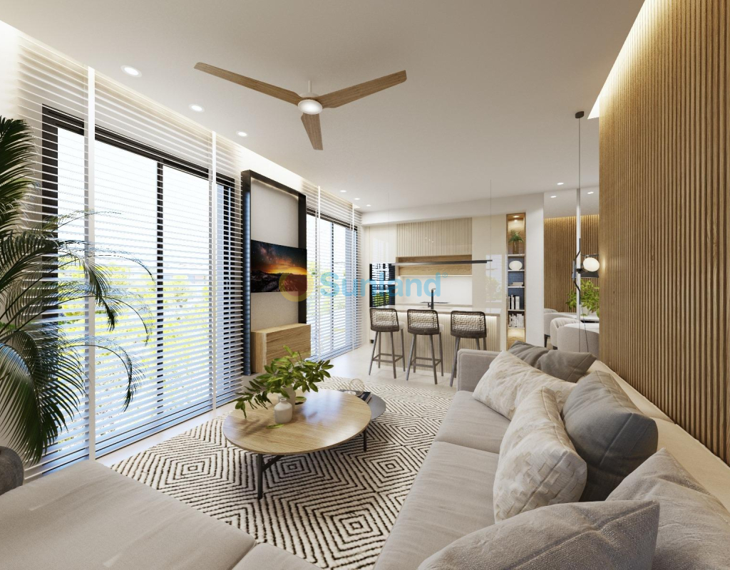 NYBYGGDE LEILIGHETER I PRIVAT GATED RESORT I MURCIA-PROVINSEN Nybygget boligkompleks på 6 blokker, totalt 42 leiligheter. Vakre leiligheter har 3 og 2 soverom og 2 bad med utsikt over den store innsjøen og grøntområdene på dette store luksusferieanlegget. Leiligheter på bakkeplan med privat hage, leiligheter i toppetasjen med privat solarium. Komplekset har felles svømmebasseng og alle leilighetene har parkeringstempo og bod. Ligger i et privat inngjerdet feriested, med hovedinngang og 24 timers vakthold. Feriestedet er designet rundt et imponerende grøntområde på 126.000 m2. Den består av gang- og sykkelstier, sportsfasiliteter, padle- og tennisbaner, en minigolfbane, hager, hundeparker, fritidsområder, klubbhus... Også i det sentrale området er juvelen til feriestedet, en krystallklar kunstig innsjø på nesten 17.000m2 vannflate, omgitt av hvite sandstrender og palmetrær, som bringer et stykke av Karibien til Murcia-regionen. Det er 2 øyer i innsjøen, en av dem har sin egen bar, det er også "strand Chiringuitos" spredt rundt innsjøen. Anlegget har en strategisk beliggenhet mindre enn 4 km fra stranden og byen Los Alcázares, hvor du kan utøve ulike vannsporter, omgitt av flere golfbaner og byen Cartagena mindre enn 15 minutter med bil og 22 km fra Murcia flyplass, har derfor et bredt kultur-, gastronomisk- og sportstilbud innen rekkevidde.