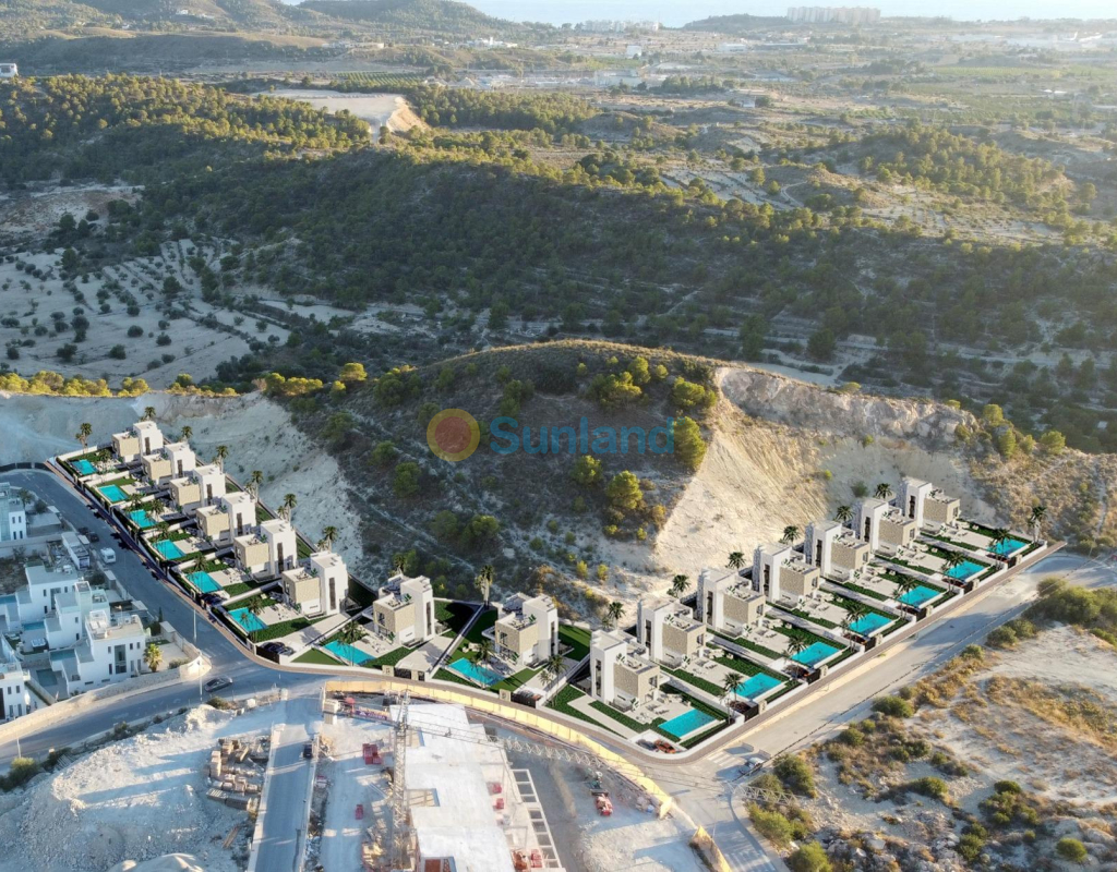 NYBYGGEDE VILLAER I FINESTRAT Nybyggede villaer i Balcon de Finestrat. Nybygg av 15 helt uavhengige luksusvillaer i unike omgivelser nær Middelhavets beste strender og alle tjenester. Villaene går over 2 etasjer og har 3 soverom, 3 bad, åpen kjøkkenløsning med stue, innebygde garderober, privat solarium, hage med basseng og parkeringsplass for 2 biler. Mulighet for kjeller og heis mot en ekstra kostnad. Villaene ligger i nærheten av 2 golfbaner, fornøyelsesparker, et stort kjøpesenter og noen få minutter fra strendene i Benidorm. Finestrat ligger i Marina Baixa-regionen på Costa Blanca, i nærheten av nabobyen Benidorm og ca. 40 kilometer fra byen Alicante og den internasjonale flyplassen. Benidorm ligger bare en fem minutters kjøretur unna, og her finner du alt du trenger av butikker, barer, restauranter, supermarkeder, banker, apotek og flere private internasjonale skoler. Det er kort vei til de over 6 km lange strendene Levante, Poniente og Cala de Finestrat, som er blant de beste i Europa og har fått tildelt blått flagg av EU. Alle fritidstilbud som fornøyelsesparkene Aqua Natura, Terra Mítica, Terra Natura, Aqualandia og Mundomar, golfbanene Sierra Cortina og Villaitana, fotturer og klatring i Puig Campana, en enestående naturskjønn omgivelse, og nautisk sport.