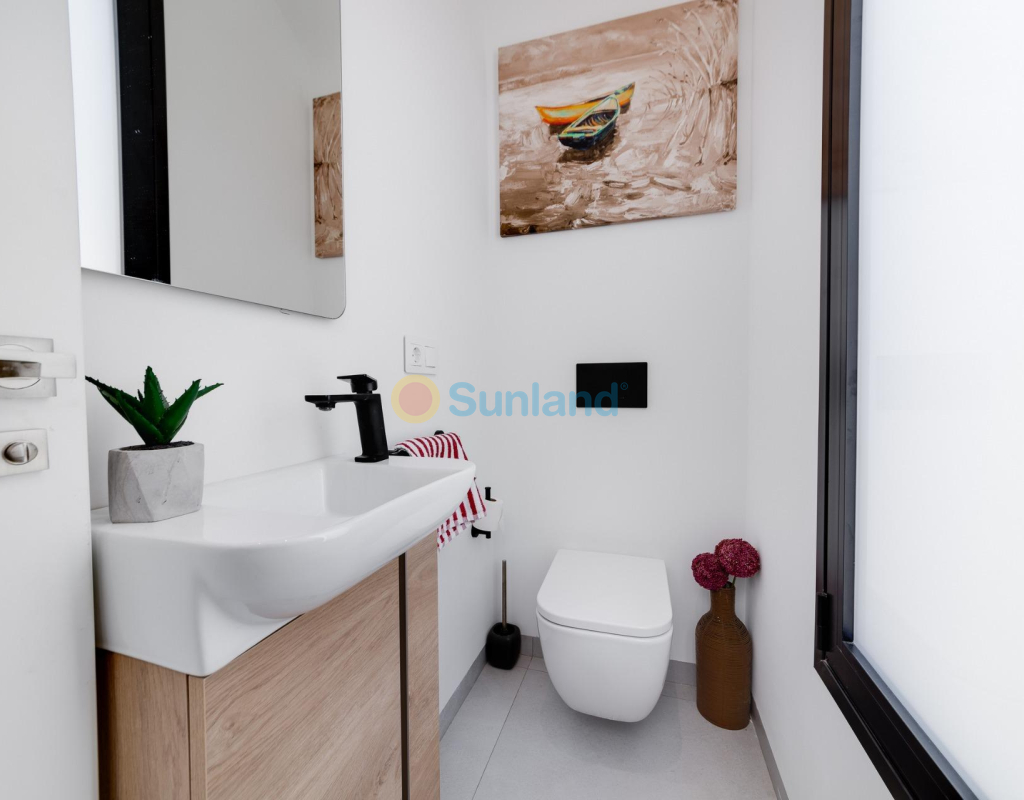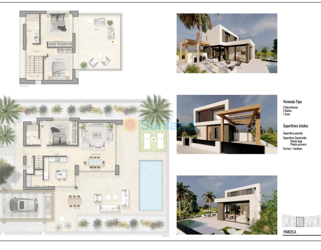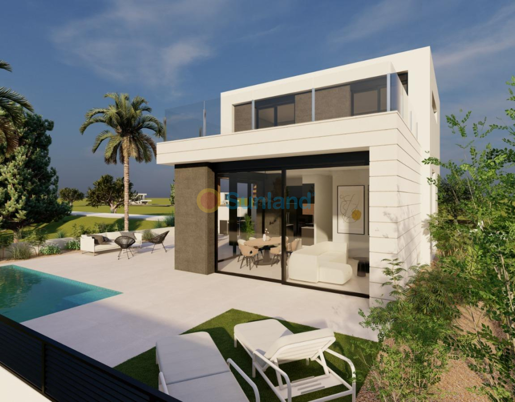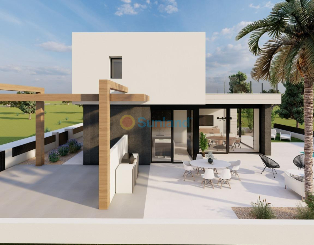 NYBYGDE VILLAER I PILAR DE LA HORADADA PÅ GOLFBANEN Nybygget boligområde med 6 frittliggende villaer i Pilar de la Horadada. Nybygde villaer bygget over 2 etasjer, har 3 soverom, 2 bad, gjestetoalett, åpen kjøkkenløsning med stue, garderober, privat hage med basseng og parkeringsplass utenfor veien. Pilar de la Horadada er den sørligste byen og kommunen på Costa Blanca i provinsen Alicante. Byen ligger på grensen mellom Comunidad Valenciana og Murcia-regionen. Pilar de la Horadada er en typisk spansk by som ligger bare 2 km fra kysten og de populære strendene i Torre de la Horadada. I sentrum av Pilar de la Horadada finner du alle fasiliteter: butikker, konditorier, banker osv. langs hovedgaten "Calle Mayor". Du vil også oppleve en herlig atmosfære i nærheten av den lokale kirken på "Plaza de la Iglesia", hvor det er flere kafeer. I Pilar de la Horadada er det også et velutviklet sykkel- og turstienettverk, og det er også et stort tilbud av ulike sportsaktiviteter. Lo Romero 18-hulls golfbane ligger bare en kort kjøretur fra byen. Flyplassene i Corvera (Murcia) og Alicante ligger henholdsvis 40 og 55 minutter unna.