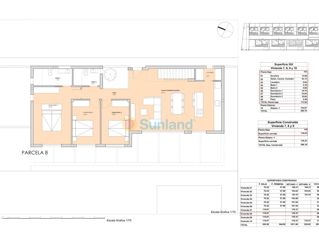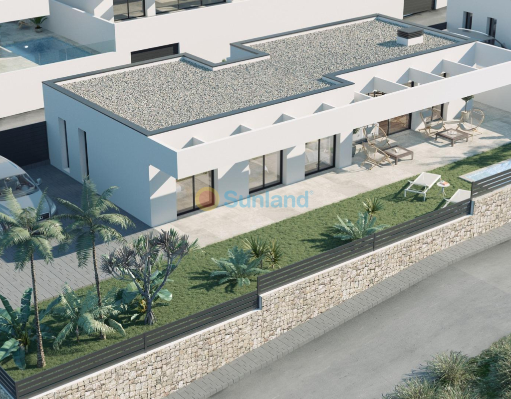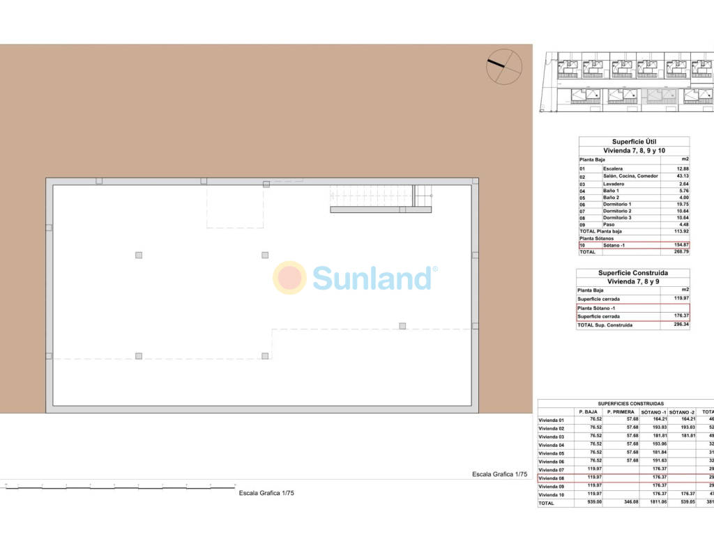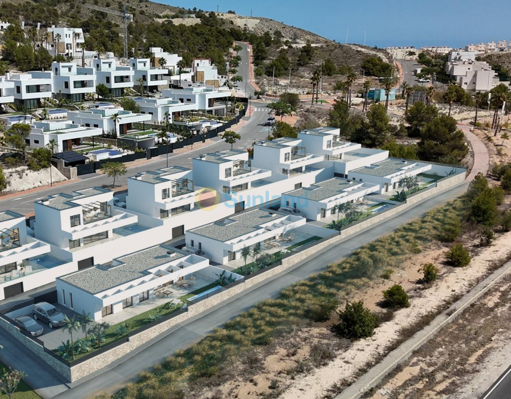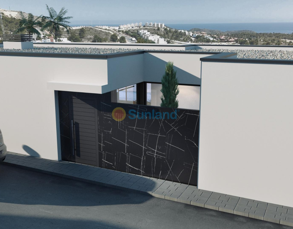 NYBYGDE VILLAER I FINESTRAT Nybyggprosjekt med 10 moderne designvillaer, i naturskjønne omgivelser med utsikt over havet og fjellene, nær Puig Campana golfbane, og i kort avstand fra byene Finestrat og Benidorm. Prosjektet vil bli delt inn i to byggefaser, som igjen inkluderer to typer boliger, med 1 eller 2 etasjer, 3 doble soverom, 2 eller 3 komplette bad, stue-spisestue med integrert kjøkken, vaskerom, stor terrasse og hage, privat basseng, utendørs parkering, 1 eller 2 flerfunksjonelle kjellere og i noen modeller lukket underjordisk garasje. Et alternativ for et solarium mot en ekstra kostnad. Villaer bygget med de beste kvalitetene og de siste fremskrittene innen konstruksjon, blant andre: - Glassrekkverk som ikke bryter kontinuiteten i utsikten. - Første kvalitet porselen steintøy gulv. - Pansret inngangsdør. - Utvendig snekkerarbeid i aluminium med kuldebrobryter og dobbelt isolerende glass med lav emissivitet med luftkammer og sikkerhet i områder med risiko for brudd. - Glatt innvendig snekkerarbeid i hvitlakkert tre med håndtak og beslag i rustfritt stål. - Fullt utstyrte skyvegarderober og omkledningsrom. - Produksjon av varmt vann til husholdningen gjennom et varmepumpesystem med en 100L akkumulatortank, med støtte fra solcellepaneler på taket. - Høyverdig elektrisk installasjon 9,2kw. - Installasjon av klimaanlegg gjennom kanaler med maskiner inkludert. - Minimalistisk designkjøkken, fullt utstyrt med øy, møbler og hvitevarer inkludert. - Privat basseng med belysning og strandområde med fortau eller kunstgress. - Fullt tilpassbar flerbrukskjeller, avhengig av modell med garasjeområde for et kjøretøy og forhåndsinstallasjon for et elektrisk kjøretøy. Villaene ligger i et privilegert miljø på Costa Blanca, i et forhøyet område ved foten av fjellene, omgitt av natur og andre lignende urbanisasjoner, med utmerket utsikt over havet og omgivelsene. Meget gode veiforbindelser med den nærliggende byen Finestrat, 10 minutter med bil fra kjøpesentre, motorvei A7, strendene og de nærliggende byene Benidorm og Villajoyosa, og 30 minutter fra byen Alicante og dens internasjonale flyplass.