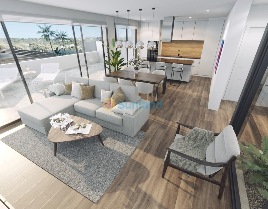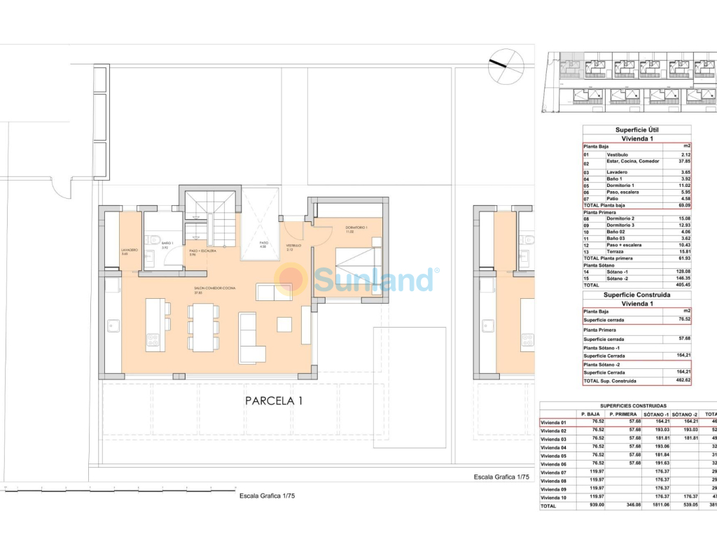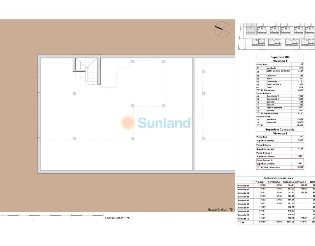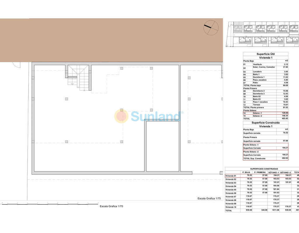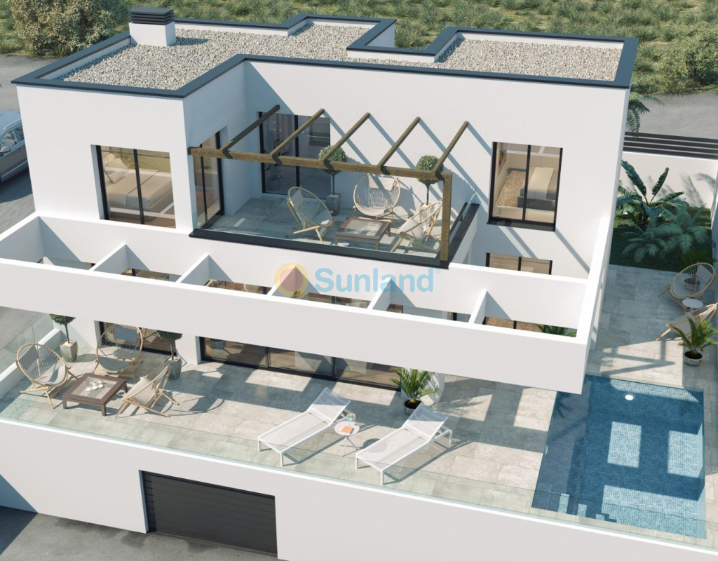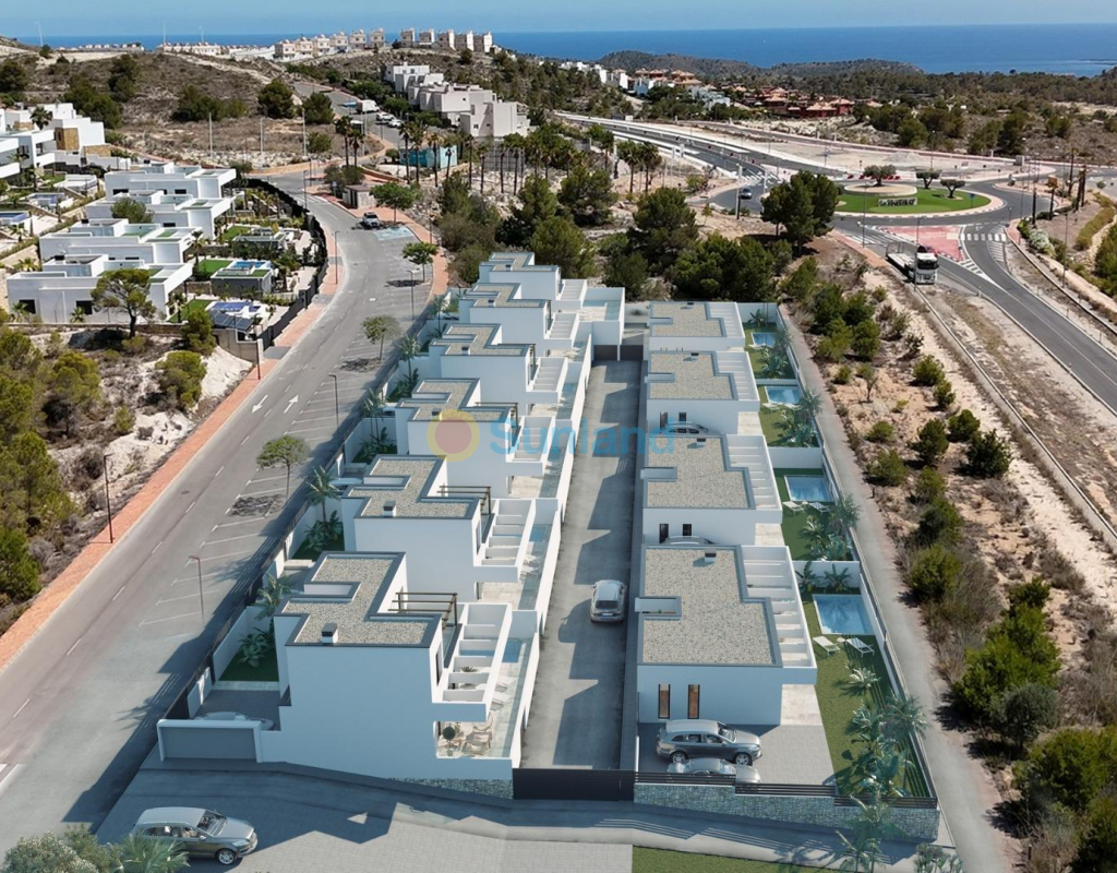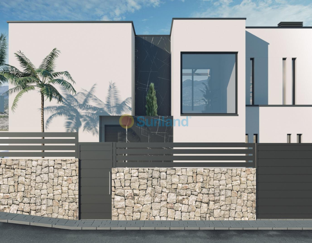 NYBYGDE VILLAER I FINESTRAT Nybyggprosjekt med 10 moderne designvillaer, i naturskjønne omgivelser med utsikt over havet og fjellene, nær Puig Campana golfbane, og i kort avstand fra byene Finestrat og Benidorm. Prosjektet vil bli delt inn i to byggefaser, som igjen inkluderer to typer boliger, med 1 eller 2 etasjer, 3 doble soverom, 2 eller 3 komplette bad, stue-spisestue med integrert kjøkken, vaskerom, stor terrasse og hage, privat basseng, utendørs parkering, 1 eller 2 flerfunksjonelle kjellere og i noen modeller lukket underjordisk garasje. Et alternativ for et solarium mot en ekstra kostnad. Villaer bygget med de beste kvalitetene og de siste fremskrittene innen konstruksjon, blant andre: - Glassrekkverk som ikke bryter kontinuiteten i utsikten. - Første kvalitet porselen steintøy gulv. - Pansret inngangsdør. - Utvendig snekkerarbeid i aluminium med kuldebrobryter og dobbelt isolerende glass med lav emissivitet med luftkammer og sikkerhet i områder med risiko for brudd. - Glatt innvendig snekkerarbeid i hvitlakkert tre med håndtak og beslag i rustfritt stål. - Fullt utstyrte skyvegarderober og omkledningsrom. - Produksjon av varmt vann til husholdningen gjennom et varmepumpesystem med en 100L akkumulatortank, med støtte fra solcellepaneler på taket. - Høyverdig elektrisk installasjon 9,2kw. - Installasjon av klimaanlegg gjennom kanaler med maskiner inkludert. - Minimalistisk designkjøkken, fullt utstyrt med øy, møbler og hvitevarer inkludert. - Privat basseng med belysning og strandområde med fortau eller kunstgress. - Fullt tilpassbar flerbrukskjeller, avhengig av modell med garasjeområde for et kjøretøy og forhåndsinstallasjon for et elektrisk kjøretøy. Villaene ligger i et privilegert miljø på Costa Blanca, i et forhøyet område ved foten av fjellene, omgitt av natur og andre lignende urbanisasjoner, med utmerket utsikt over havet og omgivelsene. Meget gode veiforbindelser med den nærliggende byen Finestrat, 10 minutter med bil fra kjøpesentre, motorvei A7, strendene og de nærliggende byene Benidorm og Villajoyosa, og 30 minutter fra byen Alicante og dens internasjonale flyplass.