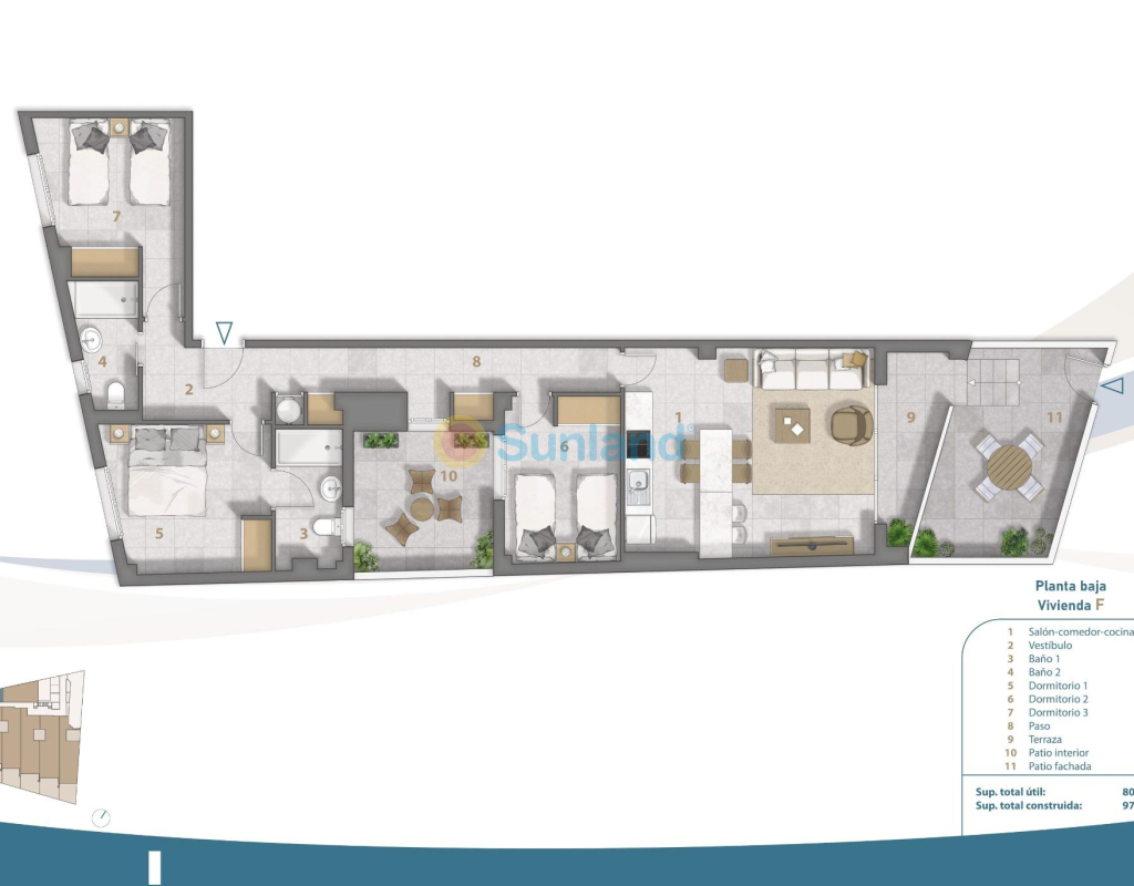 NYBYGDE BOLIGER I FØRSTE LINJE I SAN PEDRO DEL PINATAR Lo Pagan ligger langs den fengslende Mar Menor, en by i Murcia som byr på en sømløs blanding av naturskjønnhet og kulturell rikdom, og som er et perfekt fristed for dem som søker en rolig oase. Lo Pagan er lett tilgjengelig, bare 57 minutters kjøring fra Alicante lufthavn, og inviterer deg til å slappe av, utforske og skape gode minner i denne idylliske spanske kystbyen. Unn deg det ypperste av raffinert livsstil i våre omhyggelig utformede nybygg med penthouse-leiligheter og leiligheter med 1, 2 og 3 soverom. De 21 leilighetene er elegant fordelt over tre etasjer, og har et upåklagelig design. Boarealet i hver enhet er designet for å omfavne naturlig lys og skape lyse, romslige og moderne oppholdsrom som sømløst smelter sammen med de kystnære omgivelsene. Utforsk et utvalg av boliger, som er tilgjengelige i tre forskjellige modeller og størrelser. Residential inviterer deg til å oppleve en livsstil med luksus uten sidestykke og en rekke utsøkte fasiliteter: Fordyp deg i det forfriskende vannet i det felles svømmebassenget. Nyt bekvemmeligheten og sikkerheten ved underjordisk parkering. Nyt fritiden på den felles takterrassen. Noen av leilighetene har private terrasser. Seks toppleiligheter i 2. etasje har en unik funksjon - direkte tilgang til sitt private solarium gjennom terrassene. Her er det også et oppbevaringsrom for ekstra bekvemmelighet. I tillegg har beboerne muligheten til å forbedre utendørsopplevelsen ved å legge til et sommerkjøkken til sitt private solarium. Alle boligene er designet for å gi deg en følelse av å være på evig ferie, et fristed der ro og raffinement møtes. Noen av boligene har utsikt mot sjøen, mens andre har utsikt fra siden. San Pedro del Pinatars privilegerte beliggenhet ved Mar Menor og Middelhavskysten tiltrekker seg de som er interessert i seiling og vannsport, med marinaer og seilklubber, mens strendene og de naturlige gjørmebadene tiltrekker seg de som søker trygg sol, sjø og sand. San Pedro del Pinatar har et etablert lokalsamfunn og tilbyr et utmerket utvalg av aktiviteter, inkludert overbygd svømmebasseng og idrettsanlegg, i tillegg til et helårsprogram med sosiale aktiviteter i det behagelige vinterværet. Fordelene med gjørmebadene, som er typiske for regionen, eller det rolige vannet i Mar Menor, har bidratt til veksten av Lo Pagán, som i dag har alle slags fasiliteter. I tillegg har det en utmerket beliggenhet, bare 5 minutter fra det kommersielle senteret Dos Mares. Murcia/Corvera flyplass ligger 30 minutter unna, og Alicante flyplass ligger en times kjøretur unna.