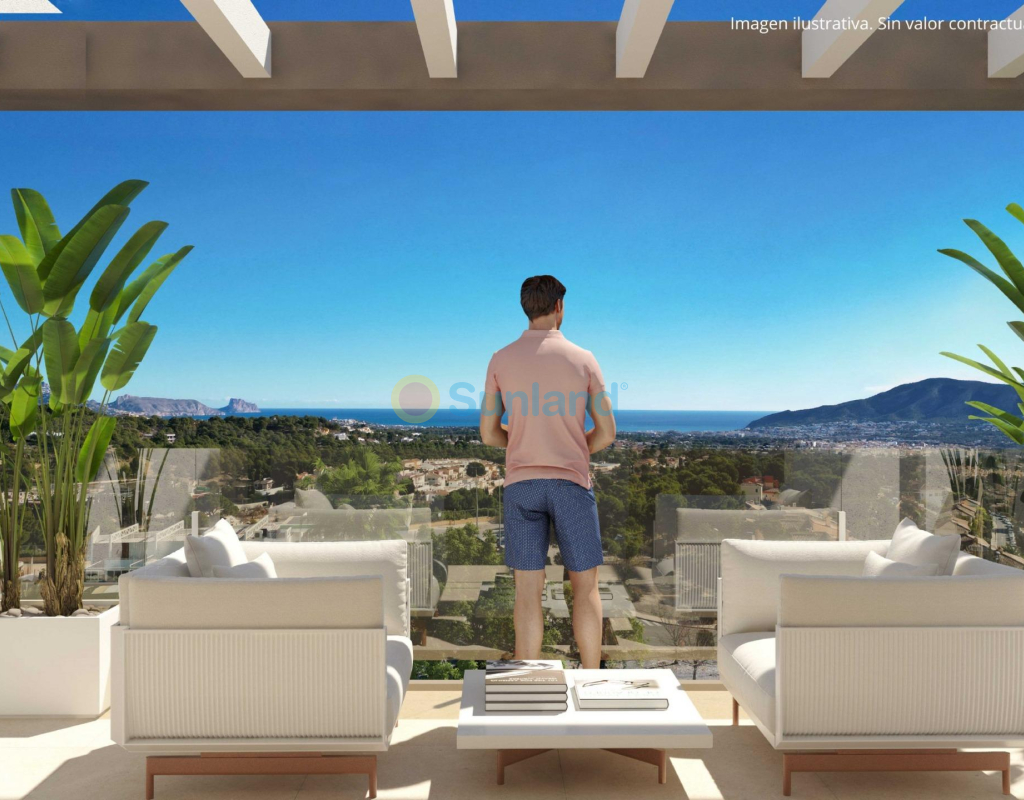 NYBYGD BOLIGKOMPLEKS I LA NUCIA Nybygget boligkompleks med frittstående og tomannsboliger med felles svømmebasseng i La Nucia. Et boligkompleks med moderne design og konstruksjon der du kan nyte klimaet, det gode solskinnet, den spektakulære utsikten over buktene i Benidorm og Albir og en sunn livsstil. I nærheten av alle tjenester og idrettsbyen La Nucia. Størrelsen på de moderne boligene og utformingen av dem gjør dem ideelle for kunder som trenger mer plass, som ønsker å gjøre en del av boligene sine lønnsomme for utleie mens de fortsetter å ha sitt eget hjem, eller som vil ha plass til spill, et kontor eller et område for familiens yngste medlemmer. Boligene går over 3 etasjer, har 4 soverom, 3 bad, gjestetoalett, åpen kjøkkenløsning med stue, garderober, flere terrasser med utsikt, parkering for to biler og en hage med direkte tilgang til fellesområdene. Mange av dem har også et solarium hvor du kan nyte kveldene utendørs med vennene dine. La Nucía er en kommune i kommunen Marina Baixa i Alicante. Den grenser til kommunene Altea, Callosa d'En Sarrià, Benidorm, Polop og L'Alfàs del Pi. La Nucia ligger i en fruktdal mellom Benidorm og Callosa d'En Sarrià, 3 km fra kysten av Altea. Byens sentrum ligger på en odde med utsikt over Middelhavet, 51 km nord for Alicante og 8 km nord for Benidorm.