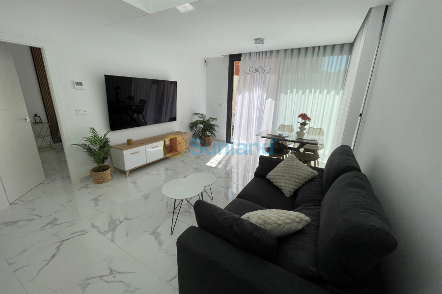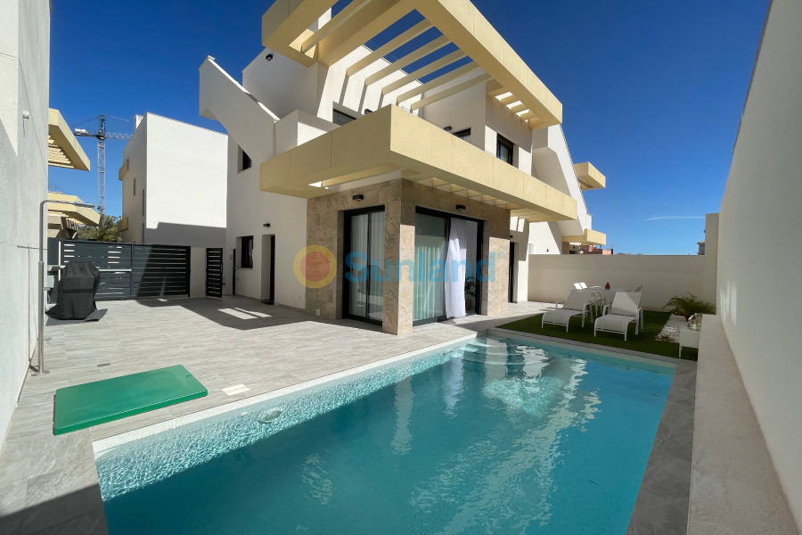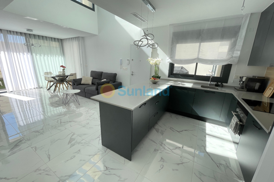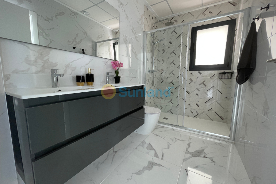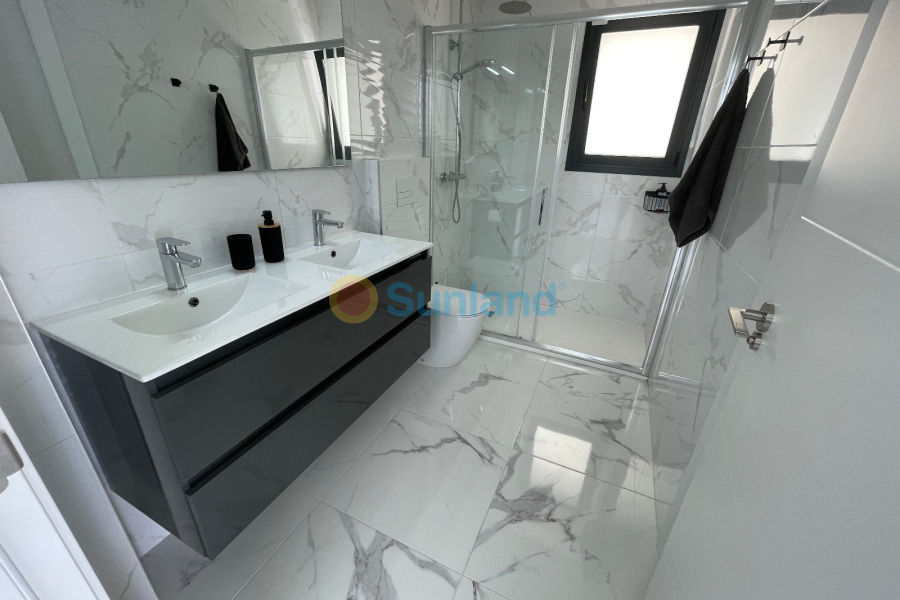 Nesten ny bolig i perfekt stand, bygget i 2023. Den har 3 soverom og 2 bad, en romslig stue og et fullt utstyrt kjøkken. Eiendommen inkluderer et privat svømmebasseng, terrasse, to klimaanlegg (varme/kjøling) via kanaler, aerotermisk varmesystem, gulvvarme på badene, bod og parkering på tomten. Ligger i nærheten av alle tjenester. Klar til innflytting.