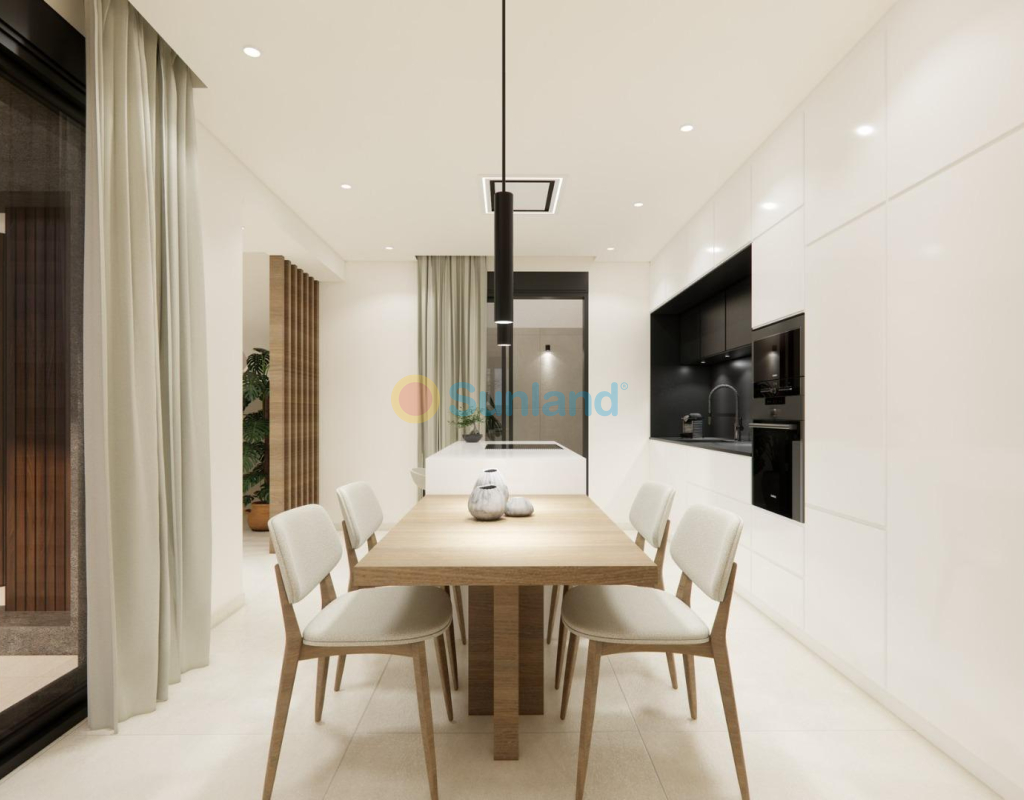 Nybygde firemannsboliger og rekkehus i Dolores Dette moderne boligprosjektet i Dolores består av nybygde firemannsboliger og rekkehus. Boligene er designet med moderne stil og komfort i tankene, og hvert hjem er fordelt på to etasjer med 3 soverom og 3 bad. Det åpne kjøkkenet er sømløst forbundet med stuen, som leder direkte ut til en privat terrasse og hage. Alle boligene har også eget privat basseng og parkeringsplass. Høy kvalitet og moderne fasiliteter Disse boligene er konstruert med materialer og utførelser av høy kvalitet. Utvendig snekkerarbeid er laget av aluminium med termisk brudd, og badene har dusjvegger i glass. LED-belysning er installert i hele boligen, noe som sikrer energieffektivitet og en moderne atmosfære. Til sammen skaper dette et komfortabelt og stilfullt bomiljø for deg og familien din. Førsteklasses beliggenhet nær daglige tjenester Disse boligene ligger i utkanten av den sjarmerende byen Dolores, bare en kort spasertur fra viktige dagligdagse tjenester, inkludert butikker, restauranter og lokale fasiliteter. Dolores er en del av Vega Baja del Segura-regionen, i den sørlige delen av Alicante-provinsen, som er kjent for sitt jordbrukslandskap og avslappede tempo. Nær viktige severdigheter La Marina-stranden: 10 km Guardamar-stranden: 10 km Alicante lufthavn: 30 km Murcia-Corvera lufthavn: 60 km Golfbaner: 15 km Kjøpesentre: 12 km Perfekt for å nyte livsstilen på Costa Blanca Med middelhavsklimaet, vakre strender bare en kort kjøretur unna og flere golfbaner i nærheten, tilbyr dette prosjektet den ideelle balansen mellom avslapning og fritid. Enten du er ute etter et feriehus eller en permanent bolig, tilbyr disse nybygde boligene i Dolores et moderne liv i et rolig område med gode forbindelser.