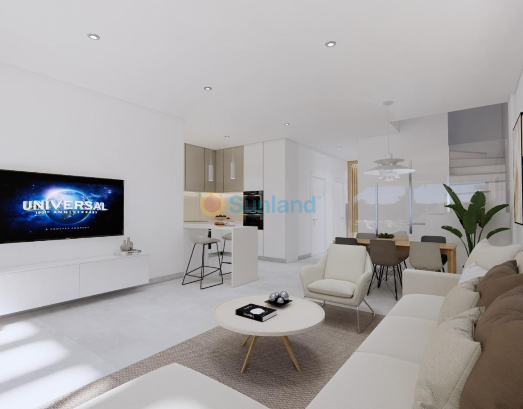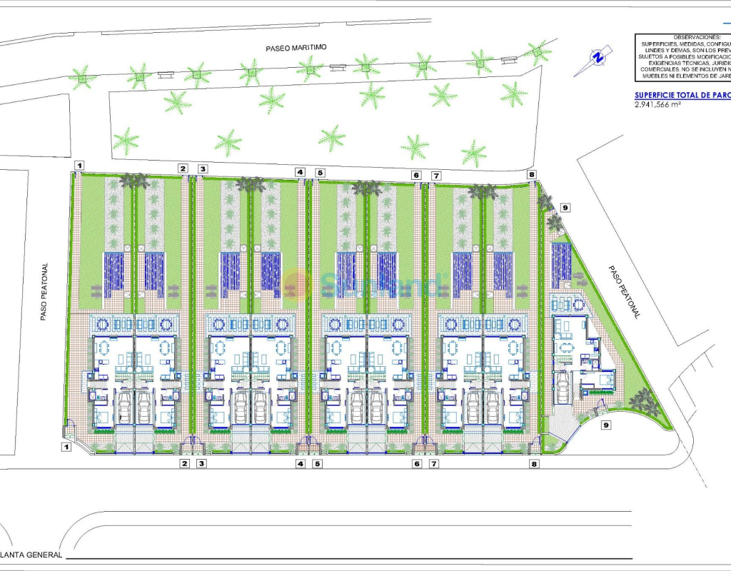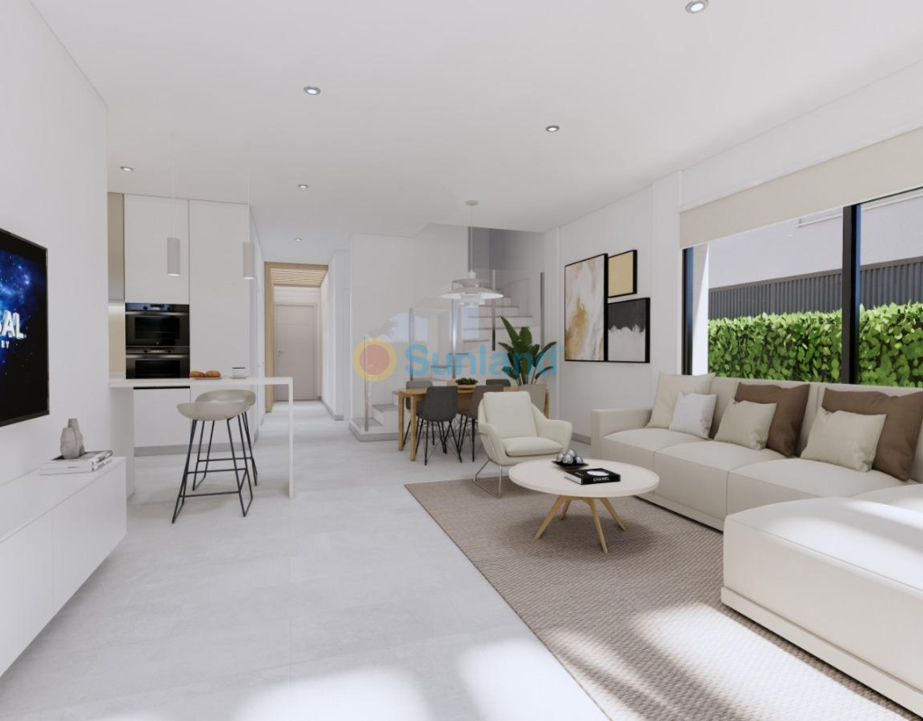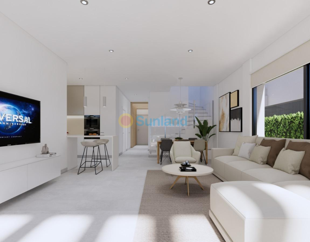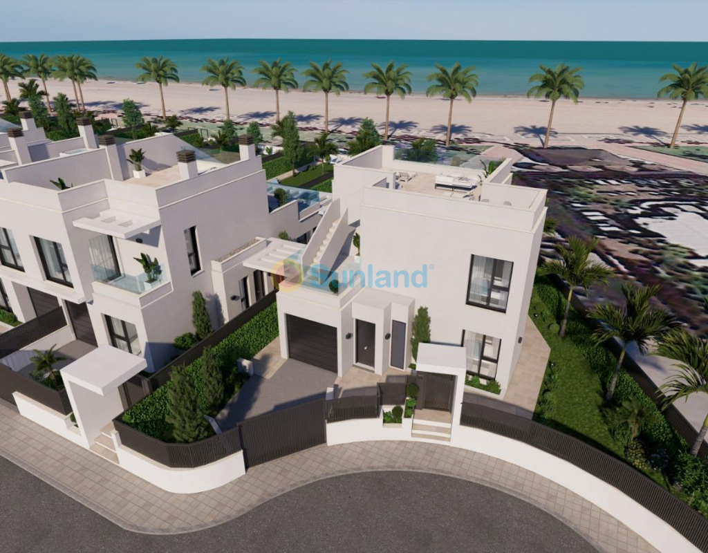 Nye luksusvillaer ved vannkanten i Los Alcázares Oppdag det ultimate middelhavslivet med dette eksklusive boligprosjektet, med ni moderne villaer som ligger rett ved vannkanten i den vakre kystbyen Los Alcázares i Murcia. Disse villaene ligger i det ettertraktede Nueva Ribera-området, og er designet for luksus, privatliv og bekvemmelighet, med nærliggende tilgang til golfbaner, kjøpesentre og transportknutepunkter. Alle villaene har førsteklasses finish, fantastisk havutsikt og et privat basseng, noe som gjør dem til det ideelle valget for dem som ønsker et moderne fristed ved kysten. Førsteklasses beliggenhet i Los Alcázares Dette boligprosjektet ligger i Los Alcázares, en sjarmerende by på Costa Cálida i Spania, og har en misunnelsesverdig beliggenhet med direkte tilgang til strandpromenaden. Dette fredelige området kombinerer roen ved sjøen med enkel tilgang til alle fasiliteter. Det pulserende sentrum av Los Alcázares ligger bare 2 km unna, mens Murcia internasjonale lufthavn ligger bare 35 km unna, noe som gjør reisen praktisk. Den anerkjente Roda Golf Club ligger innen 4 km, noe som gir rekreasjonsmuligheter i nærheten av hjemmet, og motorveien AP-7 gir rask tilgang til nærliggende byer og attraksjoner. Eksklusive villaer med førsteklasses fasiliteter Prosjektet omfatter totalt ni villaer: åtte tomannsboliger og én frittstående villa, som hver har en tomt på over 300 kvadratmeter. Disse romslige eiendommene er utformet med tanke på eleganse og komfort, og de har Privat basseng og solarium: Hver villa har et privat saltvannsbasseng og et solarium på taket med boblebad, LED-belysning og forhåndsinstallasjon for et utekjøkken - ideelt for underholdning mens du nyter utsikten over Mar Menor. Moderne, fullt utstyrt kjøkken: Kjøkkenet har integrerte hvitevarer fra Bosch, inkludert stekeovn, mikrobølgeovn, induksjonstopp og avtrekkshette. Den elegante designen omfatter en halvøy og benkeplater i Silestone eller porselen. Sofistikert klimakontroll: Nyt komforten året rundt med kanalisert klimakontroll i hver etasje, med høytytende enheter fra Mitsubishi eller Daikin. Stilige baderom: Avanserte baderom inkluderer opphengte servantskap, dusjkar av harpiks og innebygde dusjvegger. Energieffektiv design: Hver villa har avansert isolasjon, Guardian Sun akustiske vinduer med doble glass og et aerotermisk vannoppvarmingssystem for optimal energieffektivitet. Smarthusfunksjoner: Elektriske skodder, LED-utendørsbelysning og forhåndsinstallasjon av en ladestasjon for elbiler gir moderne bekvemmelighet. Sikkert og privat område Disse villaene ligger i et privat, inngjerdet område med 24-timers vakthold, og har direkte tilgang til strandpromenaden fra hver hage, noe som sikrer både privatliv og forbindelser. Opplev Los Alcázares kystnære livsstil - Planlegg et besøk i dag! Omfavn luksusen ved å bo ved kysten i Los Alcázares. Med nærhet til Roda Golf og kjøpesentre innen 5 km, tilbyr disse villaene en uovertruffen livsstil. Kontakt oss i dag for å planlegge en visning og sikre deg din drømmeiendom ved vannet.