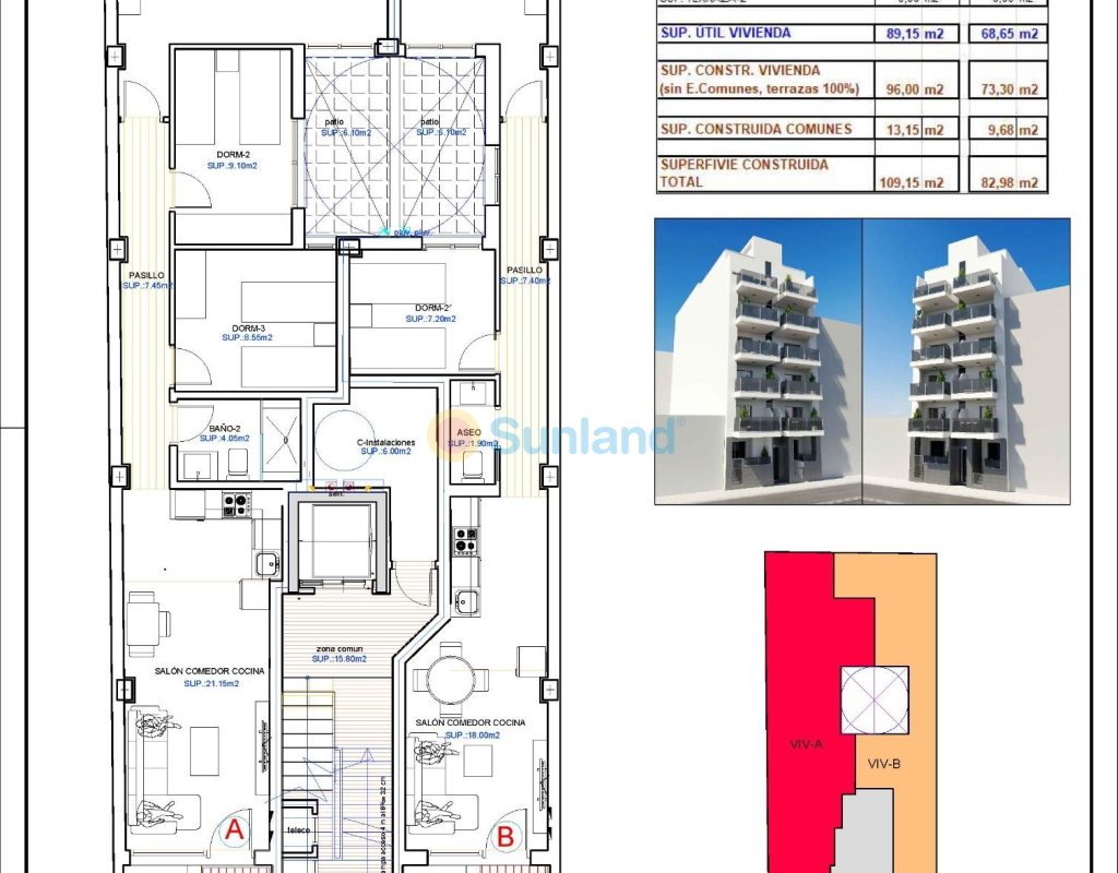 Nybygde leiligheter i Torrevieja, bare 150 meter fra Playa del Cura Førsteklasses beliggenhet i Torrevieja, nær strender og fasiliteter Opplev kystlivet på sitt beste med disse splitter nye leilighetene og toppleilighetene i Torrevieja, som ligger bare 150 meter fra Playa del Cura. Disse eksklusive boligene ligger i et livlig nabolag med alle viktige fasiliteter innen rekkevidde, inkludert butikker, restauranter og kafeer. Med sin perfekte beliggenhet på Costa Blanca kan Torrevieja tilby beboerne et middelhavsklima og en avslappet livsstil med lett tilgang til både Alicante lufthavn (45 km) og Murcia lufthavn (65 km). Moderne design med romslige planløsninger og kvalitetsfinish Dette nye boligkomplekset består av 12 luksuriøse leiligheter og toppleiligheter med 2 og 3 soverom som er designet for moderne komfort. Alle leilighetene har et åpent kjøkken i amerikansk stil som flyter sømløst over i stuen, noe som skaper et ideelt rom for avslapning og underholdning. Soverommene har garderober med skuffer, mens badene har gulvvarme, armaturer av høy kvalitet og dusjvegger. Store, doble vinduer med termisk og akustisk isolasjon sørger for et stille, temperaturkontrollert bomiljø, slik at hjemmet ditt blir et fredelig tilfluktssted. Førsteklasses eksteriør og energieffektive funksjoner Disse leilighetene er bygget med tanke på energieffektivitet, og er utstyrt med utvendig snekkerarbeid i aluminium av høy kvalitet med termobrytende teknologi og automatiske motoriserte skodder. Hver enhet er forhåndsinstallert for klimakontroll gjennom kanalisert klimaanlegg og oppvarming, noe som sikrer komfort året rundt. For ekstra sikkerhet er alle inngangsdører pansret med sikre låser, og innerdørene er hvitlakkerte. I tillegg er hver enhet utstyrt med et energibesparende aerotermisk system for varmtvann, noe som reduserer energiforbruket betydelig. Eksklusivt solarium på taket med basseng Beboerne i dette moderne komplekset har eksklusiv tilgang til en vakker takterrasse med felles svømmebasseng, ideelt for å slikke sol og nyte panoramautsikten over Torrevieja. Byggets takterrasse er et perfekt sted å slappe av med familie eller venner. Å bo i Torrevieja: En blanding av kultur og natur Torrevieja er kjent for sin naturskjønne kystlinje, vakre strender og unike saltlaguner. Byens populære strandpromenader og det sjarmerende Museo del Mar y de la Sal gjenspeiler byens fiske- og saltgruvehistorie. Bare en kort kjøretur unna ligger naturparken Las Lagunas de La Mata-Torrevieja, som byr på pittoreske stier og to fantastiske saltvannslaguner, en rosa og en grønn, som naturentusiaster kan utforske. Start kystlivet ditt i dag Ikke gå glipp av sjansen til å eie et stilig nytt hjem med denne eksepsjonelle beliggenheten. Kontakt oss i dag for å avtale en visning og oppdage alt disse eksklusive leilighetene i Torrevieja har å tilby!