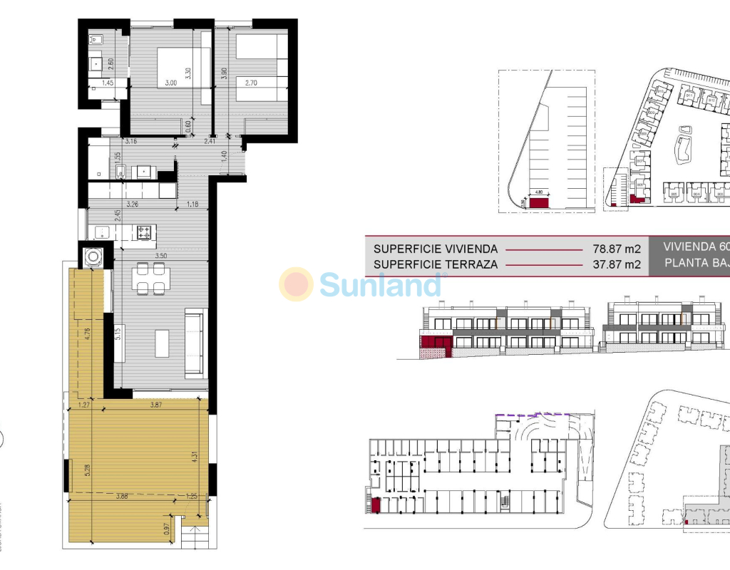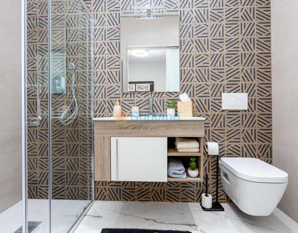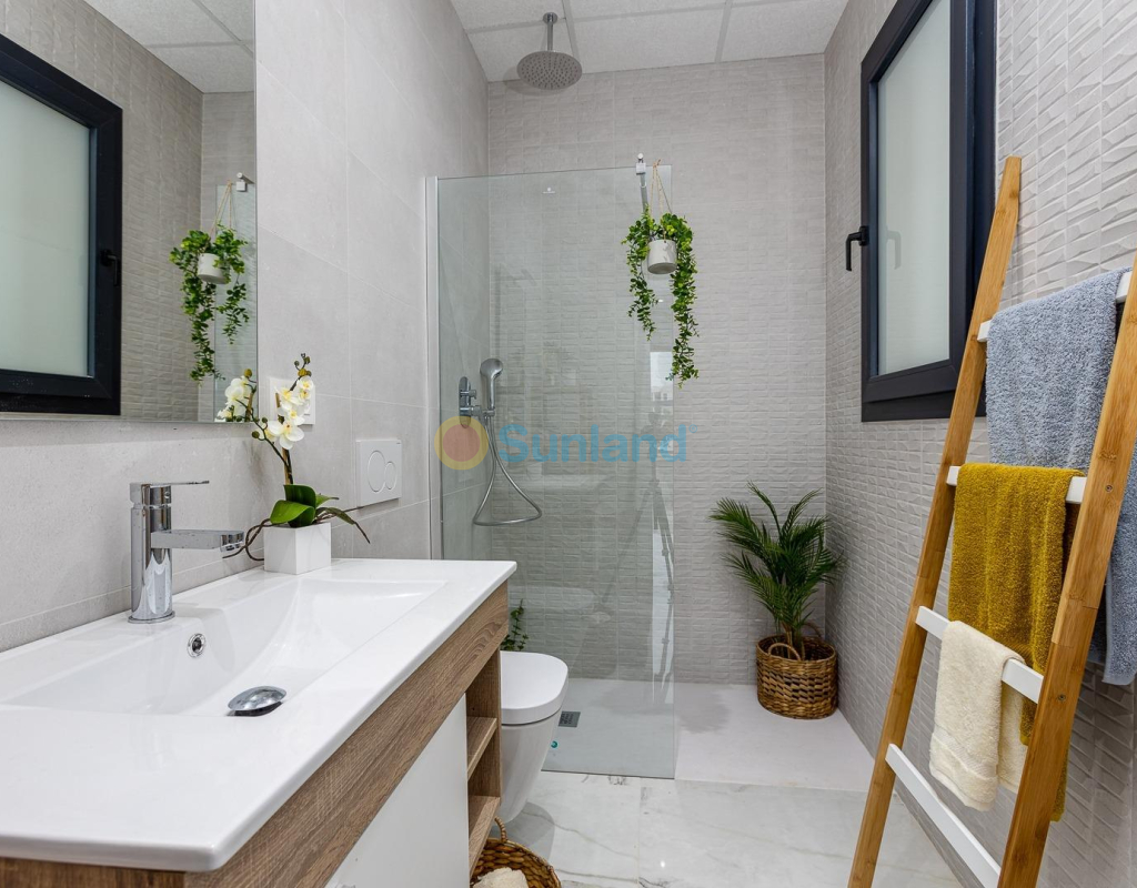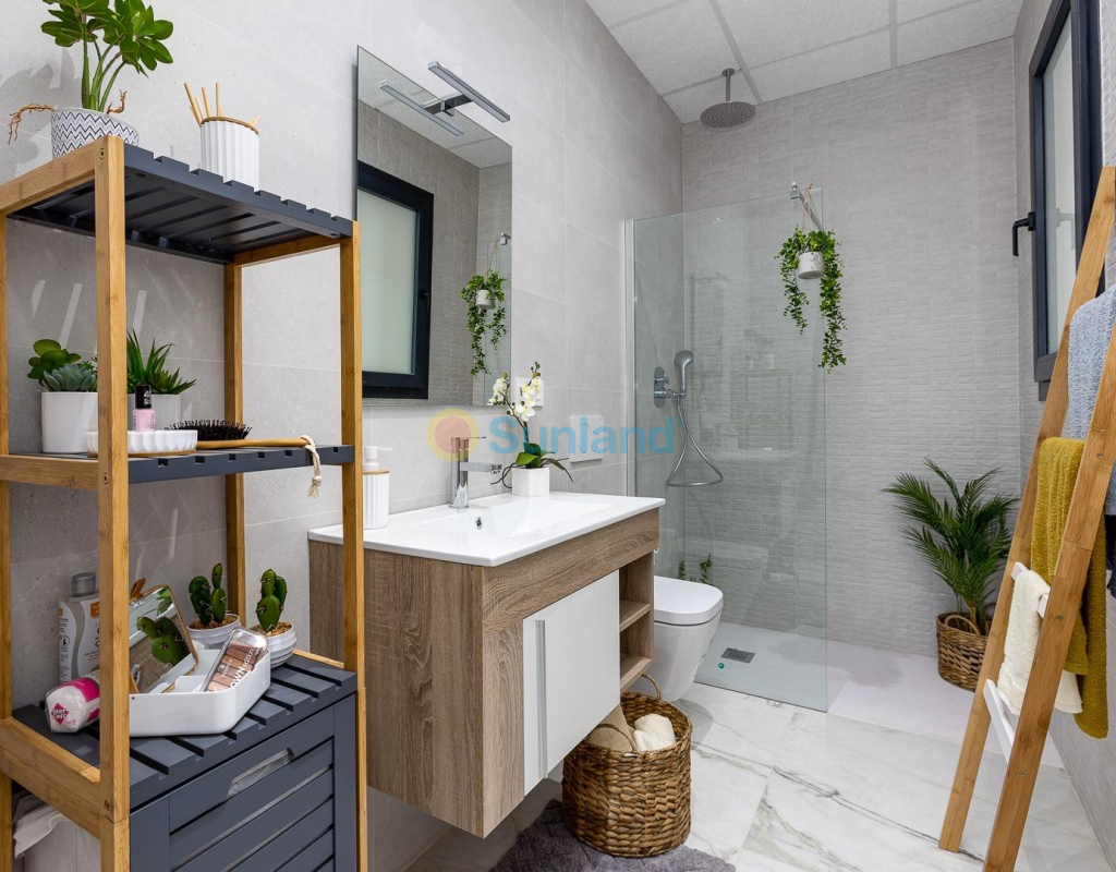 Eksklusivt middelhavsliv i Lo Marabú, Ciudad Quesada Førsteklasses beliggenhet med natur og bekvemmelighet Oppdag sjarmen ved å bo i Lo Marabú, Ciudad Quesada, et eksklusivt boligområde som kombinerer moderne komfort med skjønnheten i middelhavsnaturen. Dette boligområdet har en førsteklasses beliggenhet og tilbyr enkel tilgang til viktige tjenester, samtidig som det gir et rolig og fredfylt miljø. Bare en kort kjøretur unna finner du de fantastiske saltlagunene i La Mata og Torrevieja, et paradis for naturentusiaster, fotografer og de som søker velvære. Vakre strender og utendørsaktiviteter Bare 15 minutter unna ligger de uberørte strendene i Guardamar del Segura og Torrevieja, hvor du kan nyte gylne sanddyner og krystallklart vann. Disse kystperlene byr på muligheter for avslapning, vannsport og pittoreske spaserturer langs kysten. For friluftsentusiaster kan området skilte med mange tur- og sykkelstier, mens golfentusiaster vil sette pris på nærheten til flere prestisjefylte golfbaner, som gir en førsteklasses sportsopplevelse. Boliger og fasiliteter av høy kvalitet Dette boligkomplekset har gjennomtenkt designede boliger, blant annet Bungalower: Enheter i første etasje med privat hage eller i toppetasjen med solarium. Alle bungalower har to soverom, to bad, parkeringsplass og bod, og de ligger rundt et sentralt fellesområde med svømmebasseng og hageanlegg. Villaer: Uavhengige eiendommer med tre soverom og tre bad, tilgjengelige i en eller to etasjer. Hver villa har et privat basseng, et solarium og parkering på tomten. Kjeller er også tilgjengelig som tilvalg. Moderne komfort og eksepsjonelle funksjoner Alle boligene er bygget med materialer og utførelser av topp kvalitet: PVC-vinduer med doble vinduer og fjernstyrte motoriserte skodder. Elektrisk gulvvarme på badene. Kanalisert klimaanlegg. Villaer med private bassenger (3,00 x 6,00 m) og dusjer i rustfritt stål. Felles svømmebasseng med barneområde for bungalowbeboere. Som et spesielt lanseringstilbud inkluderer utvalgte boliger hvitevarer og en møbelpakke. Utmerkede forbindelser og lokale høydepunkter Dette prosjektet har en strategisk beliggenhet i Rojales, Alicante, og tilbyr utmerket infrastruktur og gode tilkoblingsmuligheter: Alicante-Elche lufthavn (ALC): 38 km (35 minutter med bil). Murcia-Corvera lufthavn (RMU): 65 km (50 minutter med bil). Nærheten til hovedveier som AP-7 og N-332 sikrer enkel tilgang til byer og attraksjoner i nærheten. Lokale kjøpesentre, restauranter og daglige fasiliteter ligger innen gangavstand. Omfavn middelhavslivet Med sin perfekte blanding av moderne livsstil, naturlig skjønnhet og enestående bekvemmelighet er dette boligkomplekset i Lo Marabú det ideelle valget for deg som søker en livsstil av høy kvalitet. Ikke gå glipp av sjansen til å investere i ditt drømmehus i hjertet av Middelhavet. Kontakt oss i dag for å avtale en visning eller for å lære mer om dette eksepsjonelle prosjektet!