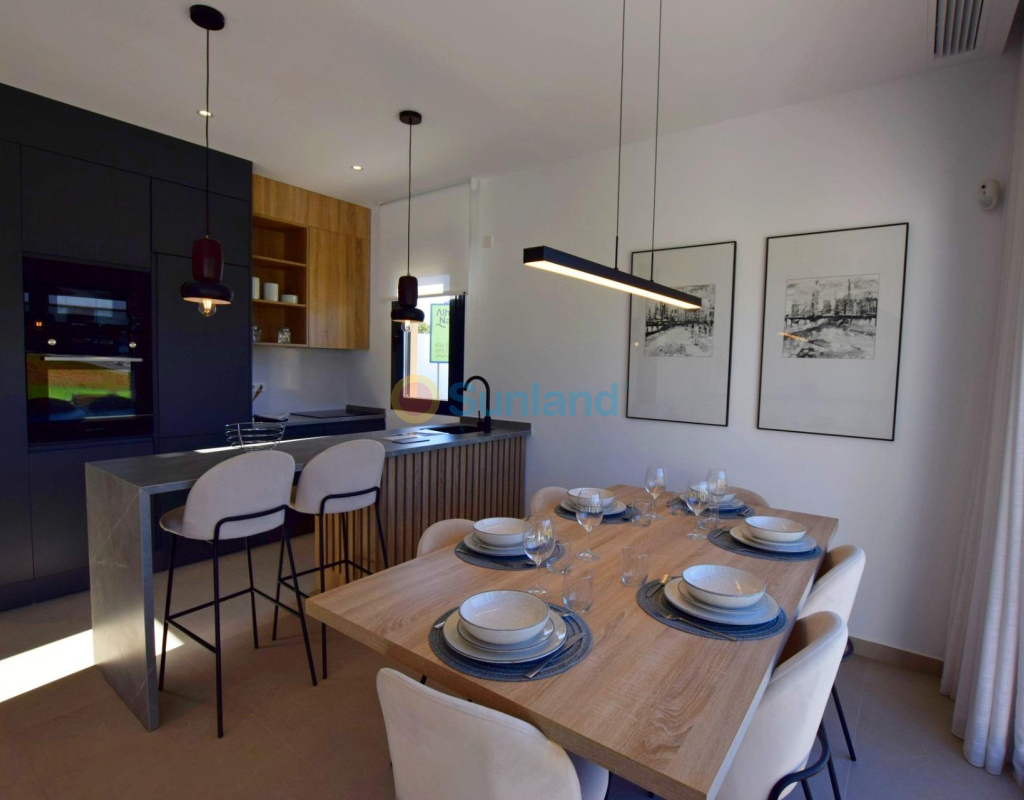 NYBYGGDE LEILIGHETER I CONDADO DE ALHAMA GOLFBANE Nybygget boligkompleks med villaer og leiligheter i Condado de Alhama. Flotte 8 leiligheter er fordelt på bakke, første, andre og tredje etasje, med to eiendommer i hver etasje og heis for å flytte fra ett til annet plan. Det er flere felles svømmebasseng, utendørs parkeringsplass for hver leilighet, bod og terrasse med sommerkjøkken. Eiendommene i toppetasjen har solarium. De to leilighetene i første etasje har 3 soverom og 2 fullt utstyrte bad, og resten av eiendommene har også 2 soverom og 2 utstyrte bad. Eiendommene er designet med en moderne stil og et åpent planløsningskonsept, bestående av et kjøkken og en stue/spisestue. Utbyggingen ligger i Condado de Alhama, Murcia, innenfor et luksuriøst feriested, med sportsområder og omgitt av natur, alle tjenester og flere golfbaner. Eiendommen vil oppfylle de høyeste standarder og vil være utstyrt med: Felles svømmebasseng med store grøntområder. Kjøkken komplett møblert og utstyrt med stekeovn og mikrobølgeovn forhøyet og i søyle, integrert kjøleskap og oppvaskmaskin, induksjonstopp og avtrekksvifte. Belysning: inne i eiendommen (spisestue, kjøkken, korridorer og bad), samt i uteområder. Fôrede garderober med skuffer og hyller. Fullt utstyrt bad med servantskap, nedhengt toalett, speil, vegghengt dusj og dusjskjermer. Pre-installasjon for kanalklimaanlegg. Sommerkjøkken på terrassene. Solarium i de øverste etasjene. Utendørs parkeringsplass med bod. Heis (fra første etasje til 3. etasje). Condado de Alhama Golf Resort er et fantastisk golfanlegg med mange fasiliteter og tjenester. Et kjøpesenter, et sportssenter, en rekke barer og restauranter, supermarkeder og over 25 felles svømmebasseng og hager. Condado de Alhama Golf Resort har sin egen Jack Nicklaus-designede golfbane og ligger kun 15 minutter fra de vakre strendene Bolnuevo og Mazarron. Mazarron har over 35 km kystlinje, hvorav mye er uberørt kystlinje. Tallrike strender i Mazarron-bukten har blitt tildelt Blått Flagg for sin kvalitet. Condado de Alhama Golf Resort ligger kun 20 minutter fra den nye Corvera internasjonale lufthavn.