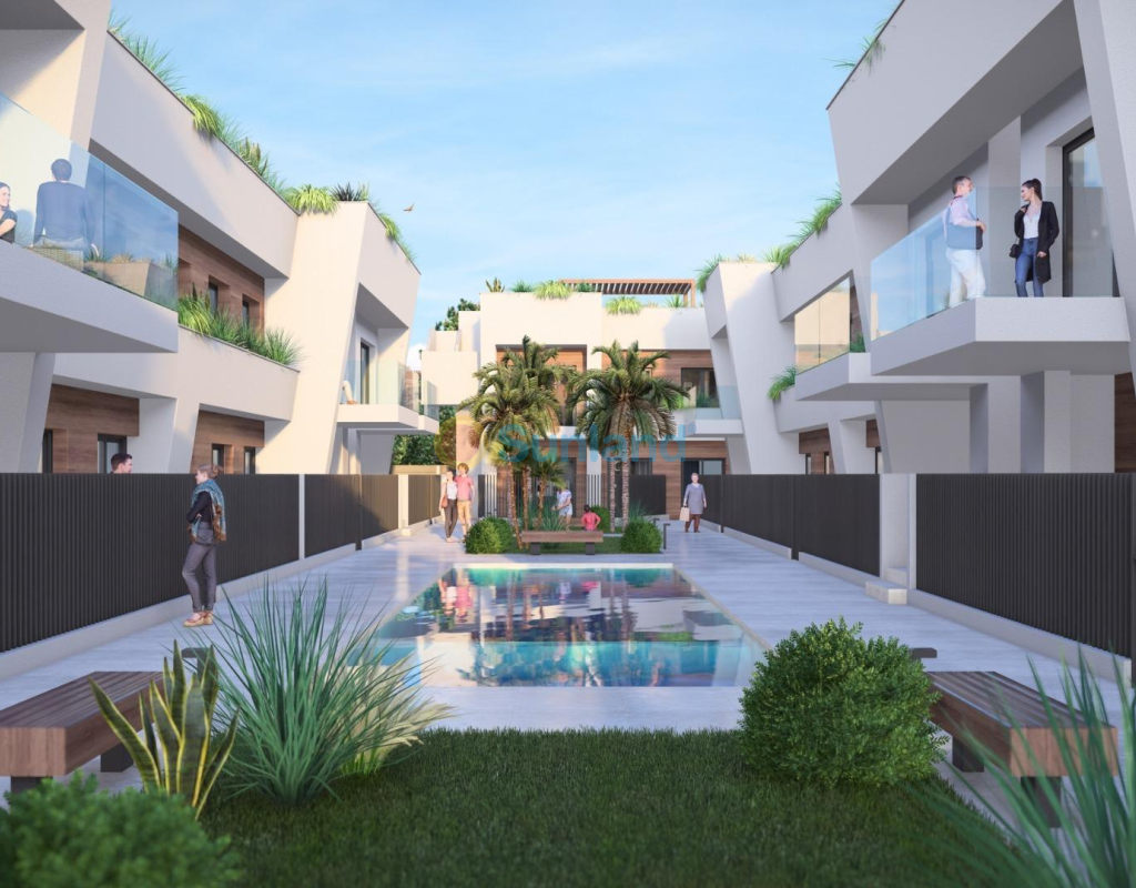 Nybygde boliger i Torre-Pacheco, Costa Cálida Moderne bungalower med eksepsjonelle funksjoner Oppdag et nytt boligkompleks i Torre-Pacheco, som tilbyr 24 stilige bungalower med 2 eller 3 soverom. Velg mellom boliger på bakkeplan med romslige terrasser eller i første etasje med private terrasser og solarium. Hvert solarium har en pergola, en grillplass og forsterket tak, perfekt for å installere et boblebad. Alle boligene har egen parkeringsplass og fullt installert klimaanlegg, noe som sikrer komfort året rundt. Førsteklasses beliggenhet i Torre-Pacheco Dette prosjektet ligger i hjertet av Torre-Pacheco, med nærhet til alle viktige fasiliteter, inkludert supermarkeder, butikker, barer og restauranter. Det livlige sentrum, med sin sjarmerende spanske atmosfære, ligger innen gangavstand. For strandelskere ligger fantastiske Mar Menor bare en 10-minutters kjøretur unna, med gyllen sand og krystallklart vann. Nyt fellesskapets enestående fasiliteter Komplekset har et vakkert anlagt fellesområde med frodige hager og et glitrende basseng, som gir et fredelig tilfluktssted for å slappe av og koble av. Områdets solrike klima, med gjennomsnittlig 320 soldager i året, kompletterer disse uteområdene perfekt. Omgitt av prisbelønte golfbaner Torre-Pacheco er et paradis for golfspillere, omgitt av noen av de mest anerkjente golfbanene i Spania. Disse banene ligger bare en kort kjøretur unna, noe som gjør det til et ideelt sted for golfentusiaster. Strategiske forbindelser til viktige destinasjoner Murcia internasjonale lufthavn: 20 km (ca. 20 minutter med bil). Togstasjon: Bare 700 meter unna, og tilbyr praktiske reisealternativer. Kjøpesentre: Flere store shoppingkomplekser innenfor en radius på 15 km. Strender: De vakre strendene på Costa Cálida ligger bare 10 km unna. Havner og marinaer: Den nærmeste marinaen ligger rundt 12 km unna, perfekt for båtliv og vannsport. En sunnere livsstil venter Costa Cálida-regionen er kjent for sin eksepsjonelle livskvalitet. Med lav luftfuktighet, ren luft og et subtropisk klima er dette området et av de sunneste i Spania. Den perfekte kombinasjonen av naturlig skjønnhet, havbris og rikelig med sollys gjør Torre-Pacheco til et svært ettertraktet reisemål. Handle nå for å sikre deg drømmehuset ditt Ikke gå glipp av denne muligheten til å eie et moderne hjem med førsteklasses beliggenhet. Kontakt oss i dag for å lære mer om dette utrolige prosjektet eller for å avtale en visning!