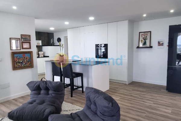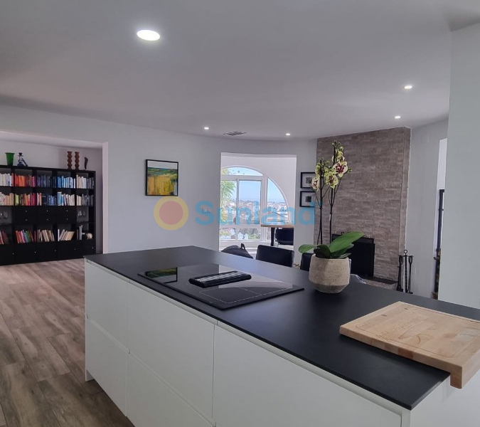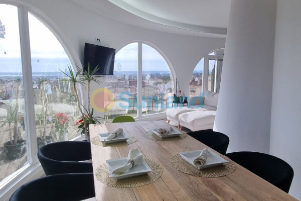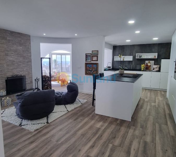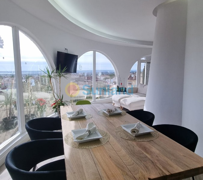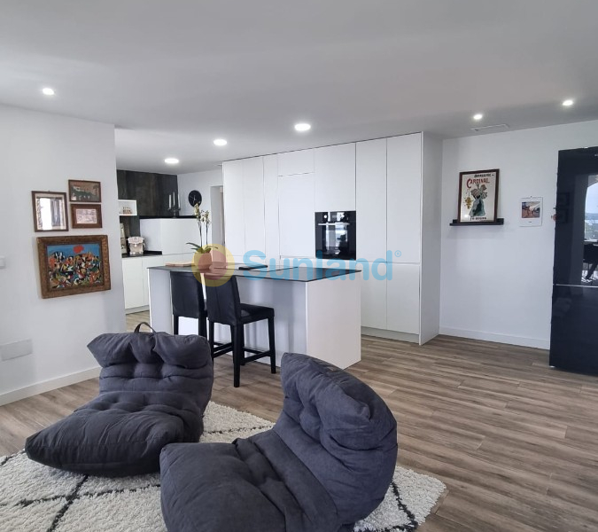 I øverste etasje er det den fantastiske utsikten som fanger oppmerksomheten. Stuen og spisestuen er perfekt integrert med et moderne kjøkken, noe som skaper et åpent og lyst rom. Kjøkkenet er utstyrt med en imponerende sentral øy, avanserte hvitevarer og rikelig med oppbevaringsplass, noe som gjør det til det ideelle stedet å lage mat og underholde gjester.