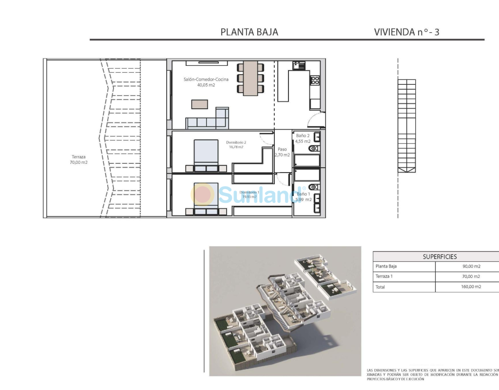 Nybygde boliger med panoramautsikt i Finestrat-Benidorm Eksklusivt boligkompleks med utsikt over havet og byen Velkommen til andre fase av et eksklusivt nybygd boligkompleks i Finestrat-Benidorm, med fantastisk panoramautsikt over Middelhavet og Benidorms skyline. Disse moderne boligene har 2 eller 3 soverom, 2 bad og romslige oppholdsrom fylt med naturlig lys. Velg mellom: Bungalower i toppetasjen med privat solarium. Bungalower i første etasje med privat hage og mulighet for å legge til et privat basseng. Disse boligene er bygget med materialer av høy kvalitet, og de har store terrasser som gjør det mulig å nyte Alicantes mer enn 320 soldager i året. Førsteklasses beliggenhet nær det beste på Costa Blanca Dette eksklusive boligkomplekset ligger i nærheten av noen av de beste strendene, shoppingområdene og fritidsfasilitetene på Costa Blanca. Avstander til viktige steder: Strender (Levante, Poniente, Cala de Finestrat) - 4 km. Golfbaner (Sierra Cortina, Villaitana) - 1 km. Benidorm sentrum - 5 minutters kjøretur. Alicante internasjonale lufthavn - 40 km (30 minutters kjøretur). Forbindelse med høyhastighetstog (AVE) - 30 minutter. Området har gode kommunikasjoner og er omgitt av viktige tjenester, inkludert sykehus, skoler, offentlig transport, kjøpesentre og restauranter. Førsteklasses funksjoner for komfort og kvalitet Hvert hjem inkluderer: Privat parkeringsplass. Valgfri lagringsplass mot en ekstra kostnad. Forsterket sikkerhetsdør. PVC-vinduer med termosperre og doble vinduer. Kanalisert forhåndsinstallasjon for klimaanlegg. Aerotermisk system for varmt vann. Tilgang til et stort felles svømmebasseng. En unik mulighet for investering og kvalitetsliv Finestrat ligger i den vakre Marina Baixa-regionen, og tilbyr en fredelig atmosfære bare noen minutter fra livlige Benidorm. Her kan du nyte det beste fra begge verdener - slappe av i rolige omgivelser og samtidig ha tilgang til toppattraksjoner som Terra Mítica, Aqualandia, Mundomar og Terra Natura. Med sin nærhet til strender, golfbaner og utendørsaktiviteter som fotturer ved Puig Campana, er dette et av de beste områdene å investere i på Costa Blanca. Ikke gå glipp av denne unike muligheten! Kontakt oss i dag for å planlegge et besøk og finne ditt drømmehus i Finestrat-Benidorm.