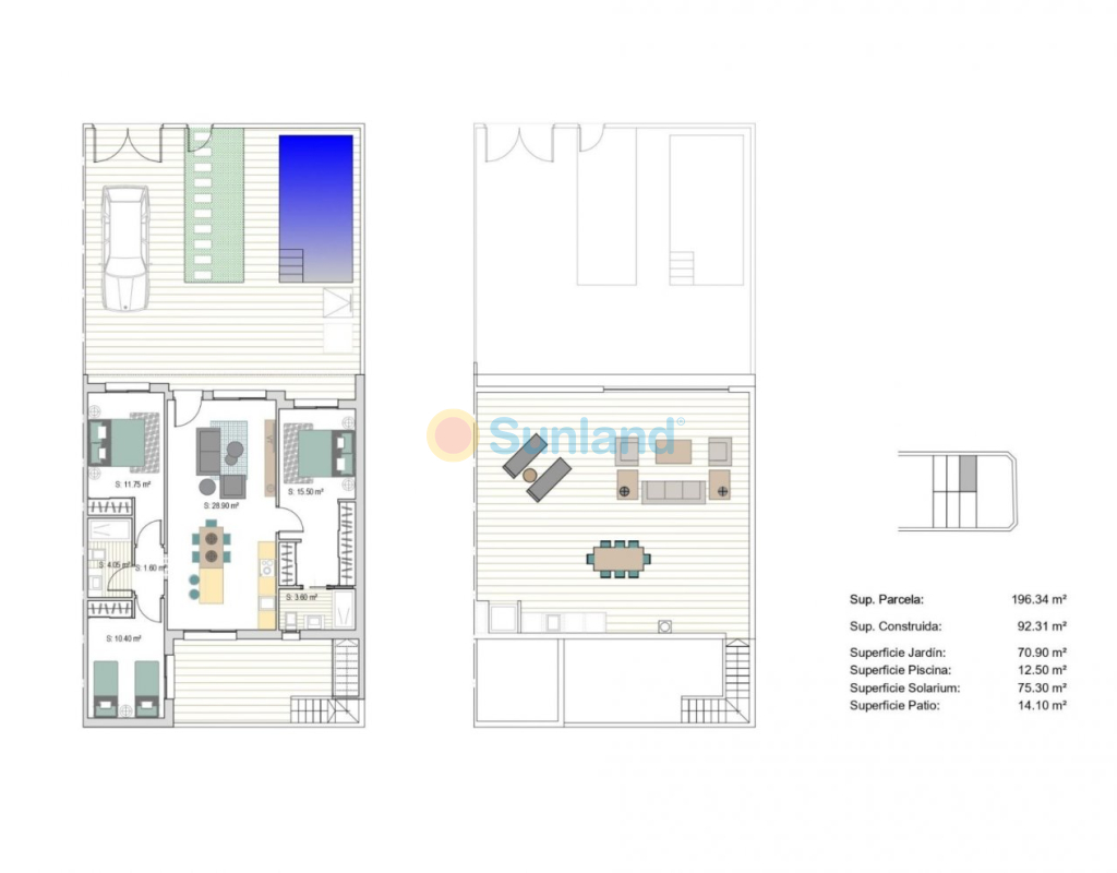 NYBYGGDE REKKEHUS I SAN JAVIER Nybygget luksuskompleks med 24 villaer på ett plan eller i 2 etasjer med privat basseng, terrasseområde og solarium med sommerkjøkken som lar deg nyte alle soltimer, hver dag hele året. Hver villa har 2 eller 3 soverom og 2 utstyrte bad på ett plan eller 3 soverom og 3 utstyrte bad på to plan. Designet med en moderne stil og åpen planløsning, som består av et fullt utstyrt kjøkken og stue/spisestue. Utbyggingen ligger i San Javier (Murcia), nær stranden, omgitt av tjenester, parker, idrettsanlegg og flere golfbaner. Eiendommen vil oppfylle de høyeste standarder og vil være utstyrt med: Privat svømmebasseng med dusj. Kjøkken fullt møblert og utstyrt med stekeovn, mikrobølgeovn, kjøleskap, integrert oppvaskmaskin, platetopp og avtrekksvifte. Belysning: inne i eiendommen (spisestue, kjøkken, korridorer og bad) samt utearealer. Fôrede garderober med skuffer. Fullt utstyrt bad med toalett, servantskap, speil og dusj med skjermpaneler. Pre-installasjon for kanalklimaanlegg. Solarium med sommerkjøkken. Parkeringsplass på tomten. San Javier ligger nær alle fasiliteter med lett tilgang til stranden, vannsport, butikker og transportnettverket. Her kan du nyte alle fasilitetene som San Javier har å tilby, som de lokale butikkene, barene og restaurantene, i tillegg til å være i nærheten av kjøpesentre, flyplassen i Murcia og alle de vakre stedene som finnes langs Mar Menor. Corvera/Murcia flyplass ligger 30 minutter unna og Alicante flyplass ligger 45 minutter unna.