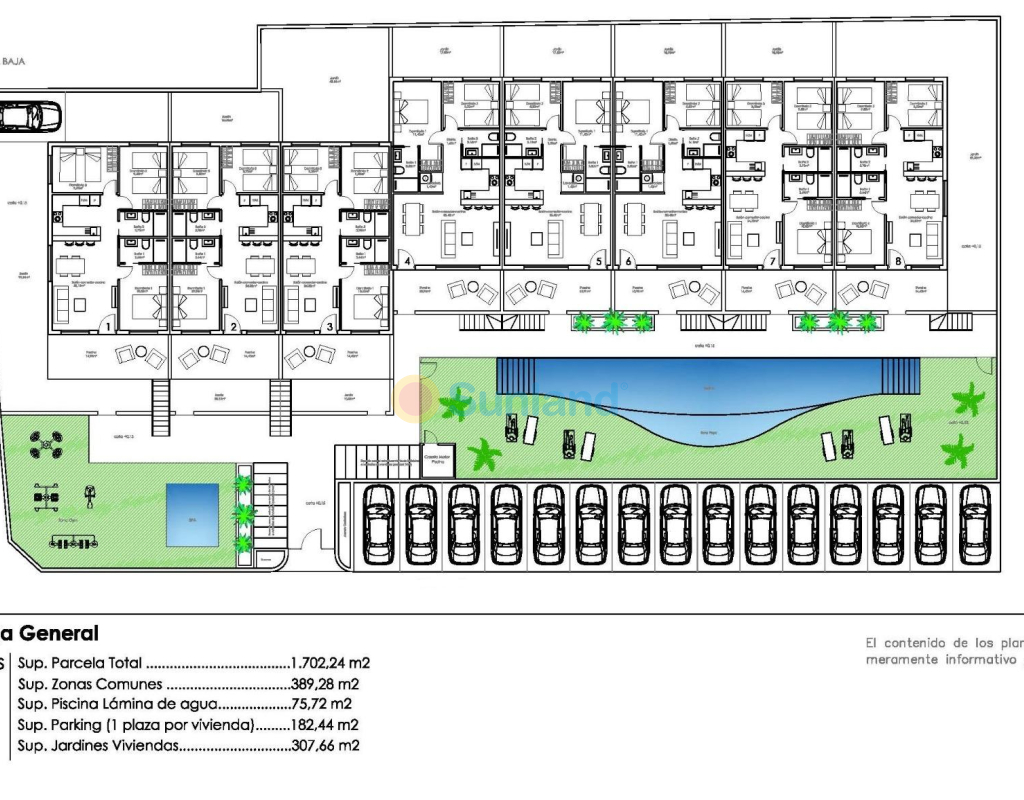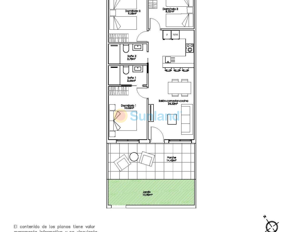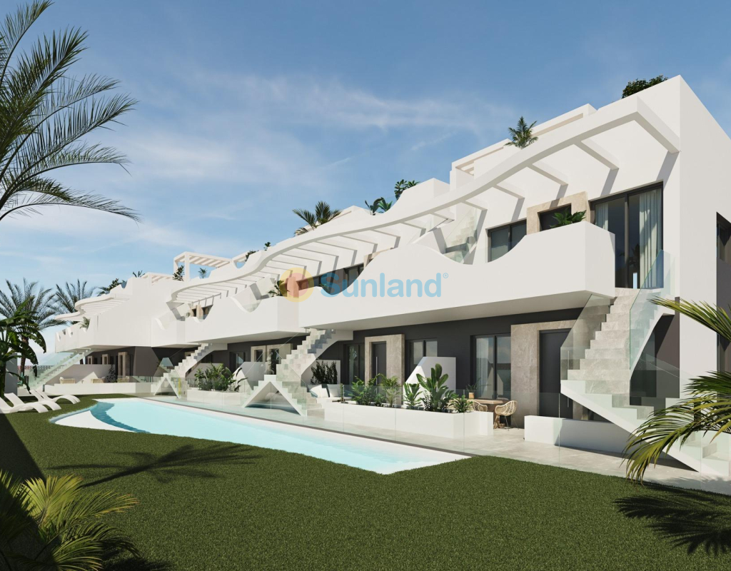 Eksklusive nybyggede bungalower i Pilar de la Horadada - unik stil og privilegert beliggenhet En unik stil som definerer ditt nye hjem Dette nye prosjektet med bungalower med 2 og 3 soverom i Pilar de la Horadada skiller seg ut med sin moderne design og bølgende struktur, noe som gir hvert hjem en unik personlighet. Du vil kunne velge mellom: Første etasje med hage foran og uteplass på baksiden. Toppetasjer med privat solarium. Boligkomplekset har et felles svømmebasseng og romslige fellesområder designet for avslapning og glede for hele familien. I tillegg tilbyr anlegget et utendørs treningsstudio, felles boblebad og parkeringsplass for sykler, samt en parkeringsplass som er tildelt hver eiendom med mulighet for lading av elektriske kjøretøy, designet for å tilby deg maksimal komfort og livskvalitet. Lyst interiør av høy kvalitet Hvert hjem er designet for å gi en opplevelse av komfort og funksjonalitet. Åpen planløsning gir maksimal følelse av romslighet og lys, mens nøytrale fargetoner og treverk skaper en elegant og innbydende atmosfære. Romslige og lyse soverom, med hovedsoverommet som har utgang til en privat terrasse. Åpent kjøkken, integrert i stuen for enkelhets skyld. Moderne bad med materialer av topp kvalitet. Pilar de la Horadada - livskvalitet på Costa Blanca Pilar de la Horadada ligger i Alicante-provinsen, og er en kystby som kombinerer tradisjon med en avslappet atmosfære. Byen er kjent for sine vakre strender, som Playa de las Higuericas, med gyllen sand og krystallklart middelhavsvann. I tillegg til kystlinjen har byen en livlig hovedgate med butikker, supermarkeder, restauranter og pittoreske torg. Den utmerkede infrastrukturen omfatter sykkelstier, turstier og et bredt utvalg av sportsaktiviteter. Nærhet til viktige severdigheter Dette boligområdet tilbyr praktisk tilgang til de viktigste destinasjonene i området: Torre de la Horadada-stranden - 3 km (5 min kjøretur). Lo Romero golfbane - 5 km (10 min kjøretur). La Zenia Boulevard kjøpesenter - 15 km (15 min kjøretur). Corvera lufthavn (Murcia) - 40 km (40 min kjøretur). Alicante lufthavn - 55 km (55 min kjøretur). Sikre din Costa Blanca eiendom i dag Ikke gå glipp av muligheten til å kjøpe en splitter ny eiendom med en eksepsjonell beliggenhet. Kontakt oss i dag for mer informasjon og for å avtale visning.