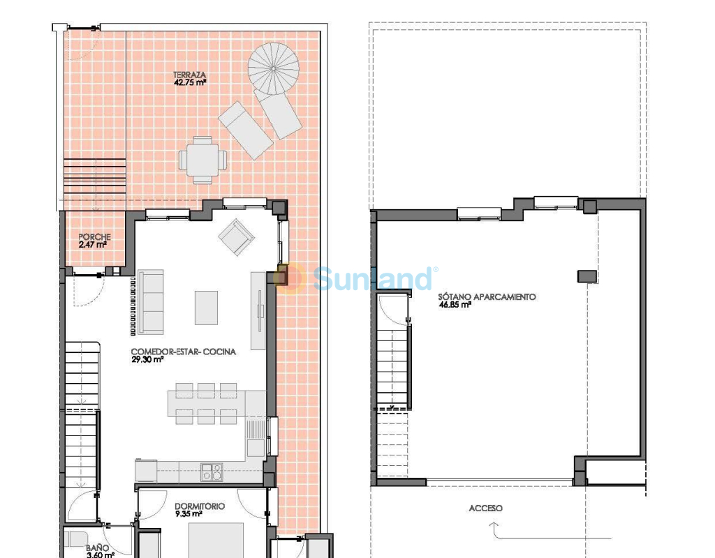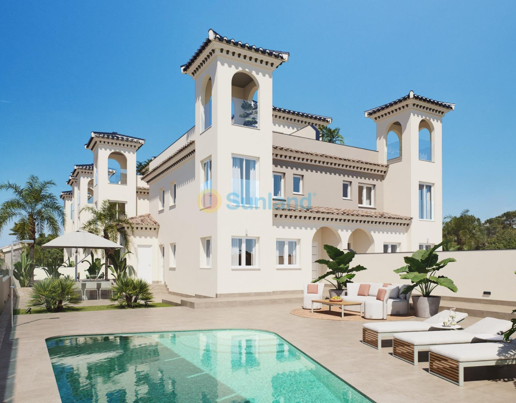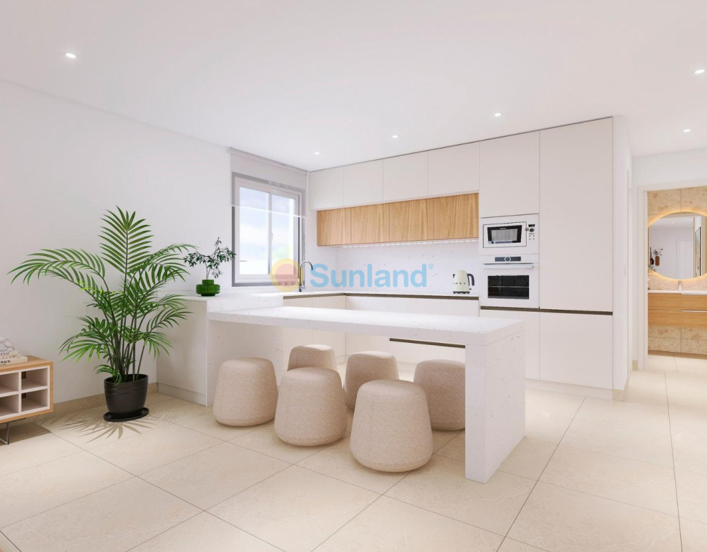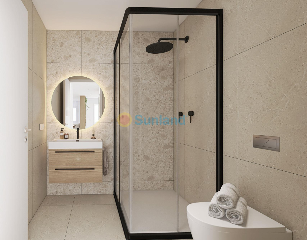 Eksklusive tomannsboliger og firemannsboliger i Bigastro, Alicante Boliger i middelhavsstil i hjertet av Vega Baja Dette nye boligkomplekset i Bigastro, en sjarmerende landsby i Vega Baja, tilbyr 8 firemannsboliger og 2 tomannsboliger designet i en elegant middelhavsstil. Disse boligene ligger i et rolig og godt kommunisert område, og er ideelle for dem som er ute etter en perfekt kombinasjon av komfort, privatliv og nærhet til alle fasiliteter. Romslig og funksjonell design Hver bolig er designet for å tilby romslighet og komfort, med 4 soverom og 3 bad fordelt over 2 etasjer. Første etasje: Ett soverom, bad, åpen kjøkkenløsning med åpen forbindelse til stuen, vaskerom og utgang til hagen. Ovenpå: 3 soverom, inkludert hovedsoverommet med eget bad. Privat solarium på 40 m², ideelt for å nyte middelhavsklimaet og den åpne utsikten. Privat hage med mulighet for svømmebasseng, tilgjengelig mot en ekstra kostnad. Privat garasje på mer enn 60 m² i kjelleren, med direkte tilgang til eiendommen. Bigastro: Ro og gode forbindelser Bigastro er en koselig kommune sør i Alicante, kjent for sine fredelige omgivelser og sin utmerkede forbindelse til de største byene og strendene på Costa Blanca. Orihuela - 5 km (5 minutter med bil). Guardamar strender - 25 km (15 minutter med bil). Torrevieja - 30 km (25 minutter med bil). Alicante lufthavn - 55 km (30 minutter med bil). Zenia Boulevard kjøpesenter - 30 km (25 minutter med bil). Kommunen har alle viktige tjenester, som supermarkeder, skoler, sportssentre og et rikt gastronomisk tilbud, noe som gjør det til et perfekt sted både for permanent opphold og for å nyte et andre hjem. Oppdag ditt nye hjem på Costa Blanca Hvis du er på utkikk etter et moderne og romslig hjem i et rolig, men godt forbundet område, er disse villaene og firemannsboligene i Bigastro det ideelle valget. Kontakt oss i dag for mer informasjon eller for å avtale en visning.
