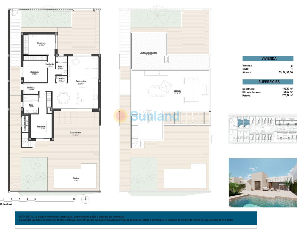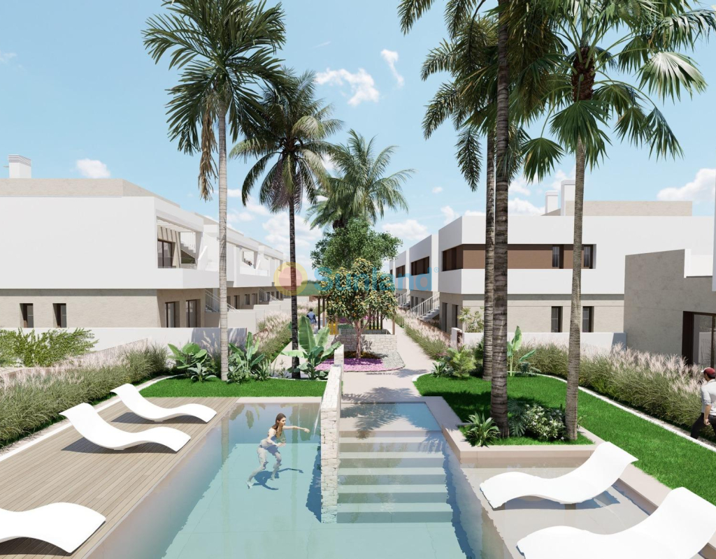 Eksklusive villaer og bungalower på Costa Cálida - design, komfort og en privilegert beliggenhet Et prosjekt som kombinerer privatliv og fellesskap Oppdag et nytt boligkonsept på Costa Cálida, designet for deg som søker den perfekte kombinasjonen av privatliv, komfort og sosialt liv. Dette eksklusive komplekset tilbyr frittliggende villaer og bungalower med tilgang til romslige fellesområder og et felles svømmebasseng, noe som gir det beste fra to verdener: roen i et privat hjem og komforten i fellesområder som kan nytes sammen med venner, familie og naboer. Alle boligene har parkeringsplass og bod i kjelleren, noe som garanterer sikkerhet og bekvemmelighet for beboerne. Moderne design og muligheter for personlig tilpasning Dette prosjektet tilbyr et bredt utvalg av boliger som passer til ulike behov og livsstiler: Bungalower i første etasje med private hager på opptil 122 m². Bungalower i toppetasjen med store terrasser og privat solarium. Eneboliger i én eller to etasjer, med tomter fra 201 til 356 m² og ulike planløsninger og etterbehandlingsalternativer. Alle boligene er designet for å maksimere det naturlige lyset og skape romslige og innbydende rom. Hovedsuiten er nøye utformet for å garantere privatliv og komfort, og soverommet er helt adskilt fra badet, slik at man unngår lys- og støyforstyrrelser i løpet av natten. Kvalitet og bærekraft i hver minste detalj Disse boligene er bygget med materialer av høy kvalitet og utstyrt med bærekraftig teknologi, som solcellepaneler og aerothermics, for å forbedre energieffektiviteten. Enestående funksjoner: Motoriserte persienner på soverommene. Pansret inngangsdør for økt sikkerhet. Forhåndsinstallasjon av kanalisert klimaanlegg. Moderne bad med skillevegger i herdet glass og hengende møbler med LED-speil. Strategisk beliggenhet i Los Alcázares Dette komplekset ligger bare noen få meter fra den prestisjetunge Serena golfbane og 1 km fra strendene ved Mar Menor, og har en privilegert beliggenhet i Los Alcázares, et av de mest lovende områdene på Costa Cálida. I tillegg gir den enkle tilgangen til motorveien AP-7 rask forbindelse til andre destinasjoner i regionen, og gjør det lettere å få tilgang til viktige tjenester som supermarkeder, sportssentre, skoler og apotek. Avstander til severdigheter La Serena Golf - 1 km (2 minutter med bil). Mar Menor-stranden - 1 km (2 minutter med bil eller 10 minutters gange). Murcia lufthavn - 35 km (30 minutter med bil). Cartagena havn - 22 km (20 minutter med bil). Lokalt kjøpesenter - 3 km (5 minutter med bil). En middelhavsstil med høy lønnsomhet Dette prosjektet representerer ikke bare et utmerket alternativ for å nyte middelhavsstilen, men det er også en trygg investering i et område i vekst. Ikke gå glipp av denne unike muligheten. Kontakt oss i dag for mer informasjon og for å reservere ditt ideelle hjem på Costa Cálida.