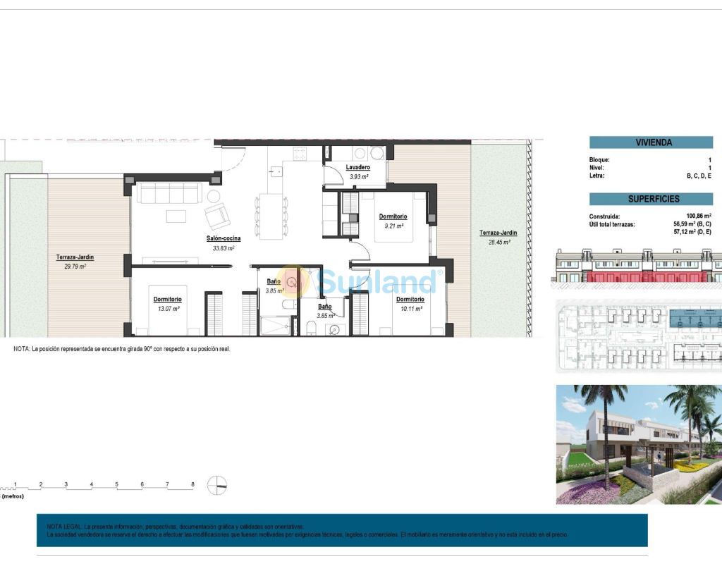 Eksklusive villaer og bungalower på Costa Cálida - design, komfort og en privilegert beliggenhet Et prosjekt som kombinerer privatliv og fellesskap Oppdag et nytt boligkonsept på Costa Cálida, designet for deg som søker den perfekte kombinasjonen av privatliv, komfort og sosialt liv. Dette eksklusive komplekset tilbyr frittliggende villaer og bungalower med tilgang til romslige fellesområder og et felles svømmebasseng, noe som gir det beste fra to verdener: roen i et privat hjem og komforten i fellesområder som kan nytes sammen med venner, familie og naboer. Alle boligene har parkeringsplass og bod i kjelleren, noe som garanterer sikkerhet og bekvemmelighet for beboerne. Moderne design og muligheter for personlig tilpasning Dette prosjektet tilbyr et bredt utvalg av boliger som passer til ulike behov og livsstiler: Bungalower i første etasje med private hager på opptil 122 m². Bungalower i toppetasjen med store terrasser og privat solarium. Eneboliger i én eller to etasjer, med tomter fra 201 til 356 m² og ulike planløsninger og etterbehandlingsalternativer. Alle boligene er designet for å maksimere det naturlige lyset og skape romslige og innbydende rom. Hovedsuiten er nøye utformet for å garantere privatliv og komfort, og soverommet er helt adskilt fra badet, slik at man unngår lys- og støyforstyrrelser i løpet av natten. Kvalitet og bærekraft i hver minste detalj Disse boligene er bygget med materialer av høy kvalitet og utstyrt med bærekraftig teknologi, som solcellepaneler og aerothermics, for å forbedre energieffektiviteten. Enestående funksjoner: Motoriserte persienner på soverommene. Pansret inngangsdør for økt sikkerhet. Forhåndsinstallasjon av kanalisert klimaanlegg. Moderne bad med skillevegger i herdet glass og hengende møbler med LED-speil. Strategisk beliggenhet i Los Alcázares Dette komplekset ligger bare noen få meter fra den prestisjetunge Serena golfbane og 1 km fra strendene ved Mar Menor, og har en privilegert beliggenhet i Los Alcázares, et av de mest lovende områdene på Costa Cálida. I tillegg gir den enkle tilgangen til motorveien AP-7 rask forbindelse til andre destinasjoner i regionen, og gjør det lettere å få tilgang til viktige tjenester som supermarkeder, sportssentre, skoler og apotek. Avstander til severdigheter La Serena Golf - 1 km (2 minutter med bil). Mar Menor-stranden - 1 km (2 minutter med bil eller 10 minutters gange). Murcia lufthavn - 35 km (30 minutter med bil). Cartagena havn - 22 km (20 minutter med bil). Lokalt kjøpesenter - 3 km (5 minutter med bil). En middelhavsstil med høy lønnsomhet Dette prosjektet representerer ikke bare et utmerket alternativ for å nyte middelhavsstilen, men det er også en trygg investering i et område i vekst. Ikke gå glipp av denne unike muligheten. Kontakt oss i dag for mer informasjon og for å reservere ditt ideelle hjem på Costa Cálida.