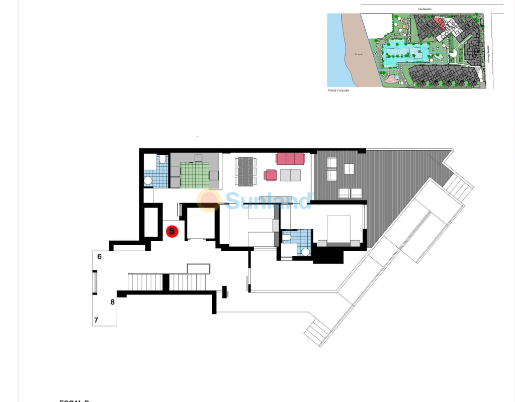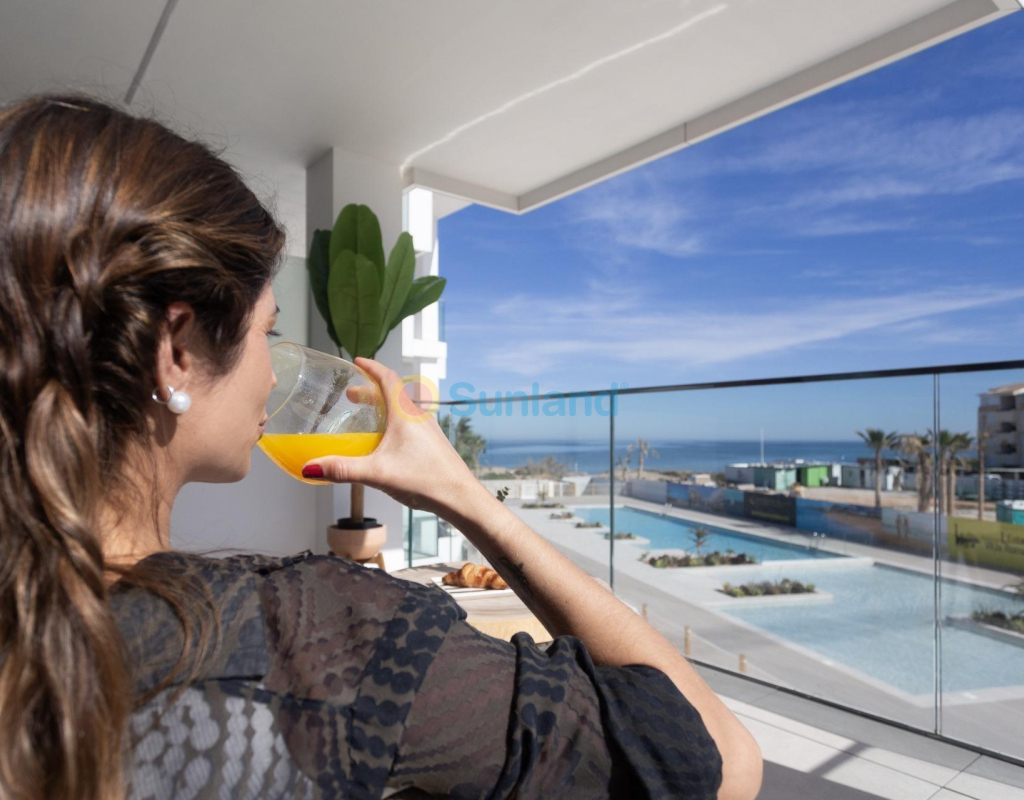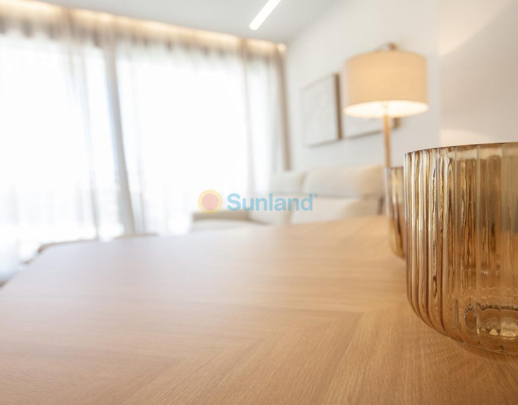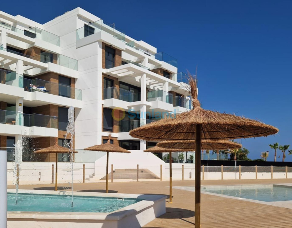 MIDDELHAVSBOLIG NOEN METER FRA SJØEN Eksklusivt kompleks av middelhavsbygg noen få meter fra sjøen. På stranden, foran L´Estanyo-stranden (7 km fra sentrum). Leiligheter og toppleiligheter med to og tre soverom, alle med havutsikt. Flotte fellesarealer med stort hageområde og to svømmebassenger, ett for barn. Med en uslåelig beliggenhet, i området kjent som L´Estanyo som gir navnet sitt til stranden, med rolig vann, et omfattende område med gylden sand og omgitt av alle fasiliteter og tjenester, samt fritids- og restaurantsteder.