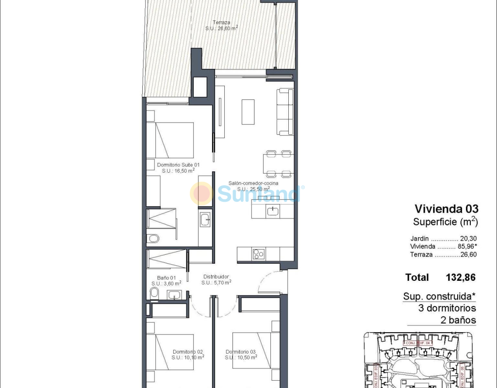 Eksklusive nybygg i Lo Marabú, Ciudad Quesada Moderne design og maksimal komfort i middelhavsomgivelser Oppdag dette spektakulære boligkomplekset i Lo Marabú, Ciudad Quesada, som består av 80 boliger med 2 og 3 soverom og 2 bad. Disse boligene er designet med en moderne og effektiv tilnærming, og har romslige terrasser, kryssventilasjon og høy kvalitet på finishen for å maksimere komfort og energieffektivitet. Boligene i første etasje har private hager, mens boligene i toppetasjen har private solarium med forhåndsinstallasjon for boblebad og utedusj. I tillegg har prosjektet felles svømmebassenger omgitt av hager, noe som skaper et perfekt miljø for avslapping og sosialt samvær. Funksjoner av høy kvalitet for en eksklusiv livsstil Alle boligene er designet for å tilby maksimal komfort, med materialer av topp kvalitet og moderne design: Store skyvevinduer i aluminium med termosperre. Motoriserte persienner for økt komfort. Climalit 4+4/14/4/4/4+4-vinduer for termisk og akustisk isolasjon. Pansret inngangsdør med sikkerhetslås. Fullt utstyrt kjøkken med elektriske apparater inkludert. Bad med møbler, speil og dusjvegger. 150L aerotermisk system for varmt vann. Komplett installasjon av luftkondisjonering med kanaler (varmt/kaldt). Belysning i alle rom allerede innlemmet. Parkeringsplass inkludert. Takket være den doble fasadedesignen tilbyr boligene naturlig kryssventilasjon, noe som gir kjølighet om sommeren og reduserer energiforbruket i klimaanlegg. Privilegert beliggenhet i Ciudad Quesada Lo Marabú er et eksklusivt boligområde i Ciudad Quesada (Rojales), omgitt av naturområder og med alle tjenester innen rekkevidde. Urbanisasjonen ligger svært nær saltsjøene i La Mata og Torrevieja, et ideelt miljø for å nyte naturen og forbedre ditt velvære. Fra ditt nye hjem har du rask tilgang til de viktigste severdighetene i området: Guardamar del Segura og Torrevieja strender - 10 km (15 minutter med bil). Alicante-Elche lufthavn (ALC) - 38 km (35 minutter med bil). Murcia-Corvera lufthavn (RMU) - 65 km (50 minutters kjøring). Prestisjefylte golfbaner - Mindre enn 5 km. Kjøpesentre og restauranter - bare noen få minutter unna. Rask tilgang til motorveiene AP-7 og N-332, som forbinder hele Costa Blanca. Et perfekt hjem for å nyte Middelhavet Med sin kombinasjon av moderne design, strategisk beliggenhet og eksepsjonelle naturomgivelser er disse boligene i Lo Marabu ideelle for permanent opphold, feriehus eller investeringseiendom. Ikke gå glipp av denne unike muligheten. Kontakt oss i dag for mer informasjon eller for å avtale en visning av ditt fremtidige hjem i Ciudad Quesada.