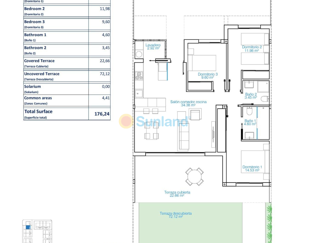 Luksuriøse turistleiligheter bare 150 meter fra Las Higuericas-stranden - Torre de la Horadada Eksklusivt nybygg med utleielisens inkludert Velkommen til et nytt boligkompleks i Torre de la Horadada, bare 150 meter fra den gylne sanden på Las Higuericas-stranden. Dette moderne prosjektet tilbyr 48 fullt møblerte turistleiligheter, alle levert med en korttidsutleielisens, noe som gjør det til en ideell investering for ferieutleie eller personlig nytelse. Du kan velge mellom 42 leiligheter med 3 soverom og 2 bad eller 6 leiligheter med 2 soverom og 2 bad, som alle er gjennomtenkt utformet for å maksimere komfort, stil og funksjonalitet. Planløsningene er designet for et kystnært liv Hver bolig er skreddersydd for å møte ulike livsstilsbehov: Leilighetene i første etasje har romslige private hager med utsikt over fellesområdene. Leilighetene i første etasje har store terrasser, noen med delvis havutsikt. Toppleilighetene har private solarier med havutsikt og utekjøkken, pergolaer, boblebad og kunstgress. Alle boligene har egen parkeringsplass og bod i undergrunnen, og første fase av prosjektet skal etter planen stå ferdig sommeren 2026. Fullt utstyrt og innflyttingsklart Disse boligene leveres fullt utstyrt for umiddelbar innflytting, inkludert: Komplette møbler og innredning i middelhavsstil Fullt utstyrt kjøkken med hvitevarer Uavhengige vaskerom Gulvvarme overalt Kanalisert klimaanlegg (varmt/kaldt) Sengetøy og husholdningsartikler Vinduer med elektriske skodder og Climasun termisk-akustisk glass, mens energieffektive aerotermiske systemer sørger for varmt vann. Fellesområder i feriestedstil for nytelse året rundt Anlegget har omfattende fellesfasiliteter, som f.eks: Utendørsbasseng for voksne og barn Lekeplass Anlagte grøntområder Velværeavdeling i kjelleren med oppvarmet innendørsbasseng, massasjestråler, badstue og et fullt utstyrt treningsstudio Hver eneste detalj er designet for å gi beboere og gjester en avslappende og luksuriøs middelhavsopplevelse. Førsteklasses beliggenhet med enkel tilgang til de største attraksjonene Denne uslåelige beliggenheten gir nærhet til det beste på Costa Blanca og Costa Cálida: Las Higuericas-stranden - 150 m Lo Romero golfbane - 10 km Dos Mares kjøpesenter - 11 km Havnen i San Pedro del Pinatar - 8 km Murcia lufthavn - 30 km Alicante lufthavn - 65 km Sikre din kystinvestering i dag Hvis du er på utkikk etter et feriehus eller en leieinvestering, er dette din mulighet til å eie en førsteklasses eiendom nær stranden i et av de mest ettertraktede områdene. Kontakt oss nå for å få mer informasjon eller for å planlegge et besøk i Torre de la Horadada!
