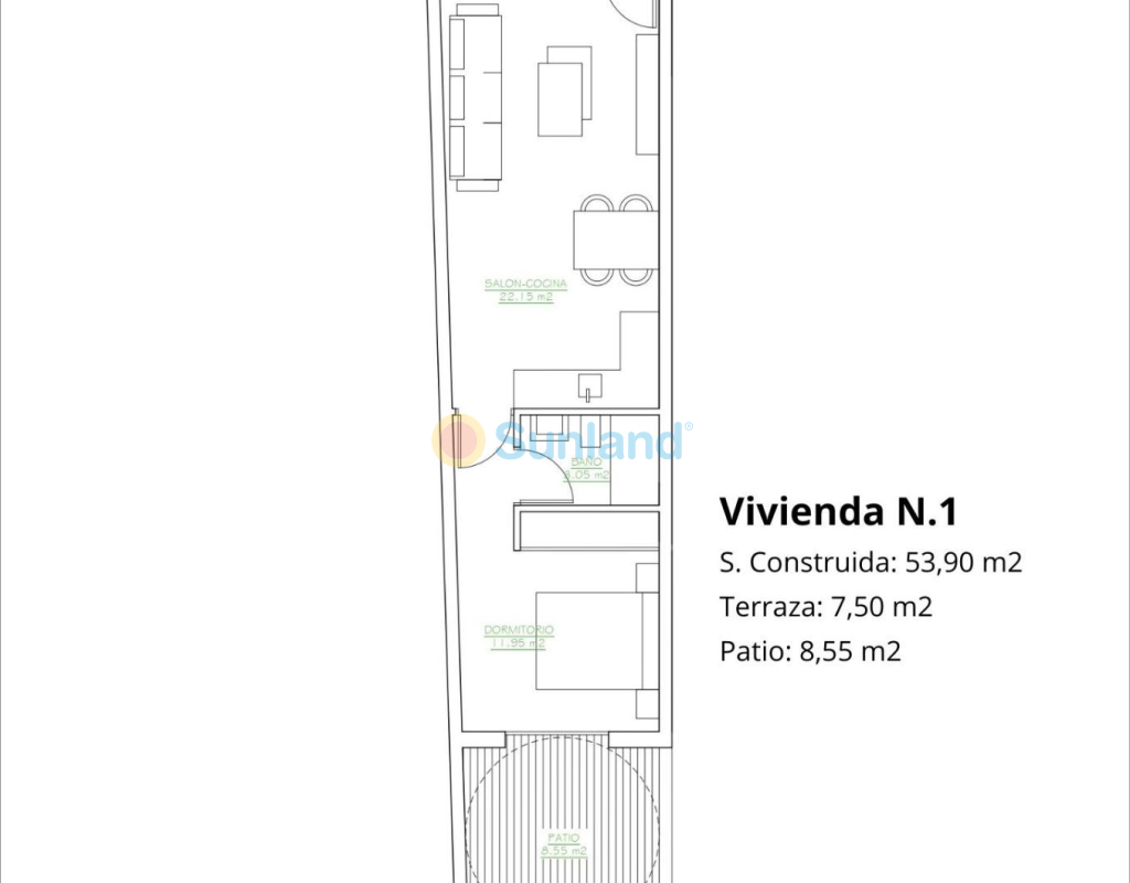 Nye bungalower i San Pedro del Pinatar - Modernitet og komfort noen få minutter fra sjøen Middelhavsliv i en privilegert beliggenhet Dette nye bungalowkomplekset ligger i San Pedro del Pinatar, en av de mest attraktive destinasjonene på Costa Cálida i Murcia. Dette komplekset er omgitt av alle fasiliteter, idrettsområder og flere golfbaner, og ligger bare 5 minutter fra strendene ved Middelhavet og Mar Menor, to av de mest populære kystferiestedene i det sørøstlige Spania. Eksklusive boliger med stil og funksjonalitet Komplekset består av 10 nybygde bungalower med 1 soverom og 1 bad, ideelt for de som er ute etter et økonomisk alternativ, og også 3 soverom og 2 bad, designet for familier eller de som ønsker mer plass. Hver eiendom inkluderer Privat parkeringsplass Fullt utstyrt kjøkken med hvitevarer inkludert Moderne bad med servantskap, belysning og skillevegger i glass Forhåndsinstallasjon for luftkondisjonering med kanaler Privat solarium i leilighetene i toppetasjen, med sommerkjøkken Felles svømmebasseng med avslapningsområde og solarium Moderne finish av høy kvalitet Bungalowene er designet med fokus på komfort og effektivitet, og har førsteklasses materialer og finish: Utvendig snekkerarbeid i mørkegrå lakkert aluminium. Motoriserte persienner og doble vinduer med luftkammer Innvendig og utvendig LED-belysning Sikkerhetsdør ved inngangen Vannpost på terrasse og solarium Viktige avstander: Dos Mares kjøpesenter: 3 km Mar Menor strender: 3,5 km Lo Romero golfbane: 11 km Murcia-Corvera lufthavn: 39 km Alicante lufthavn: 78 km San Pedro Marina: 4 km San Pedro del Pinatar - livskvalitet året rundt Denne byen er kjent for sine naturlige gjørmebad, sin fredelige atmosfære og sin moderne infrastruktur for sport og nautikk. Det milde klimaet året rundt og de gode kommunikasjonene gjør byen til et ideelt sted for både opphold og ferie. Lo Pagan-området byr på et pulserende sosialt liv med restauranter, butikker og underholdning for alle aldre. Oppdag ditt nye hjem på Costa Cálida Disse bungalowene representerer en utmerket investeringsmulighet eller en perfekt ferie ved Middelhavet. Kontakt oss i dag og avtal en visning for å oppdage ditt fremtidige hjem i San Pedro del Pinatar.