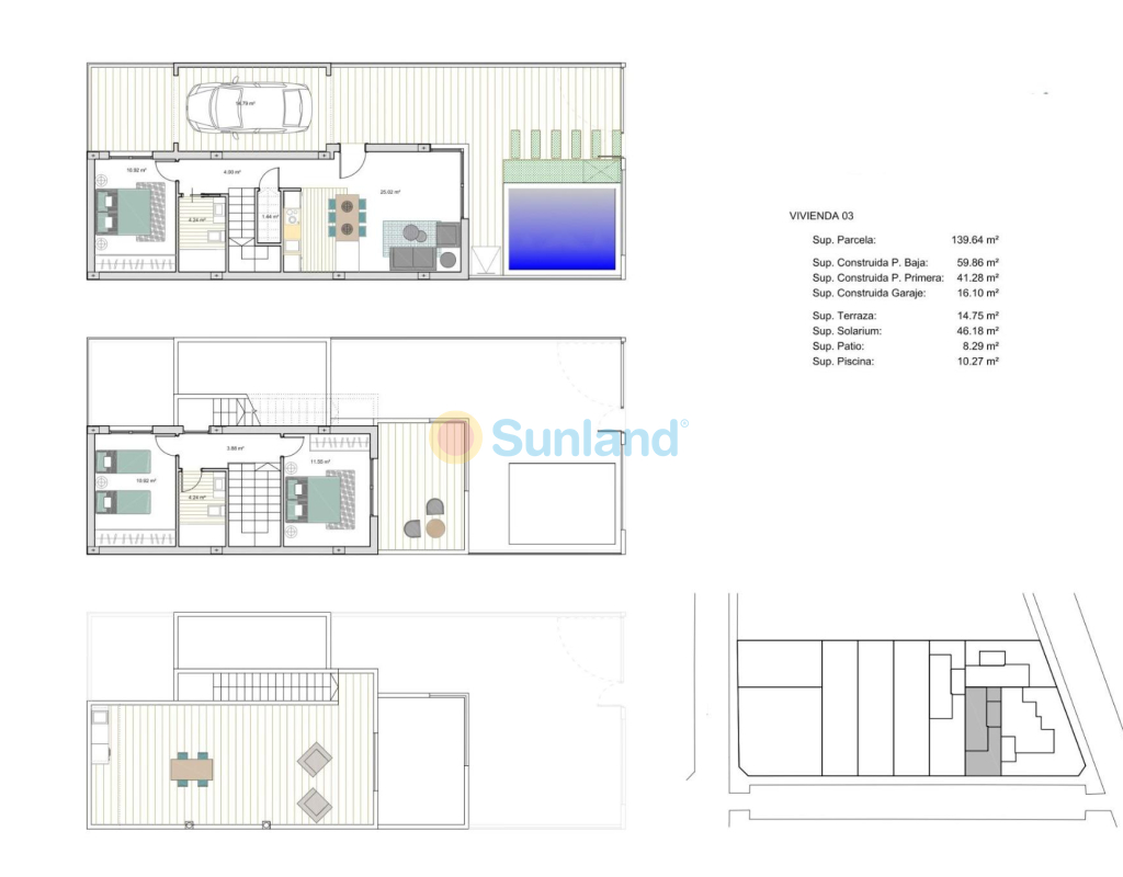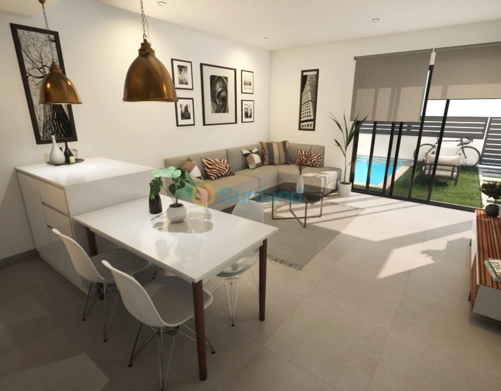 Nybyggede villaer med privat basseng i Los Alcázares, Costa Cálida Eksklusive moderne villaer bare 700 meter fra sjøen Oppdag dette eksklusive boligområdet med 9 nybyggede villaer i Los Alcázares, en av de mest verdsatte byene på Costa Cálida på grunn av sin nærhet til havet, sin avslappede atmosfære og sitt utmerkede tilbud av tjenester. Hver villa har privat svømmebasseng, separat garasje og er designet for å tilby komfort, funksjonalitet og moderne stil. Duplex-design med solarium og ideell orientering Boligene er fordelt på to etasjer og har 3 soverom og 2 bad, fullt utstyrt åpen kjøkkenløsning, stor stue, terrasse og hage i første etasje, terrasse i andre etasje og privat solarium i overbygd etasje med sommerkjøkken. Takket være de forskjellige orienteringene kan du nyte solen hele dagen, hele året. Høy kvalitet Disse villaene er designet med materialer av høyeste kvalitet og tilbyr: Privat svømmebasseng med utendørs dusj Kjøkken utstyrt med hvitevarer: kjøleskap, opphengt ovn, innebygd mikrobølgeovn, keramisk komfyr, avtrekksvifte og oppvaskmaskin Innebygde skap med skuffer Komplette bad med møbler, speil med lys og dusjvegger Forhåndsinstallert klimaanlegg Installasjon av 2 solcellepaneler Sommekjøkken på solterrassen Overbygd parkeringsplass på tomten Uovertruffen beliggenhet på Costa Cálida Disse boligene ligger bare 700 meter fra strendene ved Mar Menor, og gir deg muligheten til å nyte en unik natur med rolige og varme vann. Los Alcázares kombinerer en avslappet livsstil med alle tjenester i nærheten: supermarkeder, restauranter, sportsfasiliteter og helsestasjoner. Ideelt både som fast bolig og feriebolig. Avstander til interessante steder Mar Menor-stranden: 0,7 km Golfbaner (Roda, La Serena, Mar Menor Golf): mellom 3 og 10 km Murcia internasjonale lufthavn: 30 km Cartagena: 22 km Dos Mares kjøpesenter: 13 km Los Alcázares marina: 2 km Din sol- og ro-oase ved Middelhavet Disse villaene tilbyr den perfekte kombinasjonen av moderne design, privatliv, komfort og en privilegert beliggenhet. Kontakt oss i dag og bestill en visning for å oppdage ditt neste hjem ved sjøen.