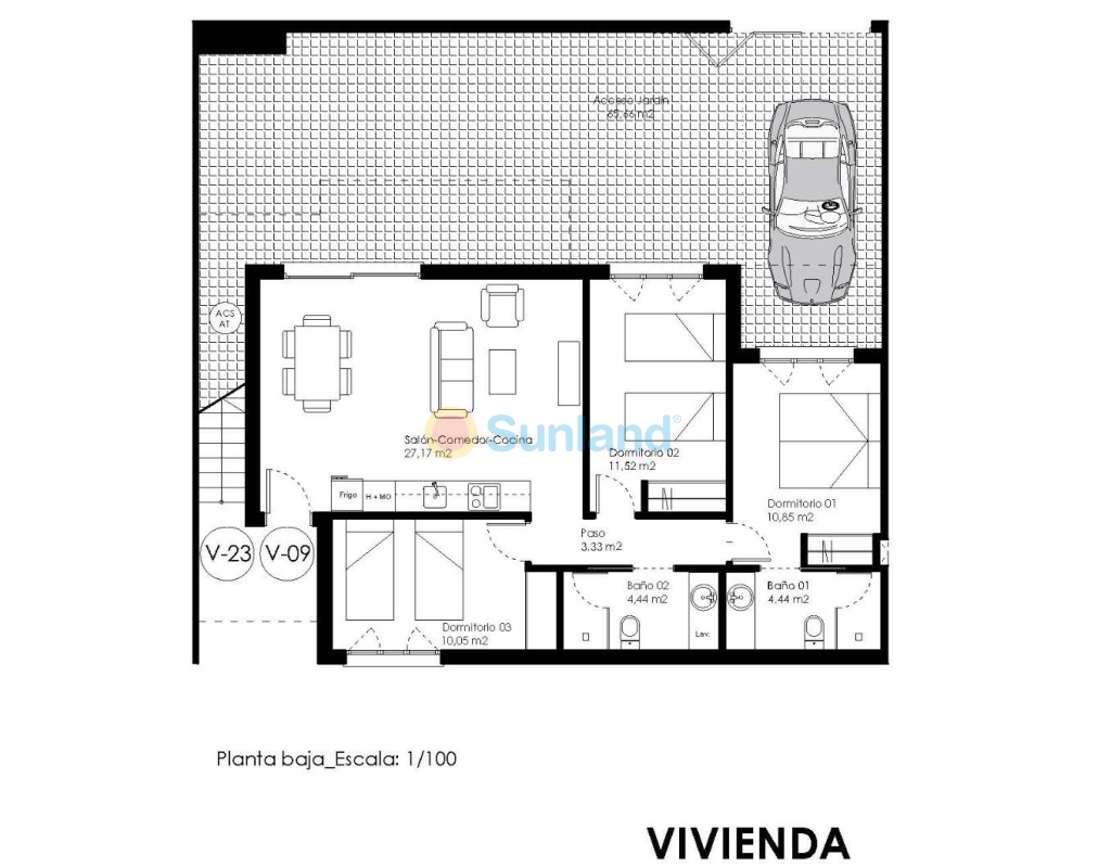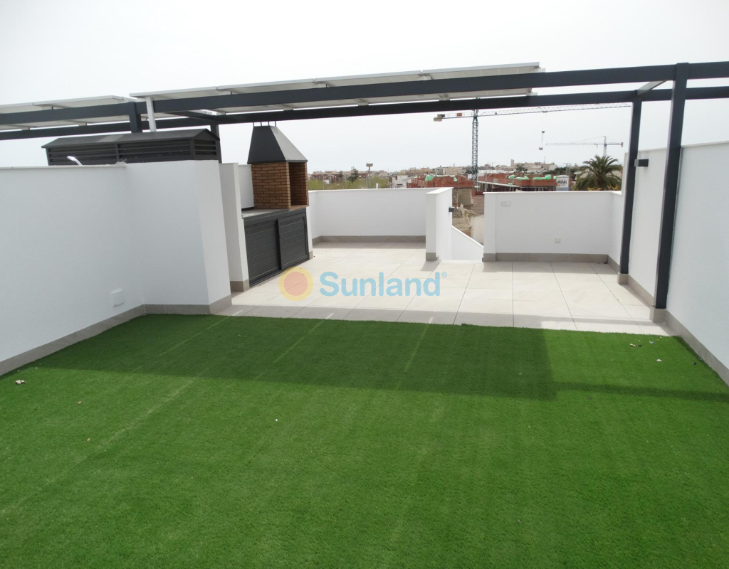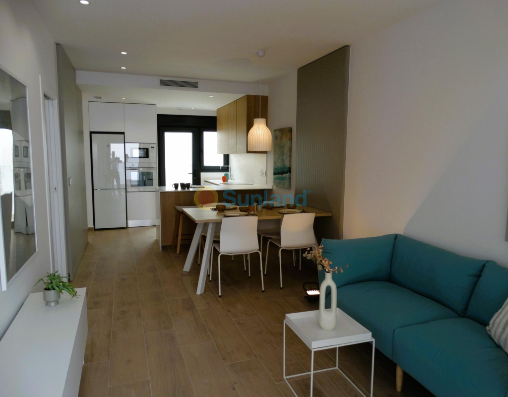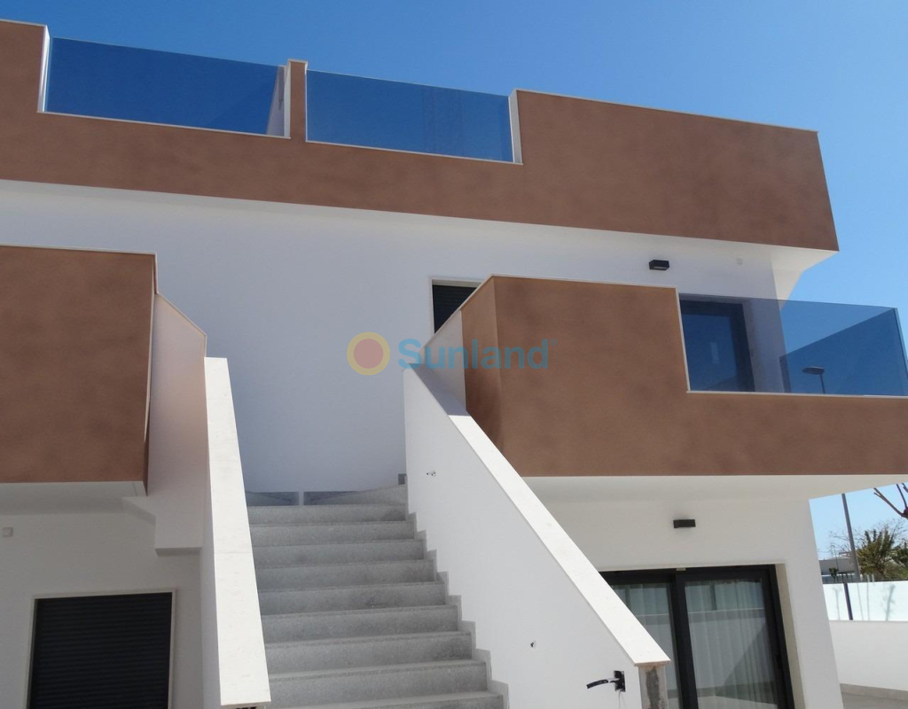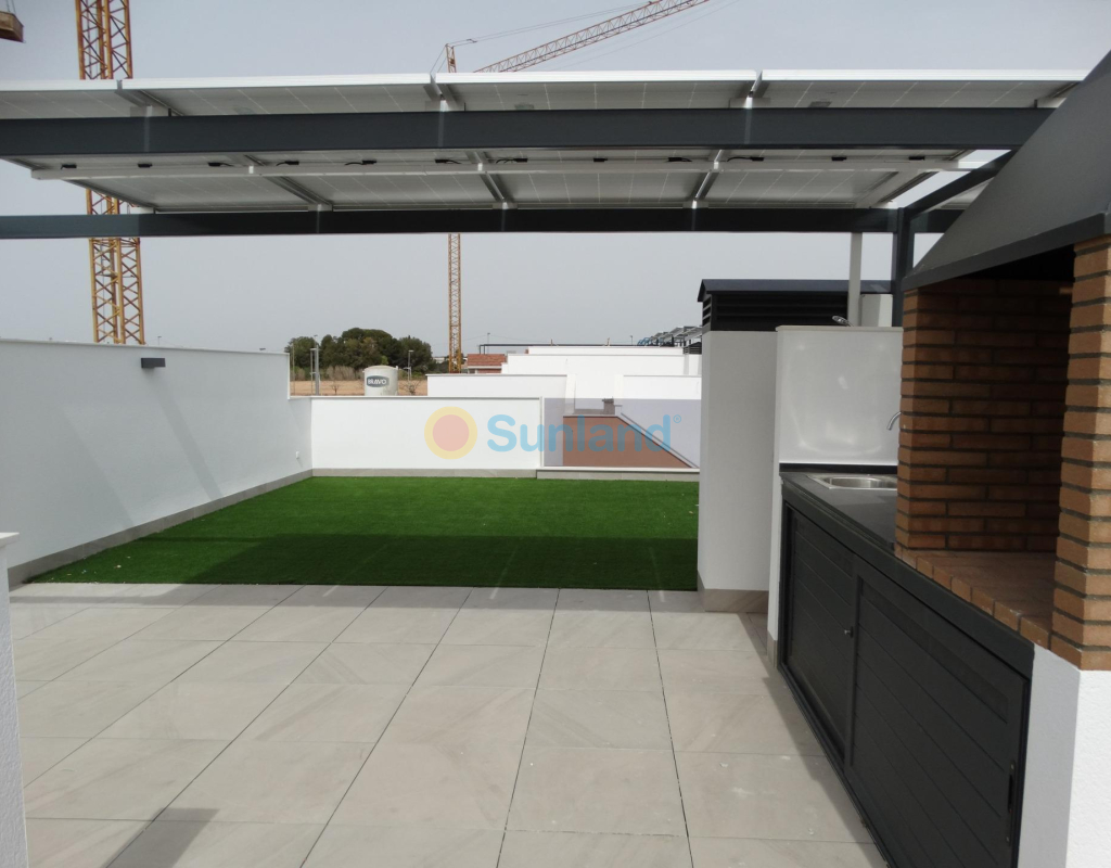 Nybyggede bungalower med solterrasse eller hage i Pilar de la Horadada Moderne boligområde på den sørlige Costa Blanca Dette nye bungalowanlegget ligger i den sjarmerende kommunen Pilar de la Horadada og tilbyr en komfortabel middelhavsstil i et av de mest attraktive områdene på Costa Blanca. Pilar de la Horadada er kjent for sin hyggelige atmosfære, sitt utmerkede klima og sine lange sandstrender som Las Higuericas og Mil Palmeras, som er ideelle for familieaktiviteter eller vannsport. Fordeling og boligtyper Komplekset består av 28 moderne bungalows tilgjengelig i versjoner med 2 og 3 soverom, fordelt på: Første etasje med privat hage Øverste etasje med privat solterrasse og tilhørende bod Mange av boligene har sørvendt beliggenhet, noe som garanterer utmerket lysinnfall, og har utsikt over felles svømmebasseng eller den tilstøtende parken. Funksjonelle og velutstyrte rom Hver bolig er designet med store og funksjonelle rom: Integrert amerikansk kjøkken med stor stue/spisestue Innebygde skap Privat terrasse i hver enhet Parkeringsplass inkludert I tillegg har boligene: Varmt vann via aerotermisk system Forhåndsinstallert klimaanlegg Utvendig PVC-karpenter med doble vinduer og aluminiumsgardiner Baderomsmøbler inkludert Fellesområder og natur Boligkomplekset har et felles svømmebasseng omgitt av grønne områder, perfekt for å nyte solen og roen. Bare 4 km fra Playa de las Higuericas, lett tilgjengelig til fots eller på sykkel via den hyggelige promenaden som fører til havet. Utmerket beliggenhet og gode forbindelser Beliggenheten til boligkomplekset gir tilgang til alle typer tjenester og severdigheter: Supermarkeder, butikker, barer og restauranter mindre enn 1 km unna Golfbaner som Lo Romero 6 km unna Dos Mares kjøpesenter 11 km unna Strendene Mil Palmeras og Torre de la Horadada bare 5 minutter unna Murcia (Corvera) flyplass 40 km unna Alicante flyplass 65 km Ditt nye liv i solen Dette boligområdet i Pilar de la Horadada er en utmerket mulighet til å nyte middelhavslivet i en moderne og godt beliggende bolig. Kontakt oss i dag for mer informasjon eller for å avtale en visning og ta steget mot ditt nye hjem på Costa Blanca.