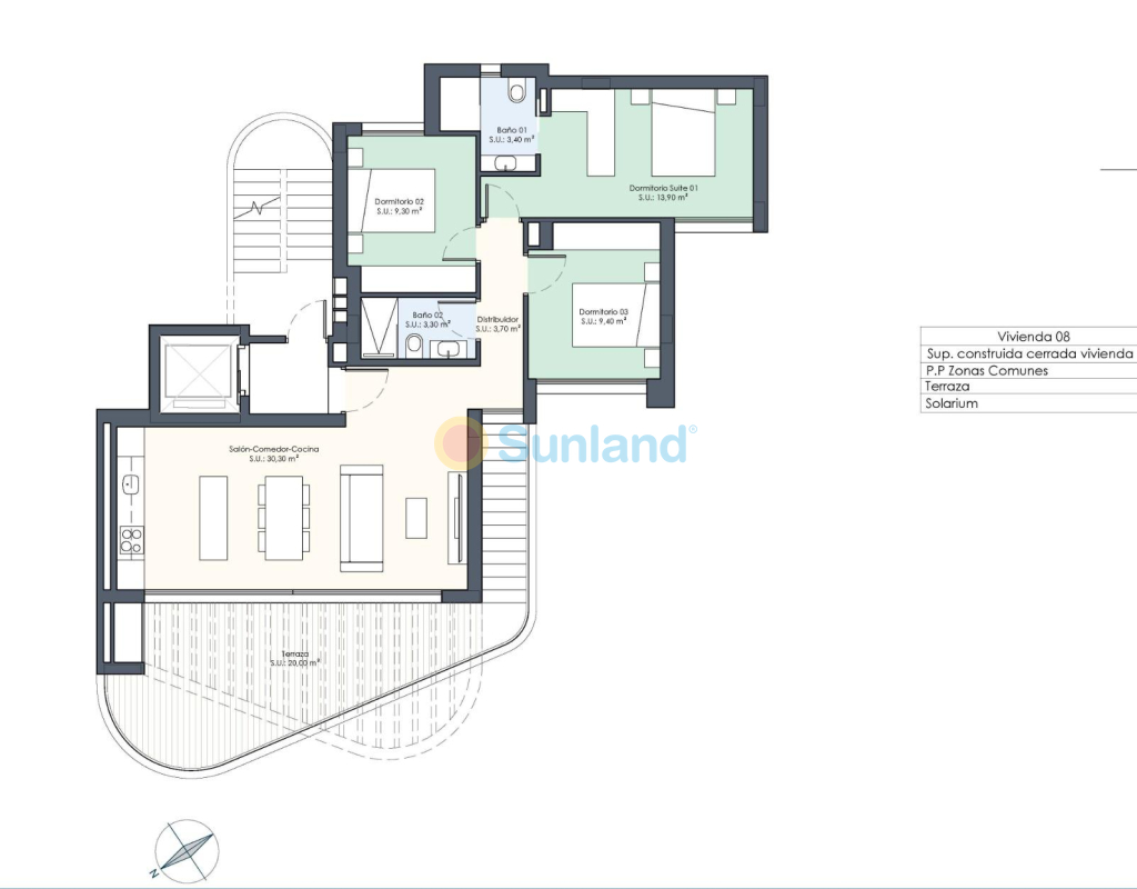 Nybyggede leiligheter med utsikt over elven i Guardamar del Segura Eksklusivt boligområde med bare 9 moderne boliger Dette nye boligprosjektet i Guardamar del Segura, Alicante, tilbyr en unik mulighet til å bo i en privilegert beliggenhet med uhindret utsikt over elven Segura og Vega Baja. Bygningen består av bare 9 eksklusive boliger, en per etasje, noe som garanterer privatliv, ro og komfort. Romslige boliger med store terrasser Hver leilighet har 3 soverom og 2 bad, i tillegg til store uteområder: Første etasje med privat hage på 120 m² Mellometasjer med terrasser på 18 m² Penthouse med terrasse og privat solarium på 78 m² Disse eiendommene er designet i en moderne stil, ideell både for permanent opphold og ferier på Costa Blanca. Førsteklasses utstyr og kvaliteter Boligene leveres med utmerket finish, designet for å tilby komfort og effektivitet: Pansret inngangsdør Bad med hengende servanter, speil, veggmontert dusjkar og glassvegg Aerotermisk system for varmt vann (100 liter) Parkeringsplass inkludert i prisen Ideell beliggenhet nær sjøen og alle tjenester Boligområdet ligger bare 1,4 km fra stranden og få minutter fra havnen i Guardamar, den naturlige pinjeskogen og et livlig shoppingområde med supermarkeder, restauranter og viktige tjenester. Omtrentlige avstander til viktige steder: Guardamar sentrum: 1,2 km (15 minutters gange) Nærmeste strand: 1,4 km Yachthavn: 1 km Reina Sofía-parken: 1,5 km La Marquesa golfbane (Ciudad Quesada): 9 km Habaneras kjøpesenter (Torrevieja): 13 km Alicante-Elche flyplass: 33 km Guardamar har også direkte bussforbindelse til Alicante og Torrevieja, noe som gjør det enkelt å komme seg rundt uten egen bil. Ditt nye hjem i Guardamar venter på deg Enten det er som investering, permanent bolig eller feriehus, representerer dette boligområdet en unik mulighet i et av de mest etterspurte områdene på Costa Blanca. Kontakt oss nå og sikre deg din leilighet med utsikt i Guardamar del Segura.