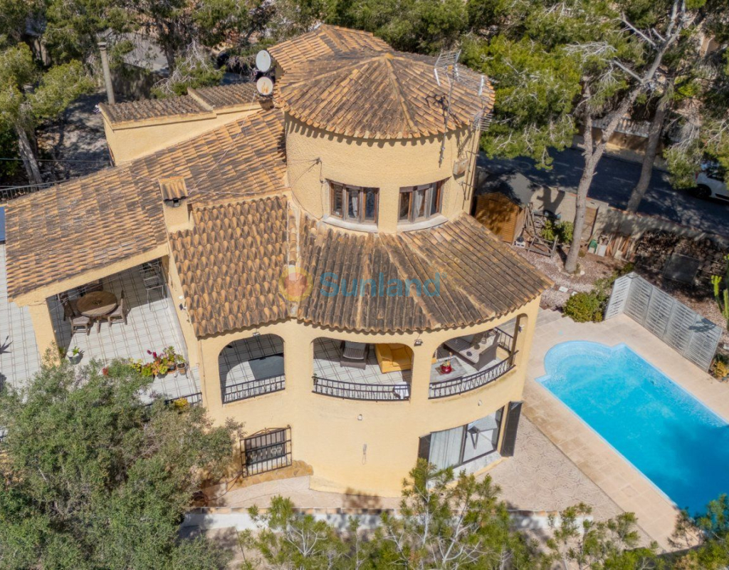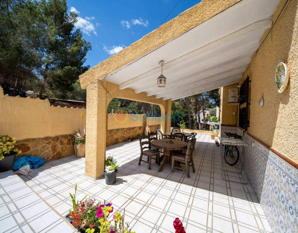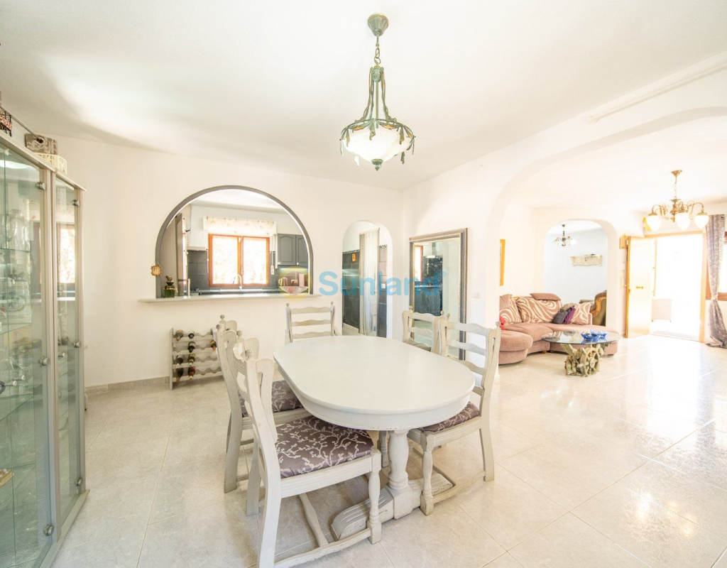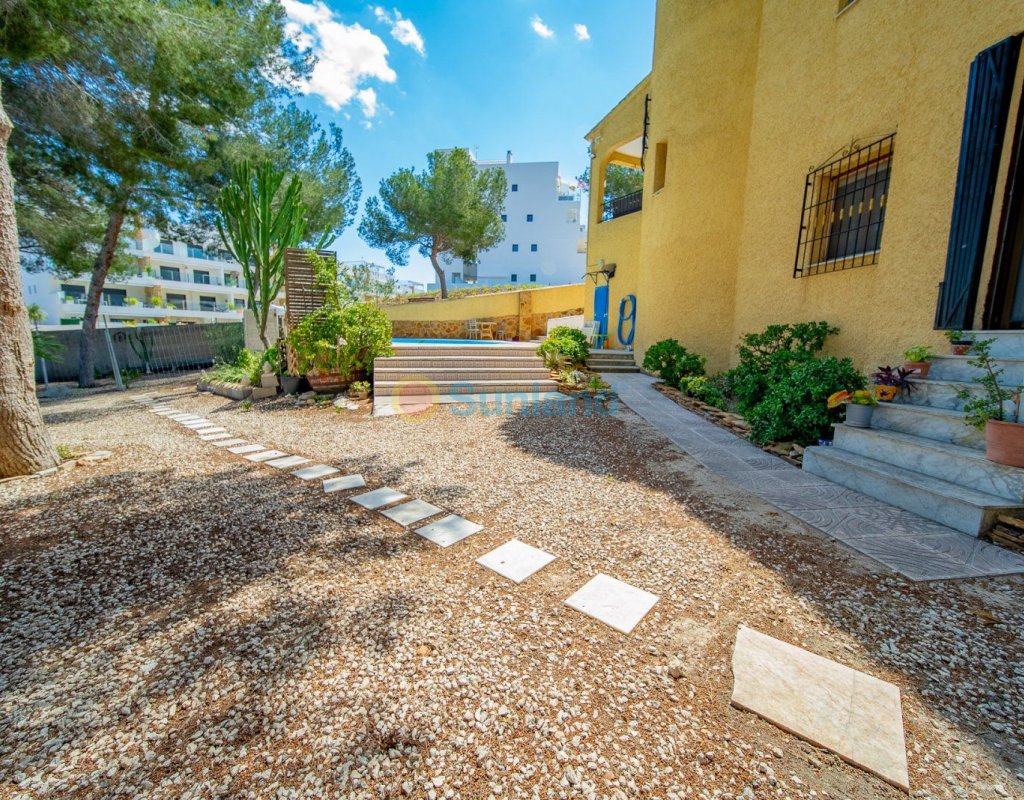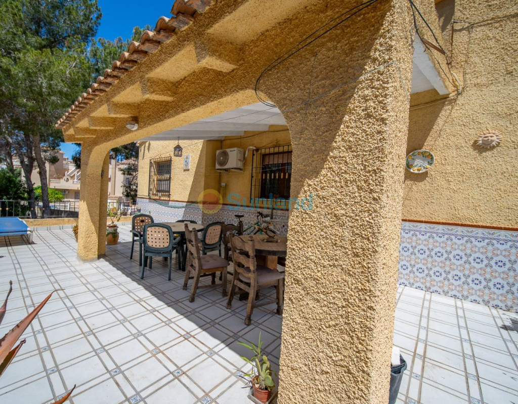 Mediterransk villa på tomt på 800 m² – Las Filipinas, Orihuela Costa. Romslig villa i tradisjonell stil beliggende i et rolig boligområde, nær golfbanene Campoamor og Villamartín. Stor tomt, privat basseng og plass til hele familien. Kvaliteter: • Tomt på 800 m² • 250 m² bygget • 6 soverom • 3 bad + 1 toalett • Kjøkken med spisestue • Stue med peis • Klimaanlegg • Bod • Privat svømmebasseng • Fullt møblert • Sørvendt • Byggeår: 1980