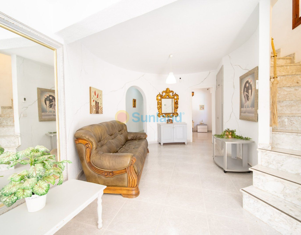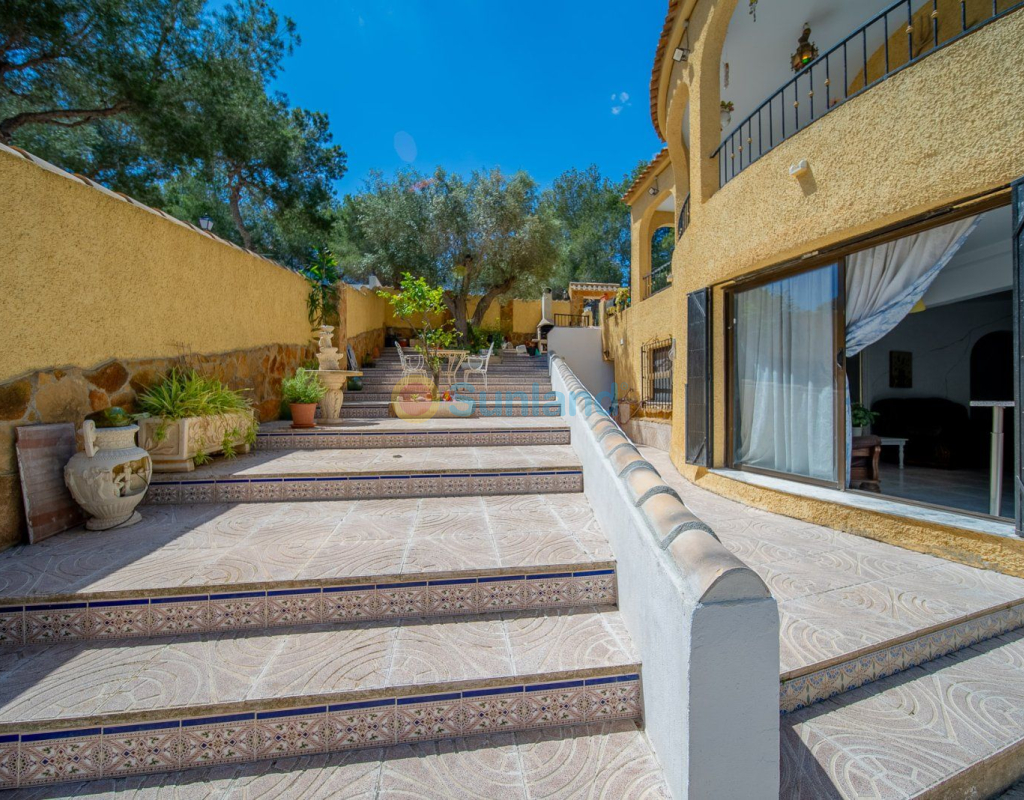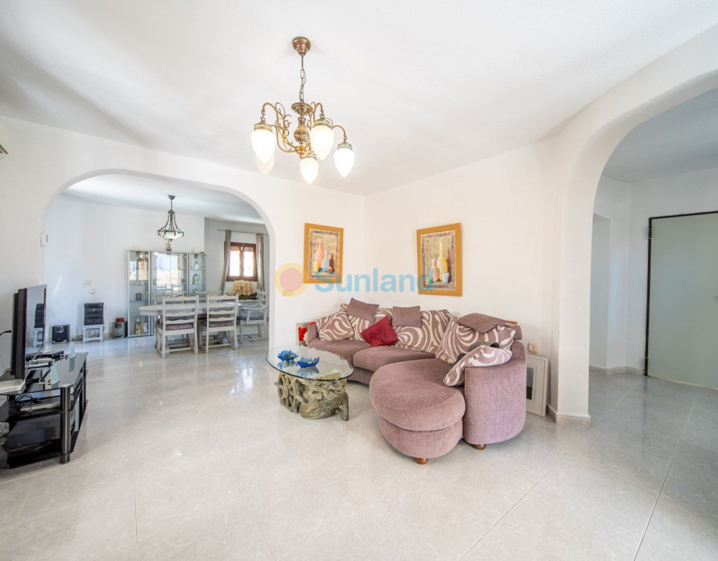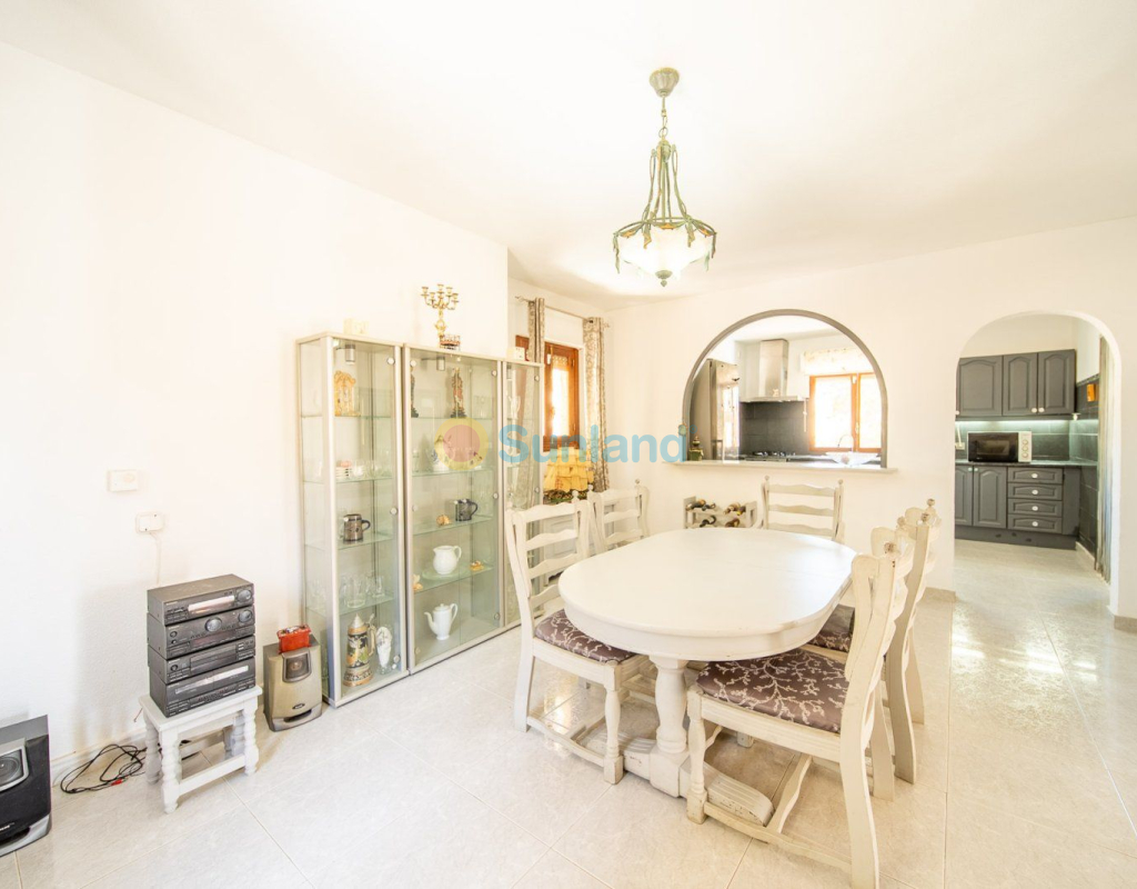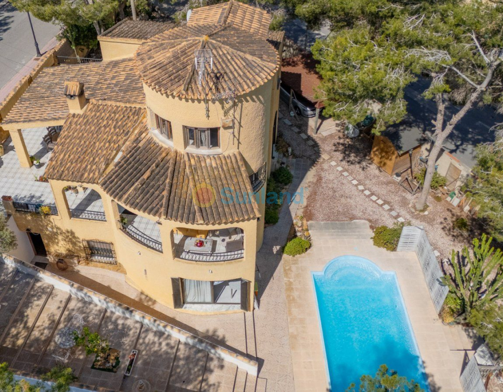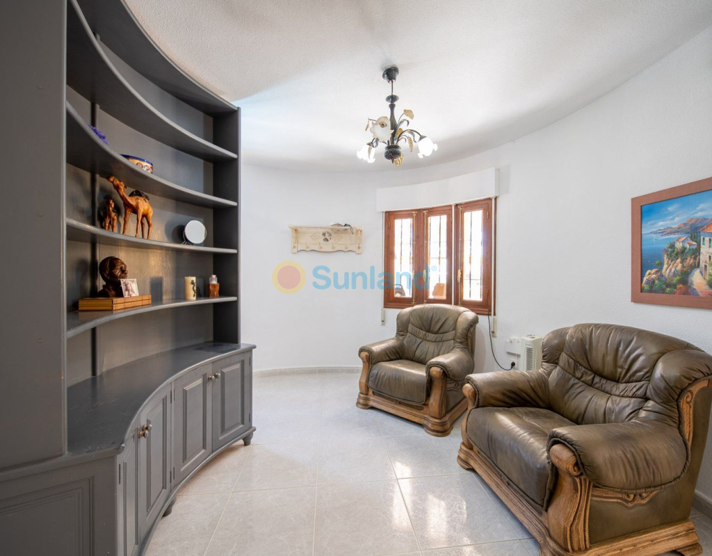 Mediterransk villa på tomt på 800 m² – Las Filipinas, Orihuela Costa. Romslig villa i tradisjonell stil beliggende i et rolig boligområde, nær golfbanene Campoamor og Villamartín. Stor tomt, privat basseng og plass til hele familien. Kvaliteter: • Tomt på 800 m² • 250 m² bygget • 6 soverom • 3 bad + 1 toalett • Kjøkken med spisestue • Stue med peis • Klimaanlegg • Bod • Privat svømmebasseng • Fullt møblert • Sørvendt • Byggeår: 1980