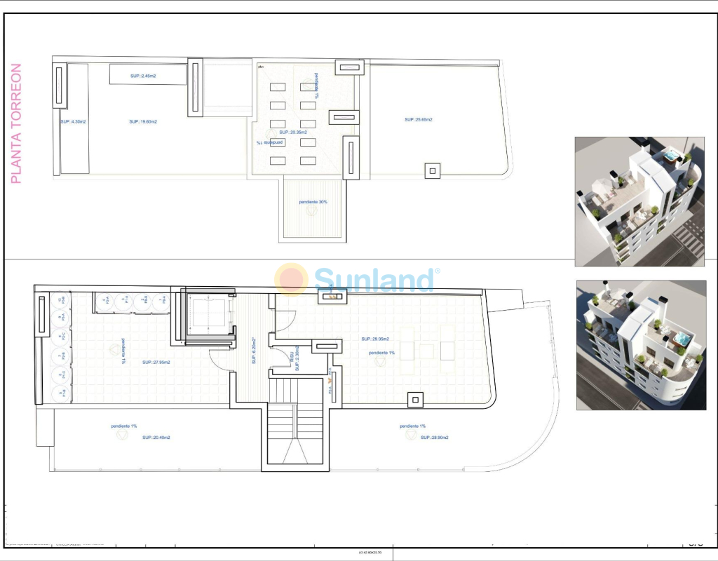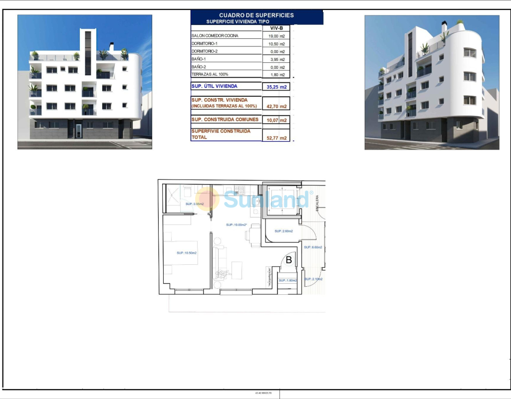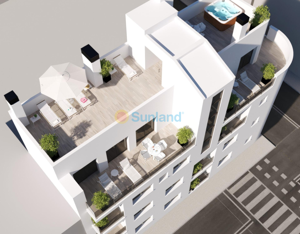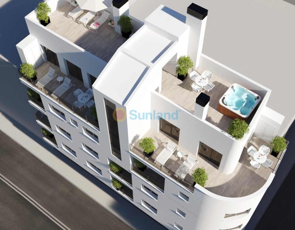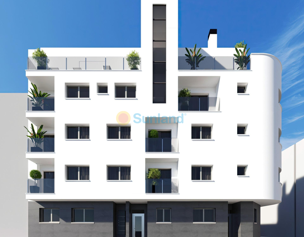 NYBYGDE LEILIGHETER I TORREVIEJA Nybygde leiligheter og toppleiligheter i Torrevieja. Nybygg med 12 eksklusive leiligheter og toppleiligheter med 1 og 2 soverom, 1 og 2 bad, med åpen kjøkken- og stueplan, store garderobeskap, fullt utstyrte bad med gulvvarme. Alle leilighetene har motoriserte persienner i aluminium. Pansret inngangsdør med sikkerhetslås. Forhåndsinstallasjon av klimaanlegg og oppvarming. Nybygget boligkompleks med moderne design og høy kvalitet har et vakkert felles solarium. Torrevieja er en spansk by i Alicante-provinsen på Costa Blanca. Den er kjent for sitt typiske middelhavsklima og sin kystlinje. Byen har strandpromenader med feriesteder langs sandstrendene. Det lille hav- og saltmuseet har utstillinger om byens fiske- og salthistorie. Inne i byen ligger naturparken Lagunas de La Mata-Torrevieja med stier og to salte laguner, den ene rosa og den andre grønn. Alicante flyplass ligger 40 minutter unna og Murcia flyplass ca. 1 time unna.