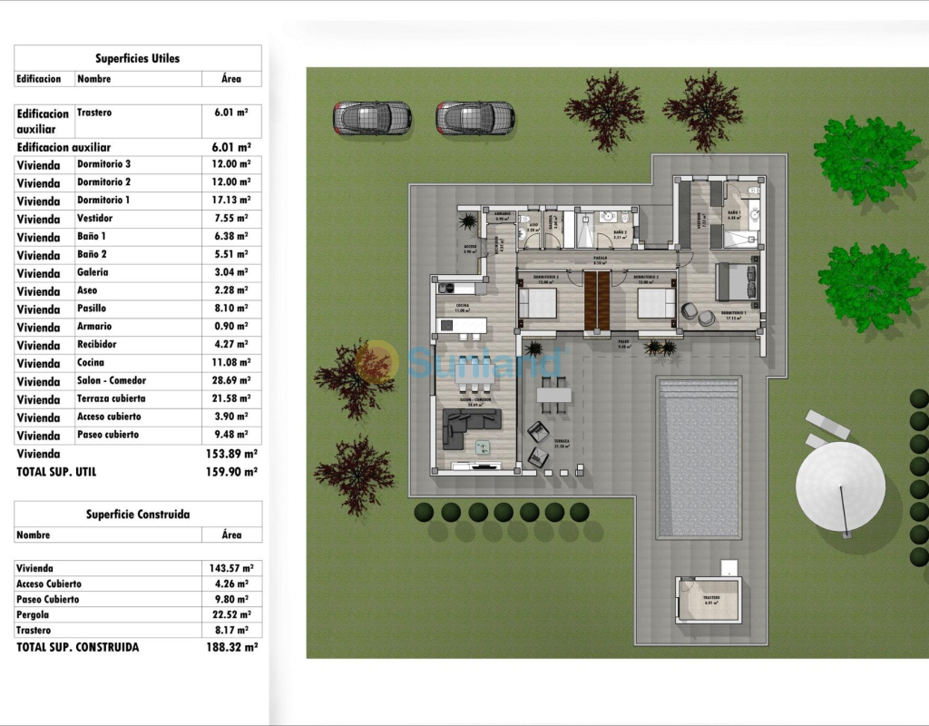 Nybyggede villaer i Aspe. Nybyggede villaer med flere modeller å velge mellom, med 2, 3 eller 4 soverom, på 1 eller 2 etasjer og bygget med plate eller struktur: avhengig av modell og valgt tomt, vil den nøyaktige prisen bli beregnet. Alle villaene bygges på rustikke tomter på over 10 000 m2, hvorav ca. 2500 m2 vil bli inngjerdet. Villaene har åpen kjøkkenløsning med stue, innebygde skap, privat svømmebasseng, veranda, bod og utendørs parkeringsplass. Det er flere tomter å velge mellom. For prisberegningen er det lagt til grunn en tomt til en pris av 77 500 euro (hvis du velger en annen tomt, betales differansen i henhold til prisen på denne). Prosjektet er selvbygg, og levering skjer ca. 12 måneder etter at byggetillatelsen er gitt. Hvis du er ute etter et rolig miljø, nær typiske spanske landsbyer langt fra turistmassene, omgitt av fjell, med en svært stor tomt og ca. 30 minutter fra havet, er dette huset for deg. Aspe er en typisk spansk landsby med alle daglige tjenester, omgitt av fjell og med flere naturområder i nærheten hvor du kan gå på tur eller sykle på terrengsykkel. Ligger 25 km fra stranden, 9 km fra Elche og ca. 20 km fra Alicante flyplass.