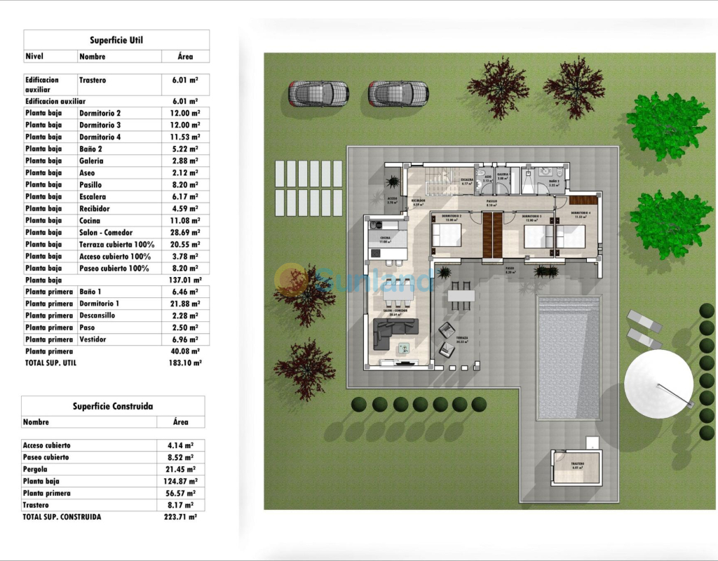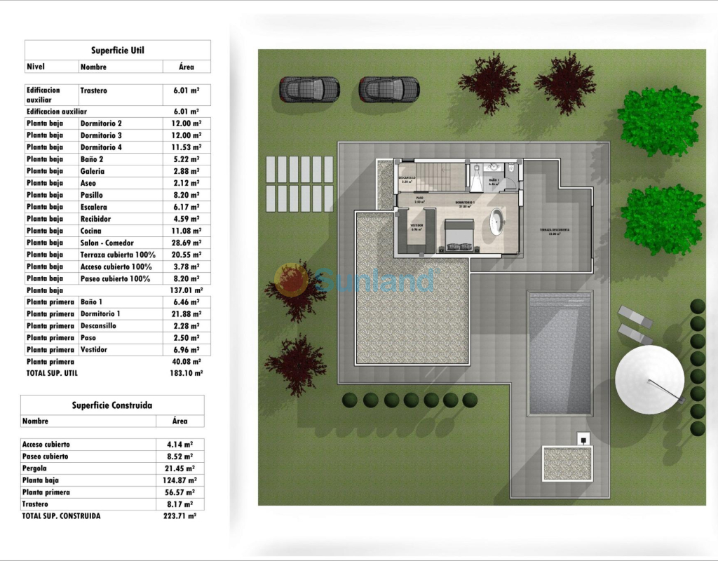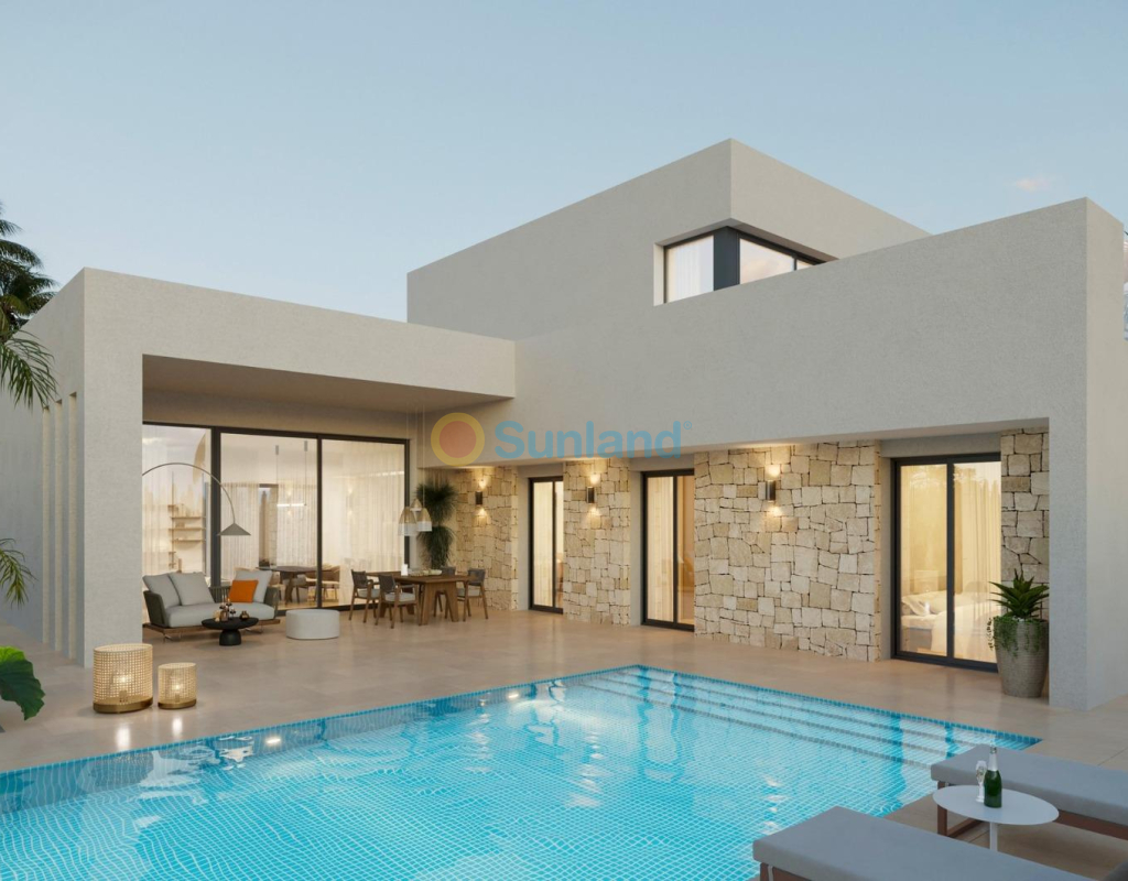 Nybyggede villaer i Aspe. Nybyggede villaer med flere modeller å velge mellom, med 2, 3 eller 4 soverom, på 1 eller 2 etasjer og bygget med plate eller struktur: avhengig av modell og valgt tomt, vil den nøyaktige prisen bli beregnet. Alle villaene bygges på rustikke tomter på over 10 000 m2, hvorav ca. 2500 m2 vil bli inngjerdet. Villaene har åpen kjøkkenløsning med stue, innebygde skap, privat svømmebasseng, veranda, bod og utendørs parkeringsplass. Det er flere tomter å velge mellom. For prisberegningen er det lagt til grunn en tomt til en pris av 77 500 euro (hvis du velger en annen tomt, betales differansen i henhold til prisen på denne). Prosjektet er selvbygg, og levering skjer ca. 12 måneder etter at byggetillatelsen er gitt. Hvis du er ute etter et rolig miljø, nær typiske spanske landsbyer langt fra turistmassene, omgitt av fjell, med en svært stor tomt og ca. 30 minutter fra havet, er dette huset for deg. Aspe er en typisk spansk landsby med alle daglige tjenester, omgitt av fjell og med flere naturområder i nærheten hvor du kan gå på tur eller sykle på terrengsykkel. Ligger 25 km fra stranden, 9 km fra Elche og ca. 20 km fra Alicante flyplass.
