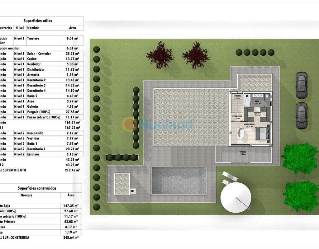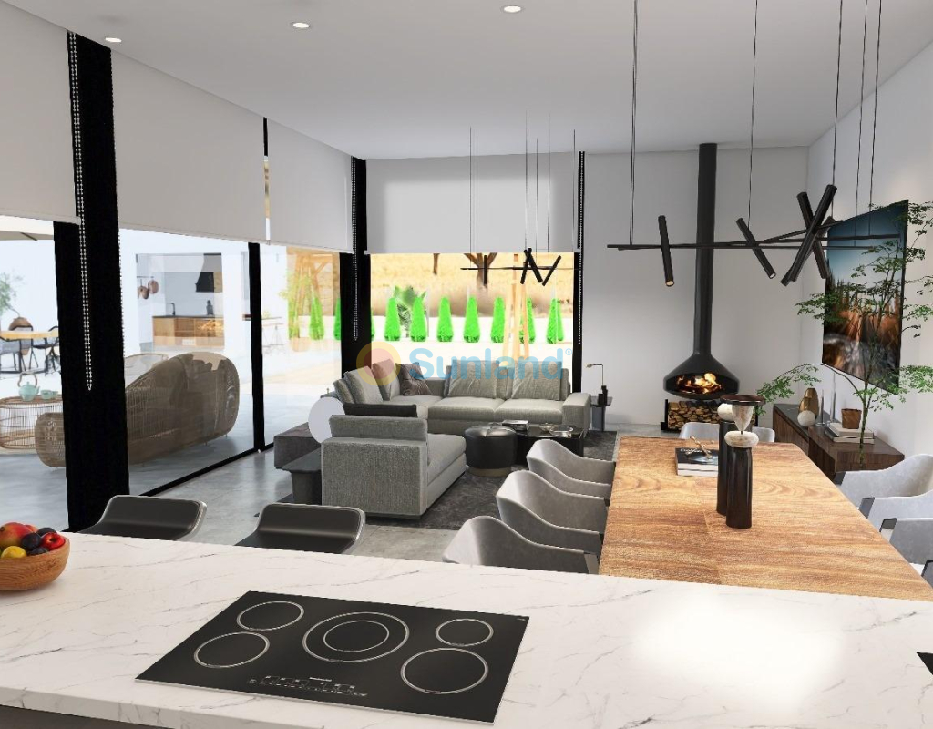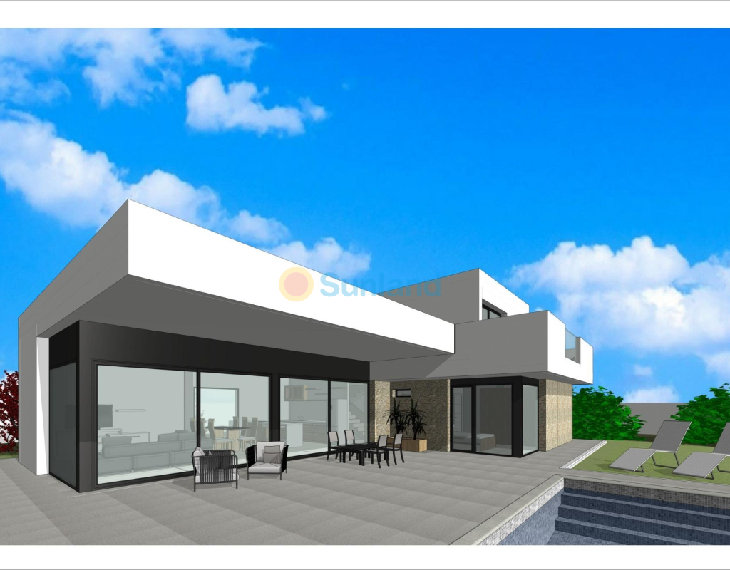 Nybyggede villaer i Aspe. Nybyggede villaer med flere modeller å velge mellom, med 2, 3 eller 4 soverom, på 1 eller 2 etasjer og bygget med plate eller struktur: avhengig av modell og valgt tomt, vil den nøyaktige prisen bli beregnet. Alle villaene bygges på rustikke tomter på over 10 000 m2, hvorav ca. 2500 m2 vil bli inngjerdet. Villaene har åpen kjøkkenløsning med stue, innebygde skap, privat svømmebasseng, veranda, bod og utendørs parkeringsplass. Det er flere tomter å velge mellom. For prisberegningen er det lagt til grunn en tomt til en pris av 77 500 euro (hvis du velger en annen tomt, betales differansen i henhold til prisen på denne). Prosjektet er selvbygg, og levering skjer ca. 12 måneder etter at byggetillatelsen er gitt. Hvis du er ute etter et rolig miljø, nær typiske spanske landsbyer langt fra turistmassene, omgitt av fjell, med en svært stor tomt og ca. 30 minutter fra havet, er dette huset for deg. Aspe er en typisk spansk landsby med alle daglige tjenester, omgitt av fjell og med flere naturområder i nærheten hvor du kan gå på tur eller sykle på terrengsykkel. Ligger 25 km fra stranden, 9 km fra Elche og ca. 20 km fra Alicante flyplass.