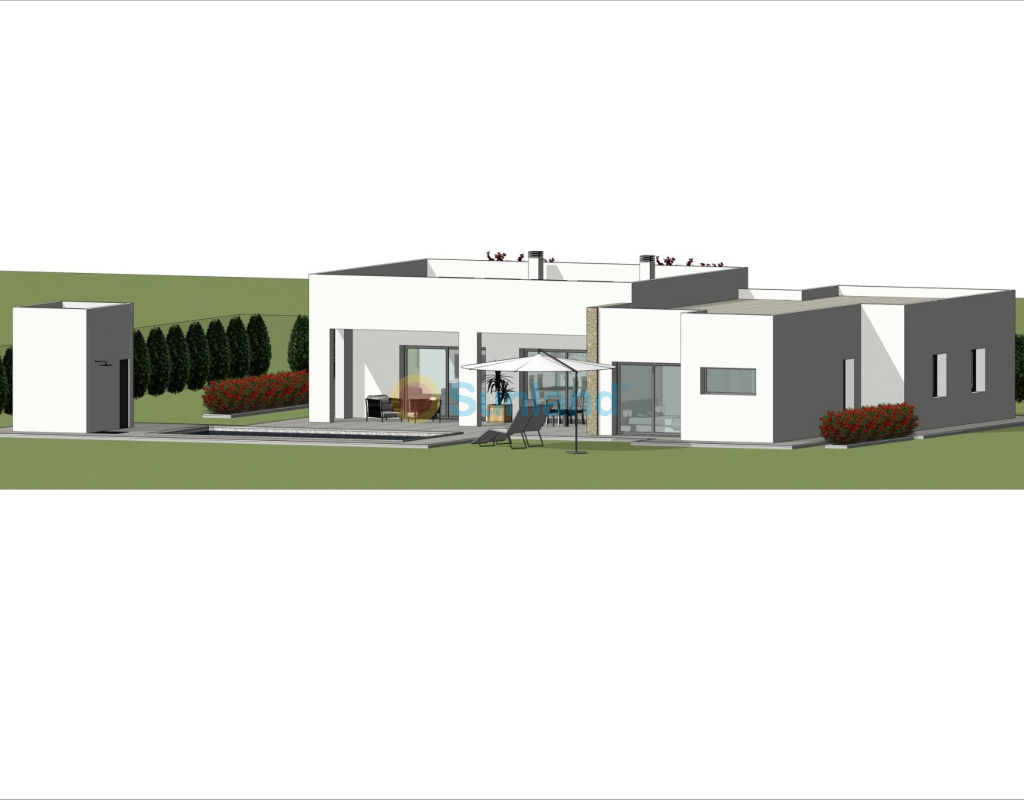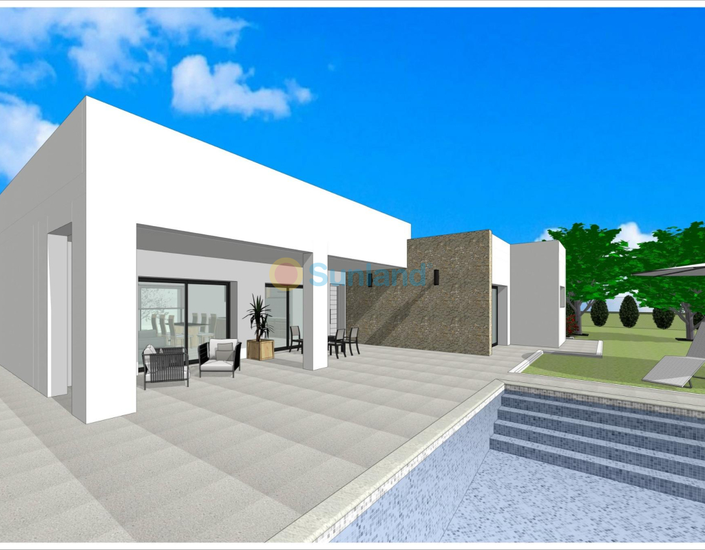Nybyggede villaer i Aspe. Nybyggede villaer med flere modeller å velge mellom, med 2, 3 eller 4 soverom, på 1 eller 2 etasjer og bygget med plate eller struktur: avhengig av modell og valgt tomt, vil den nøyaktige prisen bli beregnet. Alle villaene bygges på rustikke tomter på over 10 000 m2, hvorav ca. 2500 m2 vil bli inngjerdet. Villaene har åpen kjøkkenløsning med stue, innebygde skap, privat svømmebasseng, veranda, bod og utendørs parkeringsplass. Det er flere tomter å velge mellom. For prisberegningen er det lagt til grunn en tomt til en pris av 77 500 euro (hvis du velger en annen tomt, betales differansen i henhold til prisen på denne). Prosjektet er selvbygg, og levering skjer ca. 12 måneder etter at byggetillatelsen er gitt. Hvis du er ute etter et rolig miljø, nær typiske spanske landsbyer langt fra turistmassene, omgitt av fjell, med en svært stor tomt og ca. 30 minutter fra havet, er dette huset for deg. Aspe er en typisk spansk landsby med alle daglige tjenester, omgitt av fjell og med flere naturområder i nærheten hvor du kan gå på tur eller sykle på terrengsykkel. Ligger 25 km fra stranden, 9 km fra Elche og ca. 20 km fra Alicante flyplass.