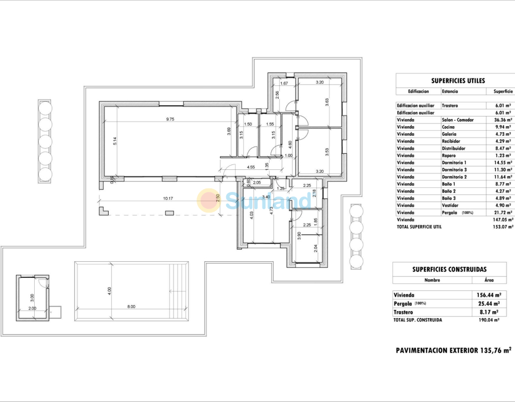 - Bebygget: 190m2