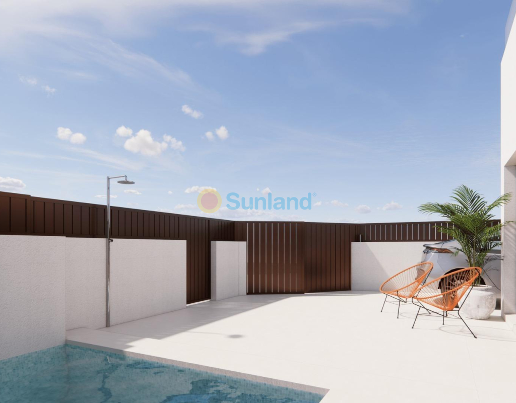 Moderne nybyggede villaer med privat basseng (valgfritt) i Pilar de la Horadada Eksklusivt prosjekt med 4 moderne boliger Denne begrensede kolleksjonen av fire nybygde tomannsboliger og rekkehus ligger i et fredelig område i Pilar de la Horadada, bare noen få minutter fra sentrum og 3 km fra Middelhavsstrendene. Hver bolig er designet med fokus på komfort, stil og energieffektivitet, og tilbyr romslig oppholdsrom med mulighet for privat basseng og parkering på tomten. Elegant design og utendørs liv Hver villa har tre soverom og to komplette bad, gjennomtenkt fordelt over et lyst og åpent interiør. En privat hage og et romslig solarium på taket med forhåndsinstallert utekjøkken gir perfekte rom for å nyte solskinnet på Costa Blanca hele året. Det valgfrie private bassenget gir ekstra komfort for avslapning eller underholdning. Høykvalitetsutstyr og finish Boligene er utstyrt med moderne materialer og finish for å sikre varig kvalitet og komfort: Pansret inngangsdør for ekstra sikkerhet Utvendig snekring i PVC med termisk isolasjon for bedre varmeisolasjon Fullt møblerte bad med dusjvegger Gulvvarme på badene for ekstra komfort Aerotermisk system for varmt vann Forhåndsinstallert sentralvarme med kanaler i hele boligen Bo i Pilar de la Horadada: En by full av sjarm Pilar de la Horadada er en tradisjonell spansk by kjent for sin vennlige atmosfære og utmerkede infrastruktur. Byen tilbyr alt du trenger for dagliglivet, inkludert supermarkeder, restauranter, butikker og sjarmerende torg. En kort spasertur bringer deg til det livlige sentrum, hvor du kan nyte lokale tapas, kulturelle arrangementer og ukentlige markeder. Nær strender, golf og tjenester Torre de la Horadada og Mil Palmeras strender: 3 km (5 minutter) La Zenia Boulevard kjøpesenter: 15 km (15 minutter) Lo Romero Golf: 7 km (10 minutter) Corvera Murcia flyplass: 40 km (40 minutter) Alicante internasjonale flyplass: 55 km (55 minutter) Sikre deg din eiendom på Costa Blanca nå Enten du er på utkikk etter en helårsbolig, en feriebolig eller en investeringseiendom, tilbyr disse nye boligene i Pilar de la Horadada en uovertruffen beliggenhet, moderne fasiliteter og middelhavsstil. Kontakt oss i dag for mer informasjon eller for å avtale et besøk.