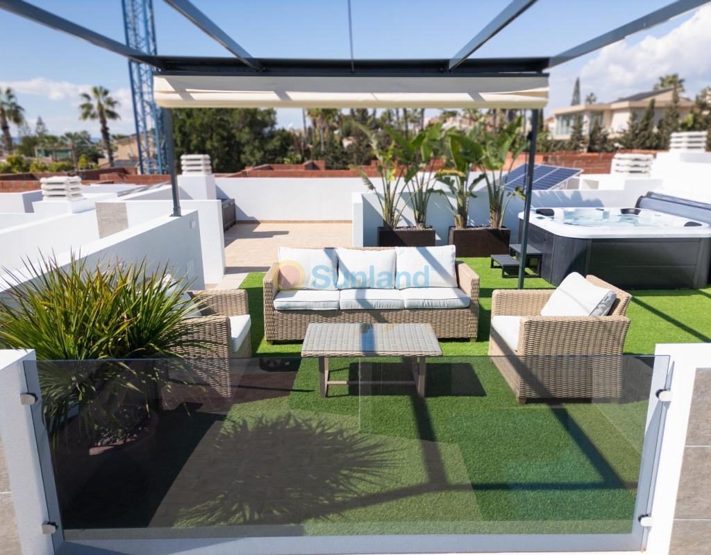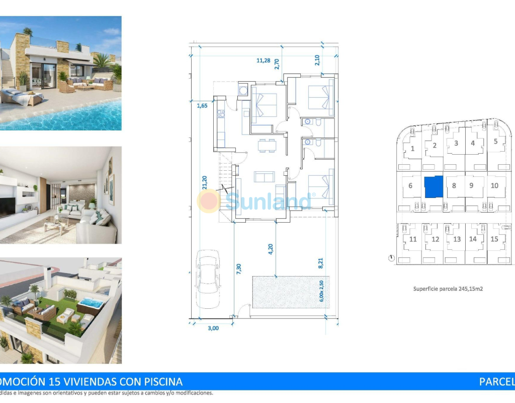 Nybyggede villaer med privat basseng i Oasis de la Marina, Costa Blanca Moderne boliger i et rolig område nær stranden Oppdag dette eksklusive prosjektet med 15 frittliggende og tomannsboliger, beliggende i boligområdet Oasis de La Marina, i kommunen San Fulgencio. Disse elegante boligene med moderne design er bygget i ett plan og ligger bare 4,5 km fra de spektakulære strendene på Costa Blanca. Et ideelt miljø både for fast bo og ferieopphold, i et rolig, men godt tilknyttet område. Funksjonell planløsning og design for maksimal komfort Hver villa har en praktisk og lys planløsning, designet for å nyte den middelhavsinspirerte livsstilen: 3 soverom med innebygde garderober 2 komplette bad med møbler og glassvegger Fullt utstyrt åpen kjøkkenløsning med avtrekksvifte og osmoseanlegg Romslig stue med direkte tilgang til hagen Privat solterrasse Privat hage med svømmebasseng og solterrasse Parkeringsplass på tomten Fullt utstyrt og energieffektiv Disse villaene er designet med materialer av høy kvalitet og energieffektive løsninger: Klimaanlegg med varme og kjøling Installasjon av solcellepaneler LED-belysning innendørs og utendørs Elektriske persienner i aluminium Privat svømmebasseng i hver bolig Privat parkering på tomten Naturskjønne omgivelser og nærhet til tjenester Oasis de La Marina er et rolig boligområde omgitt av natur, mellom byene San Fulgencio, La Marina og Guardamar del Segura. Beliggenheten tilbyr nærhet til alle nødvendige tjenester for hverdagen, samt fritids- og sportsaktiviteter. Nærliggende severdigheter: Nærmeste strand: 4,5 km La Marquesa golfbane: 6 km Habaneras kjøpesenter (Torrevieja): 15 km Alicante flyplass: 29 km Murcia flyplass: 66 km Rask tilgang til riksvei N-332 Opplev middelhavslivet i et privilegert miljø Disse villaene er en utmerket mulighet for deg som søker ro, privatliv og nærhet til sjøen. Kontakt oss i dag for mer informasjon eller for å avtale en visning av disse eksklusive nybyggene i San Fulgencio.
