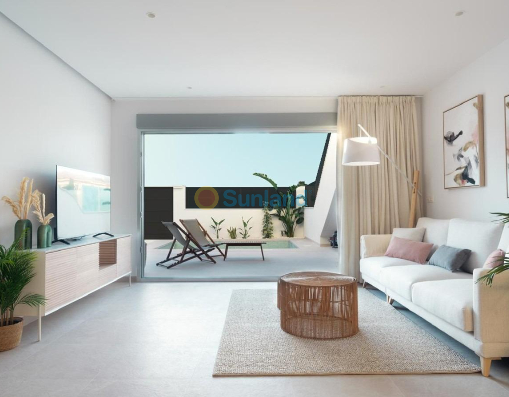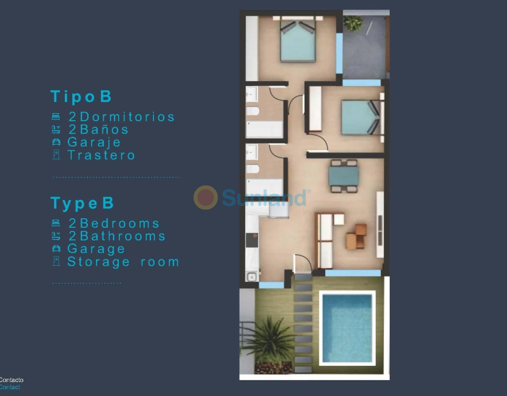 Nybyggede bungalower i San Pedro del Pinatar – Luksus og natur ved sjøen Førsteklasses beliggenhet nær strender og naturreservat Oppdag et eksklusivt boligkompleks med nybygde bungalower i et av de mest privilegerte områdene i San Pedro del Pinatar, Murcia. Bare 1,8 km fra strendene ved Middelhavet og kun 500 meter fra det beskyttede regionale parkområdet Salinas y Arenales, tilbyr dette boligprosjektet en unik livsstil omgitt av natur, ro og alle nødvendige tjenester. Komplekset ligger i et fredelig boligområde vendt mot en stor park, med kort gangavstand til supermarkeder, butikker, kafeer, sentrum og lokal busstasjon, som gir gode forbindelser til nærliggende byer som Torrevieja og Cartagena. Moderne middelhavsstil – bungalower med hage eller solarium Dette boutique-prosjektet tilbyr bungalower med 2 og 3 soverom med to forskjellige planløsninger: Boliger i første etasje med privat hage Boliger i øverste etasje med romslige private solarium Hver bolig er designet for å maksimere komfort, naturlig lys og åpne rom, ideelt for både permanent opphold og ferieboliger. Alle boliger har privat parkeringsplass og bod, og har tilgang til et stort felles svømmebasseng og et fullt utstyrt treningsstudio. Som en valgfri oppgradering kan beboerne legge til et privat svømmebasseng, noe som ytterligere forbedrer eksklusiviteten og gleden ved å bo ute. Høy kvalitet og tilpasningsmuligheter Disse nybygde bungalowene er bygget etter de høyeste standarder og tilbyr: Aluminiumsvinduer med termisk isolasjon og elektriske persienner for komfort og energieffektivitet Gulvvarme i baderommene for varme hele året Forhåndsinstallert sentralvarme i hele boligen Moderne kjøkken med eksklusive overflater og muligheter for å tilpasse farger og materialer Romslige, lyse interiører med funksjonelle planløsninger og optimal orientering En by som tilbyr mer San Pedro del Pinatar er en perle ved kysten av Costa Cálida, som ligger mellom Mar Menor og Middelhavet. Stedet er kjent for sine unike saltørkener, sandstrender og tradisjonelle fiskeriet. Området har også: Terapeutiske gjørmebad ved kysten av Mar Menor Familievennlige strender med rolig, grunt vann Naturlige turstier for fugletitting og friluftsliv Livlige lokale markeder, kulturelle arrangementer og utmerkede restauranter Nærhet til flyplasser: Murcia internasjonale lufthavn ligger 35 km unna og Alicante lufthavn ligger 75 km unna Golfbaner innen 10 til 15 km, inkludert Lo Romero Golf og Roda Golf Resort Kjøpesentre som Dos Mares ligger bare 3 km unna Sikre deg din middelhavsdream i dag Disse nybygde bungalowene tilbyr den perfekte blandingen av moderne design, enestående beliggenhet og kvalitetsfinish. Enten du er på utkikk etter et permanent hjem, en feriebolig eller en investeringsmulighet, er dette din sjanse til å nyte middelhavslivet i San Pedro del Pinatar. Kontakt oss nå for å be om mer informasjon eller avtale en visning.