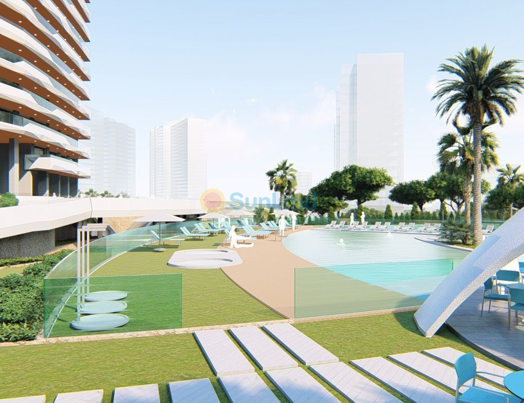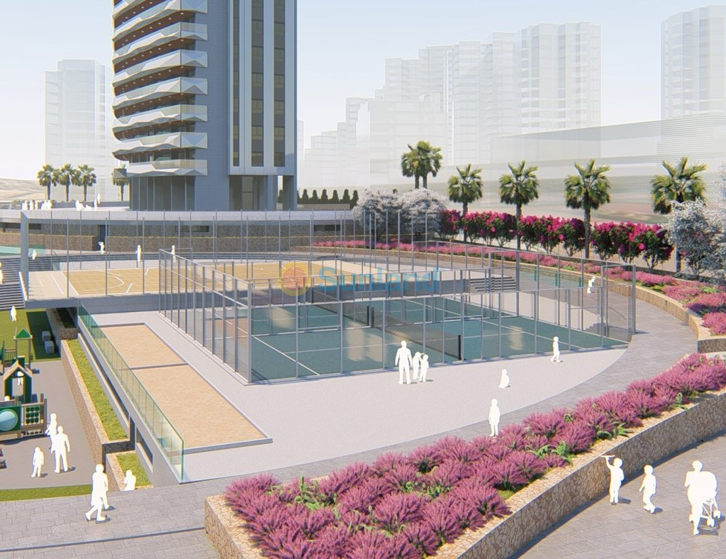 NY KONSTRUKSJONSBOLIG I PLAYA PONIENTE DE BENIDORM !!! Nytt havutsikt med 220 boliger med 2, 3 og 4 soverom i et glasstårn med romslige terrasser med utsikt. Utstyr: Hvitevarer: Hette, ovn og berøringsstyrt induksjonstopp, kjøleskap, oppvaskmaskin, vaskemaskin, forhåndsinstallasjon for tørketrommel og mikrobølgeovn. Dusjskjerm med sikkerhetsglass, Speil, Belysning med LED -spotter Klimaanlegg Aerotermi Fellesområdene er utstyrt med et voksenbasseng, et barnebasseng, et spa, boblebad, et avslappingsområde, et lekeområde for barn, to padlebaner, en garasje, etc. Alicante -kysten er kjent for sine milde temperaturer og mer enn 300 soldager i året. Byen Benidorm er kjent for sin unike hotell-, sol- og strandinfrastruktur, kombinert med et bredt utvalg av tradisjonelle spanske, baskiske eller Valenciansk mat samt andre internasjonale varianter tilpasset enhver smak og lyst til å eksperimentere. Den har forskjellige golfbaner bare 5 minutter fra Sierra Cortina, Golf Bahia, tre fornøyelsesparker og flere kjøpesentre.