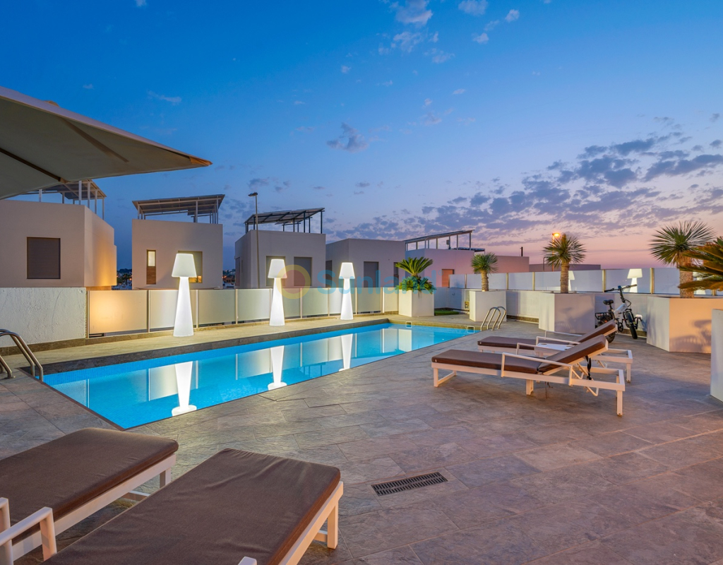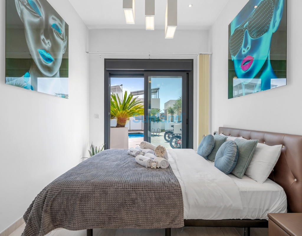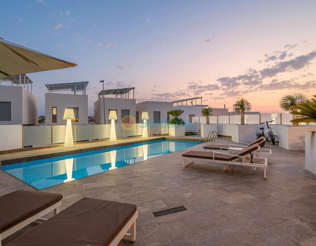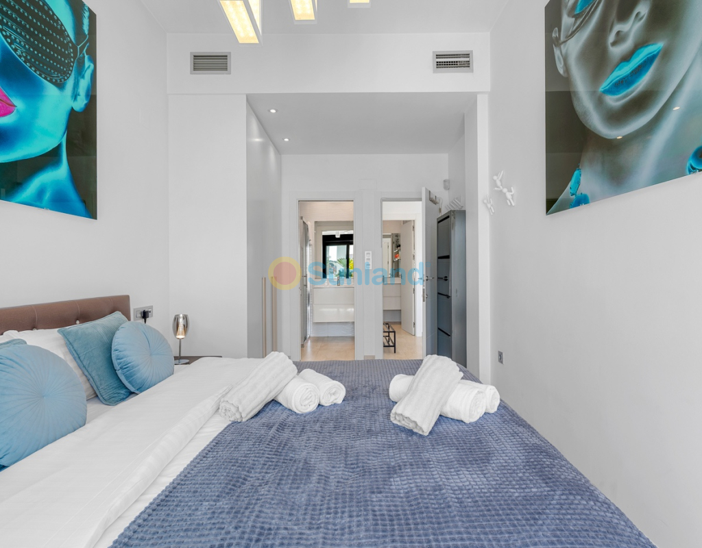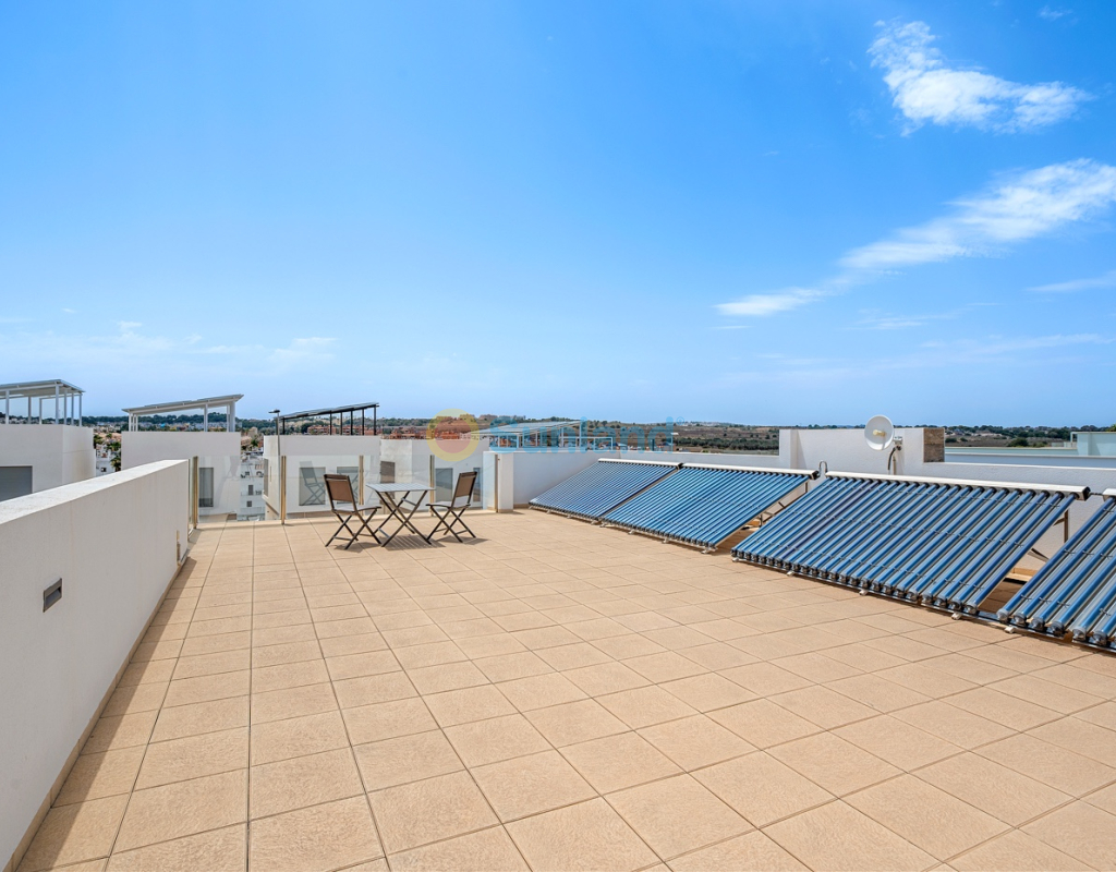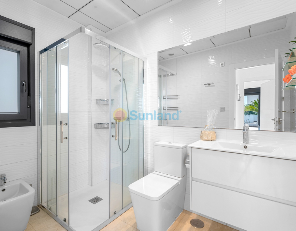 Denne moderne eneboligen fra 2018 ligger i Villamartín, Orihuela Costa. Den har et boareal på 113 m² og står på en romslig tomt på 464 m². Boligen har moderne design og en funksjonell planløsning, perfekt for å nyte den avslappede middelhavslivsstilen. Den sørvendte orienteringen gir naturlig lys hele dagen og skaper en varm og behagelig atmosfære. Villaen har tre romslige soverom med innebygde garderober og to komplette bad, hvorav ett er en suite til hovedsoverommet. Det åpne kjøkkenet er sømløst integrert med spise- og stueområdet, som har direkte utgang til terrassen og det private bassenget. I tillegg er det et separat vaskerom. Uteområdet har privat basseng, lettstelt hage, overbygd terrasse for måltider ute, og en pergola med kunstgress. Det finnes også en stor takterrasse for avslapning og privat parkering på tomten med overbygd carport. Ekstrautstyr inkluderer sentral aircondition, solcellepaneler, kvalitetsmaterialer og gjennomtenkt planløsning. Boligen ligger i et rolig boligområde med kort vei til golfbaner, Zenia Boulevard og flotte strender. Et perfekt valg både som helårsbolig og investering i et av Costa Blancas mest ettertraktede områder.