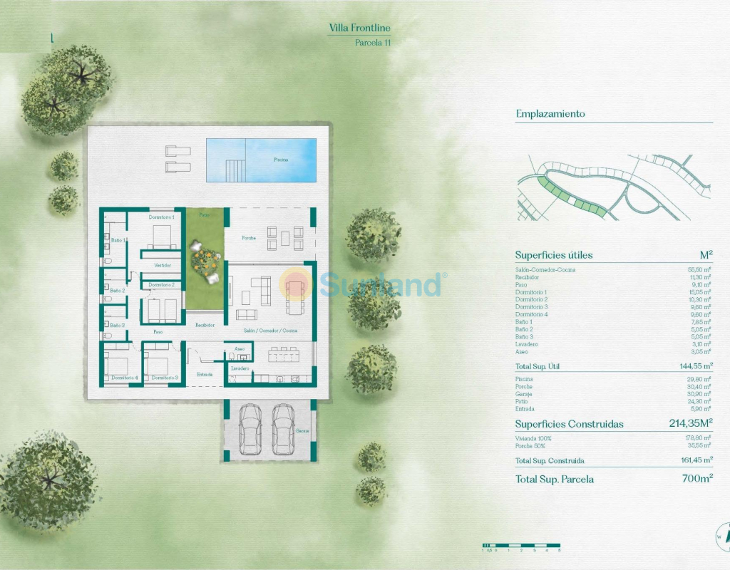 Eksklusive villaer i første linje til golfbanen i Hacienda del Álamo, Costa Cálida Moderne villaer i et av Spanias beste golfresorter Oppdag en unik mulighet til å kjøpe en nybygd luksusvilla i første linje til Hacienda del Álamo Golf Resort, som ligger mellom de historiske byene Cartagena og Murcia, i hjertet av Costa Cálida. Disse moderne villaene er designet for å tilby komfort, privatliv og eleganse, og ligger i en eksepsjonell omgivelse dedikert til golf og fritid. Hver eiendom har en romslig planløsning med 4 soverom, 3 bad og et gjestetoalett, i en etasje. Med sjenerøse tomter på rundt 700 kvadratmeter og et bebygget areal på 214 kvadratmeter, tilbyr disse boligene god plass til både innendørs og utendørs liv. Høy kvalitet på utstyr og finish Disse villaene i første linje til golfbanen er utstyrt med alle moderne bekvemmeligheter for å sikre maksimal komfort og stil, inkludert: Privat svømmebasseng og anlagt hage med dryppvanningssystem Fullt utstyrt kjøkken med skap og hvitevarer inkludert Klimaanlegg i hele eiendommen Bad med møbler, speil og dusjvegger Aluminiumsvinduer med termisk brudd og doble vinduer Tilgang til et stort felles svømmebasseng med naturlig gressplen og lekeområde Luksusliv på Hacienda del Álamo Golf Resort Hacienda del Álamo er kjent for å være et av Spanias beste golfresorter, da det tilbyr beboerne en avslappet, sporty og komfortabel livsstil. 18-hulls golfbane og akademi Idrettsanlegg med tennis, paddle, treningsstudio og fitnessklasser Hovedklubbhus med panoramautsikt, en restaurant med middelhavsmat og solrike terrasser 4-stjerners hotell og spa for avslapning og velvære Områder for hele familien, med lekeplasser, svømmebassenger og sykkelstier. Tradisjonell spansk landsby med butikker, kafeer og nye restauranter som snart åpner. Strategisk beliggenhet med gode forbindelser Corvera flyplass (Murcia): 18 km (ca. 15 minutter) Cartagena: 36 km Murcia sentrum: 40 km Strendene ved Mar Menor: 28 km Kjøpesentre (Dos Mares, Espacio Mediterráneo): mindre enn 30 km Drømmehuset ved golfbanen venter på deg Enten du er på jakt etter en permanent bolig, et feriested eller en smart investering på Costa Cálida, er disse villaene ved golfbanen i Hacienda del Álamo det perfekte valget. Kontakt oss i dag for mer informasjon eller for å avtale en personlig visning.